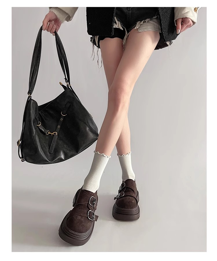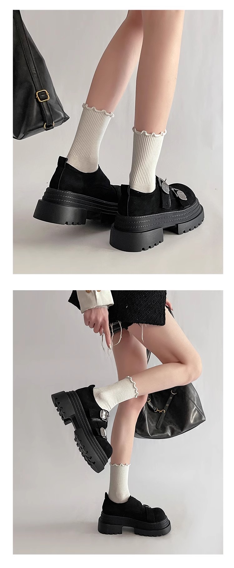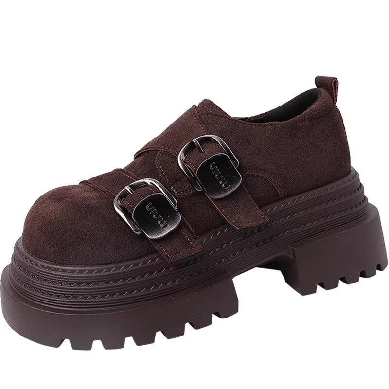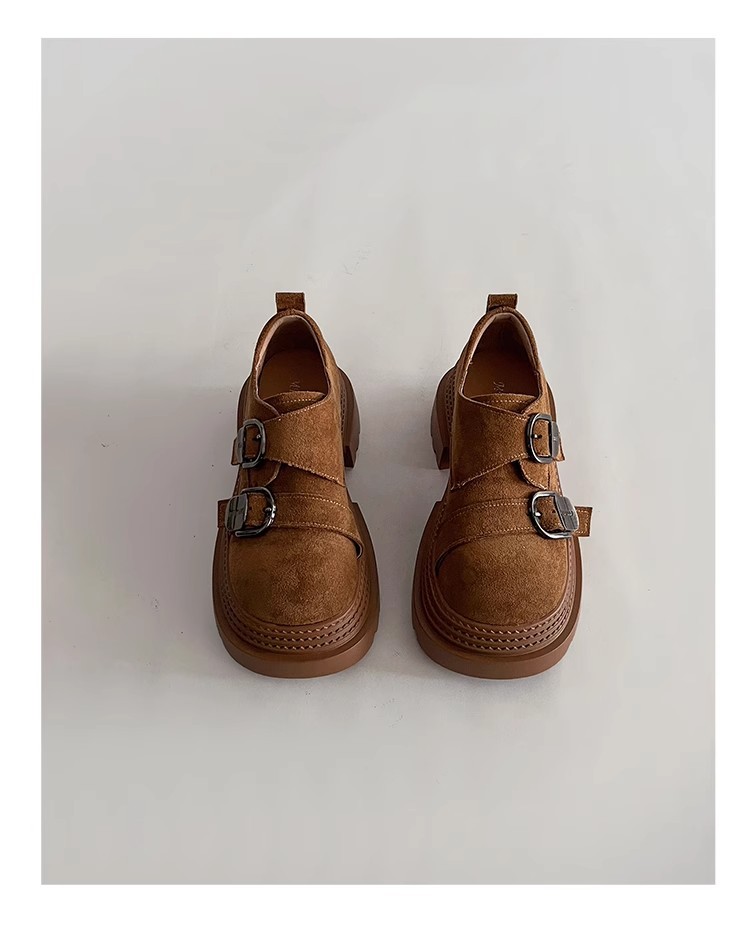 영국 스타일 플랫폼 밑창 Buccanean 스타일 작은 가죽 신발 싱글 레이어 신발 여성 2025 봄 새로운 올 매치 라운드 토 레트로 로퍼