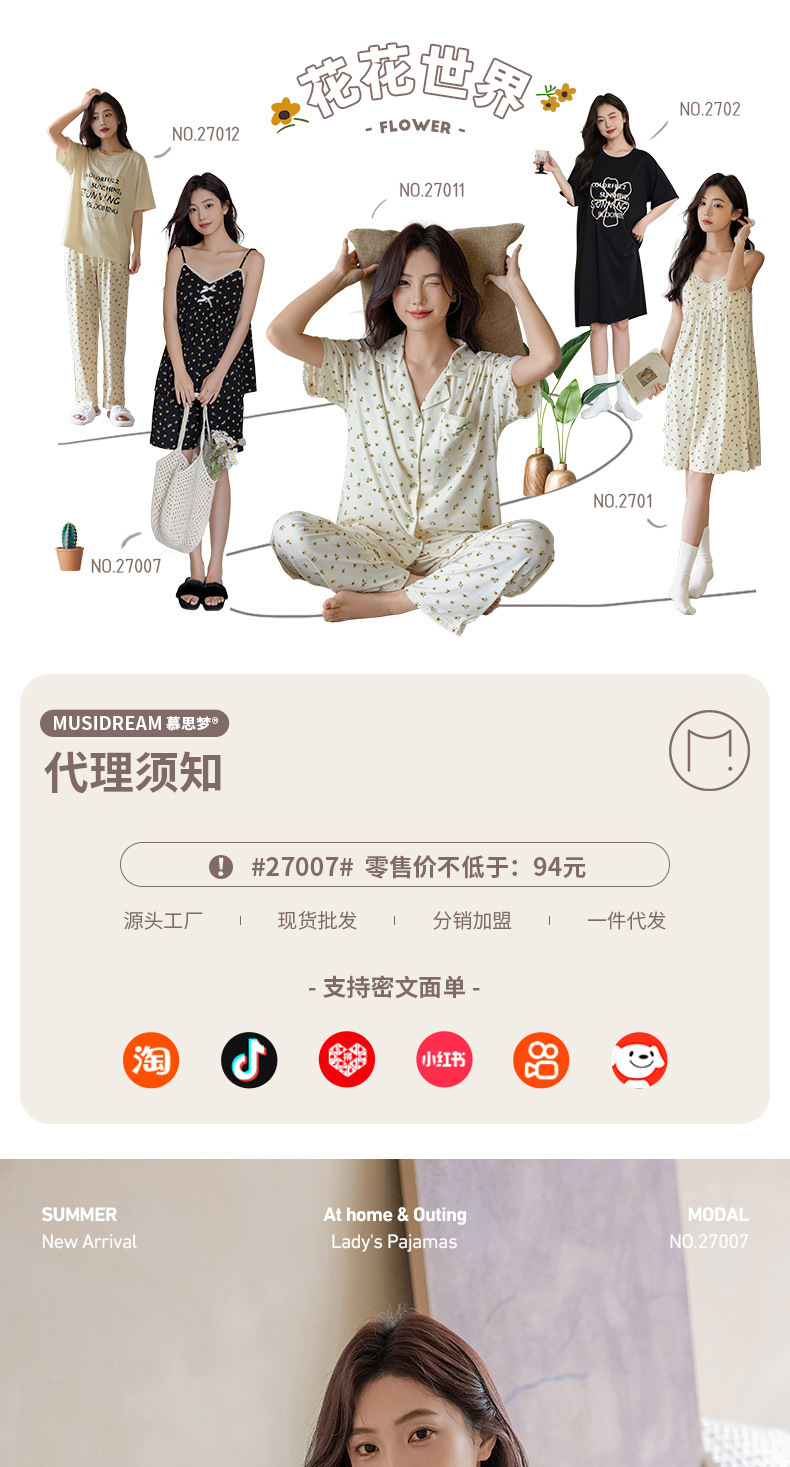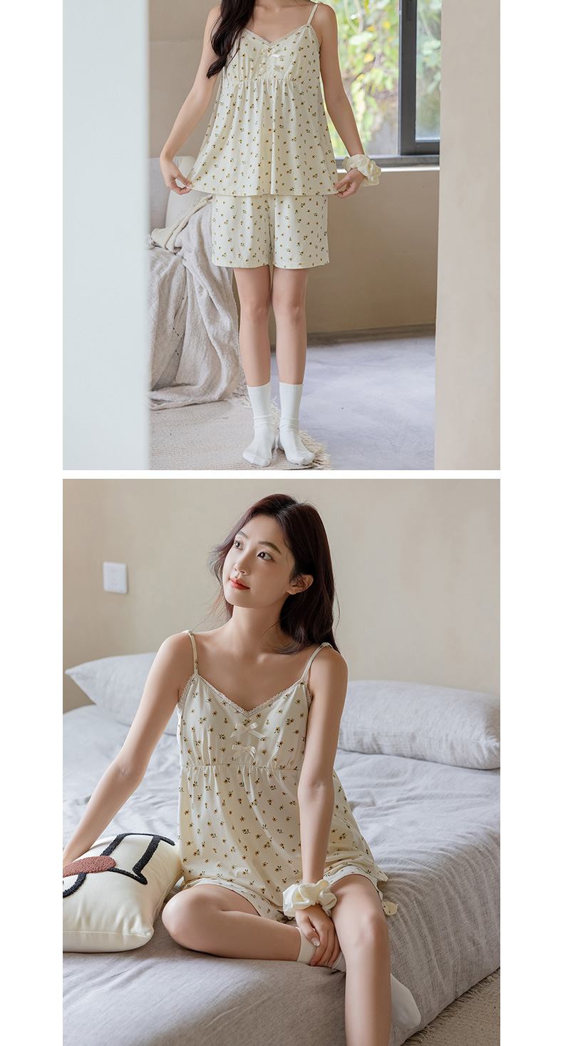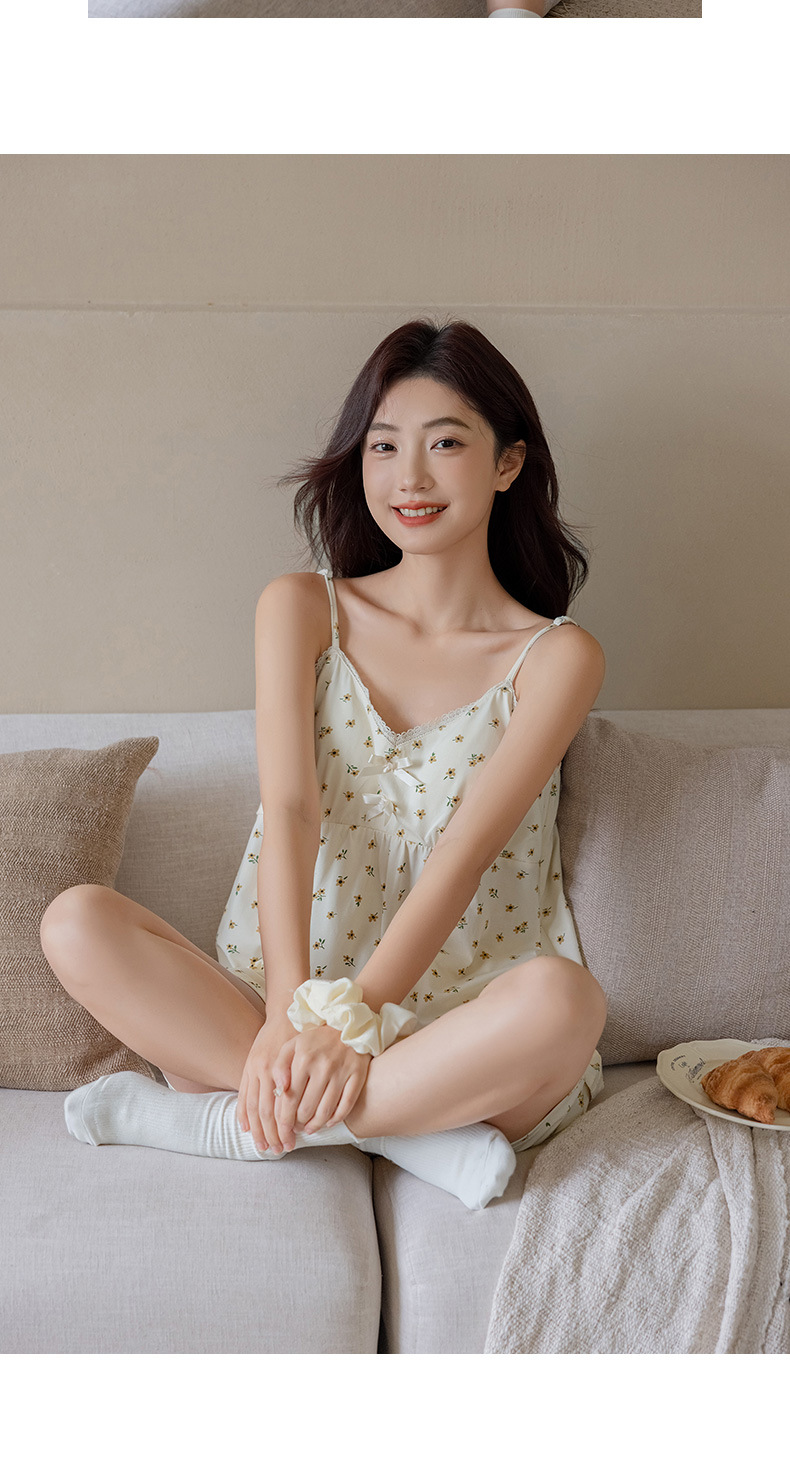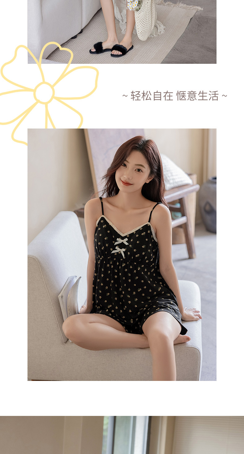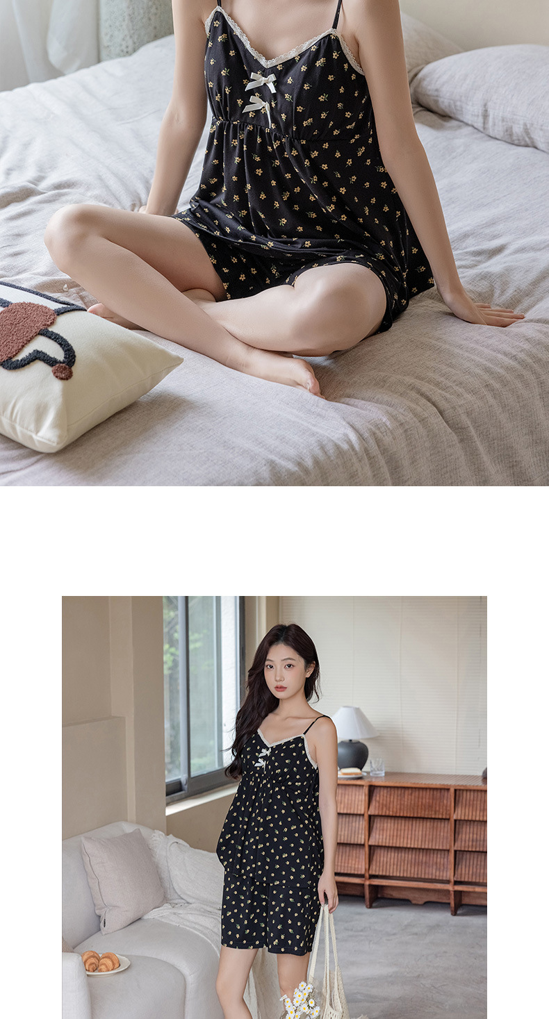 란징 모달 코튼 벨트 가슴 패드 슬링 파자마 여성의 여름 섹시한 달콤한 작은 꽃 홈 옷 투피스 세트
