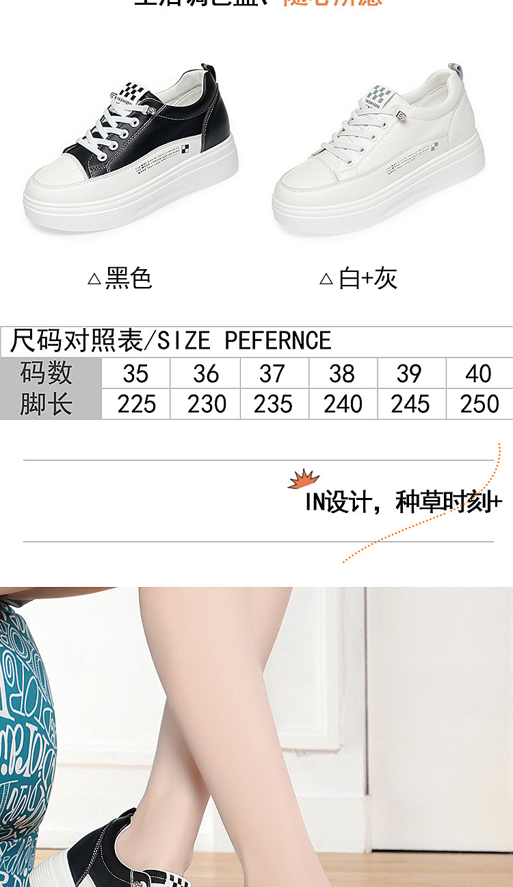 정품 가죽 여성 신발 화이트 신발 여성의 2024 새로운 가을 높이 증가 모든 경기 여성 운동화 내부 높이 증가 여성 신발 여성