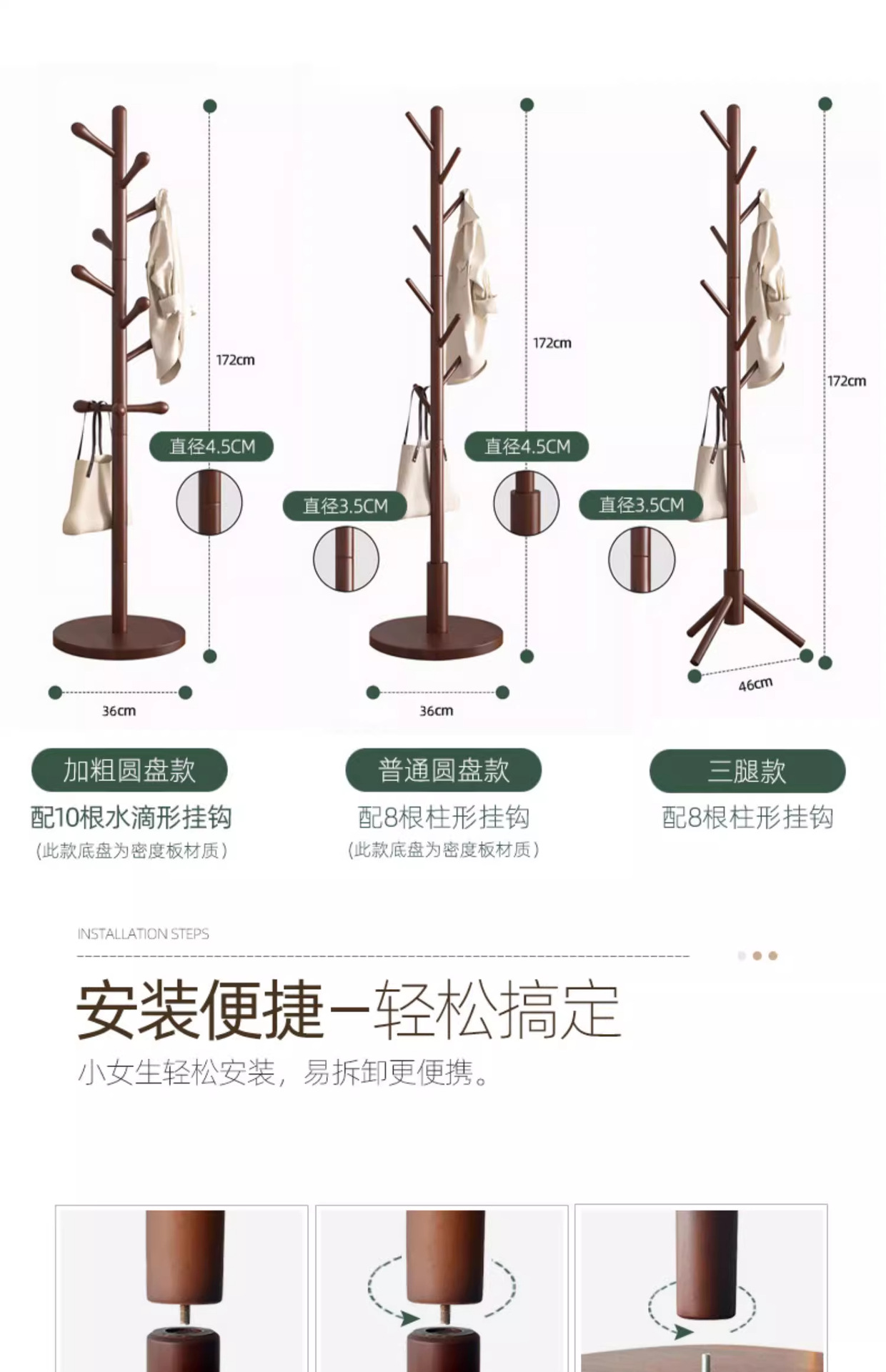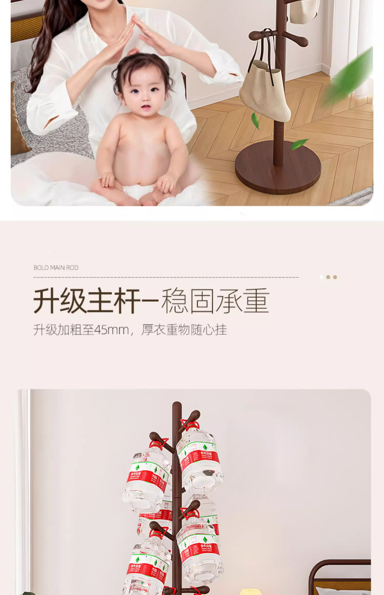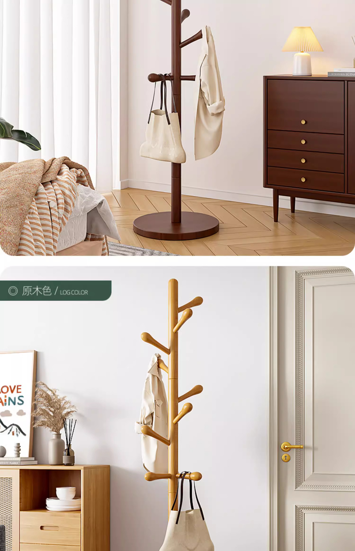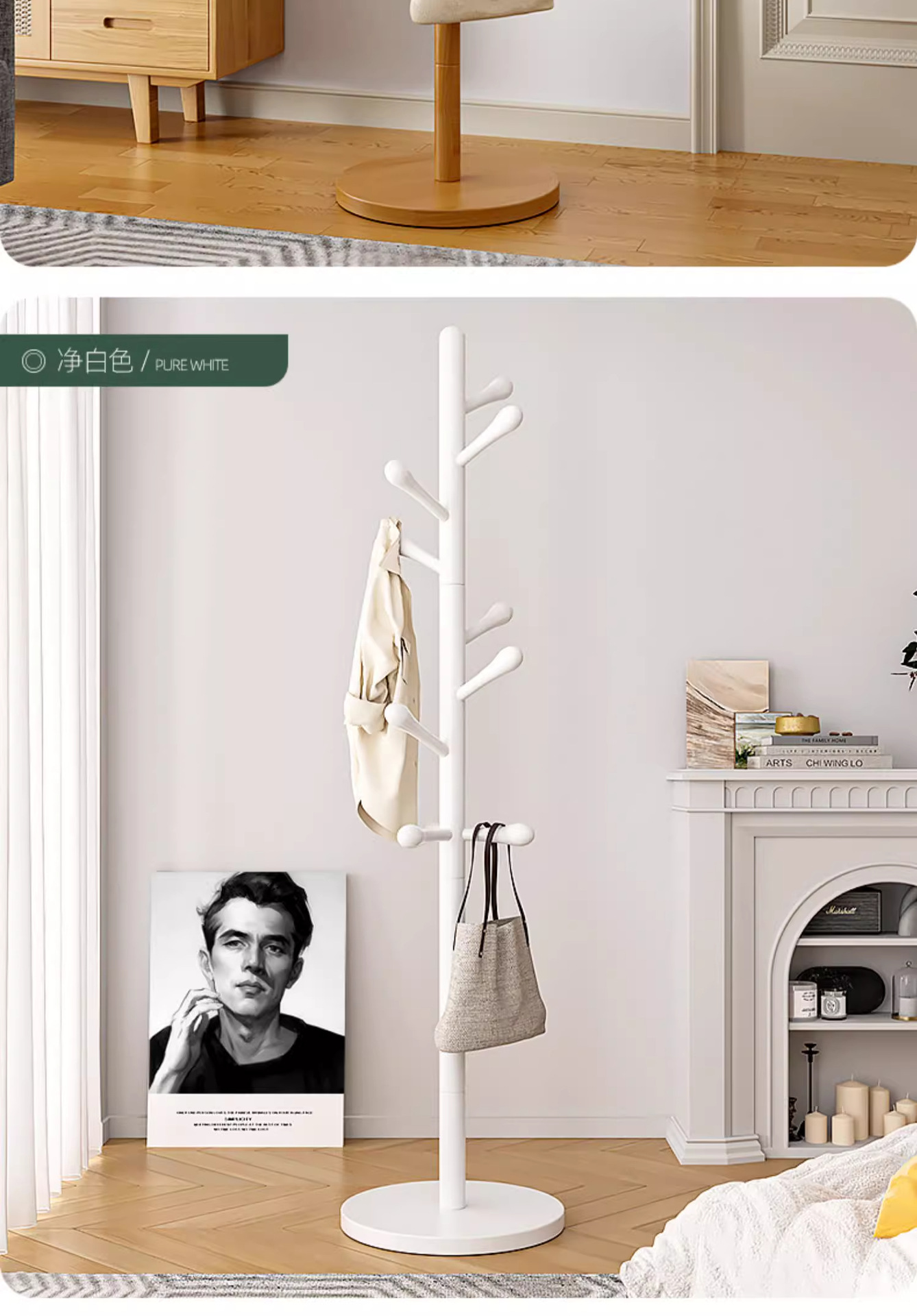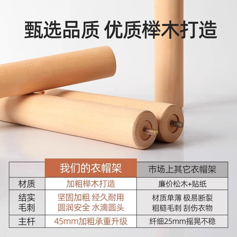 원목 옷걸이, 침실용 스탠딩 옷걸이, 이동식 옷걸이, 가방 걸이, 옷걸이 선반, 튼튼함