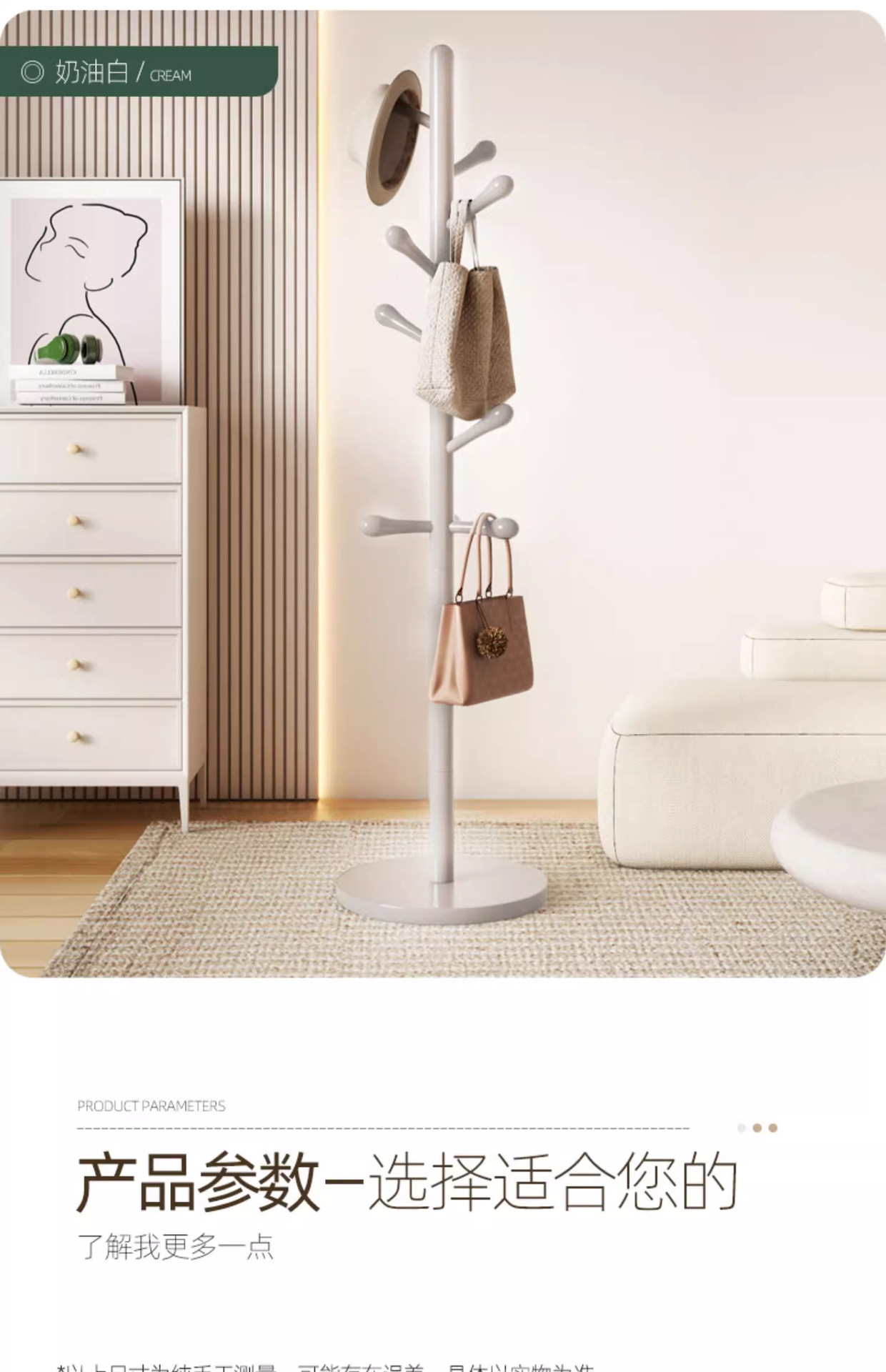 [수입너도밤나무] 원목색 다리 3개 (상부 실크 라운드 후크 8개)