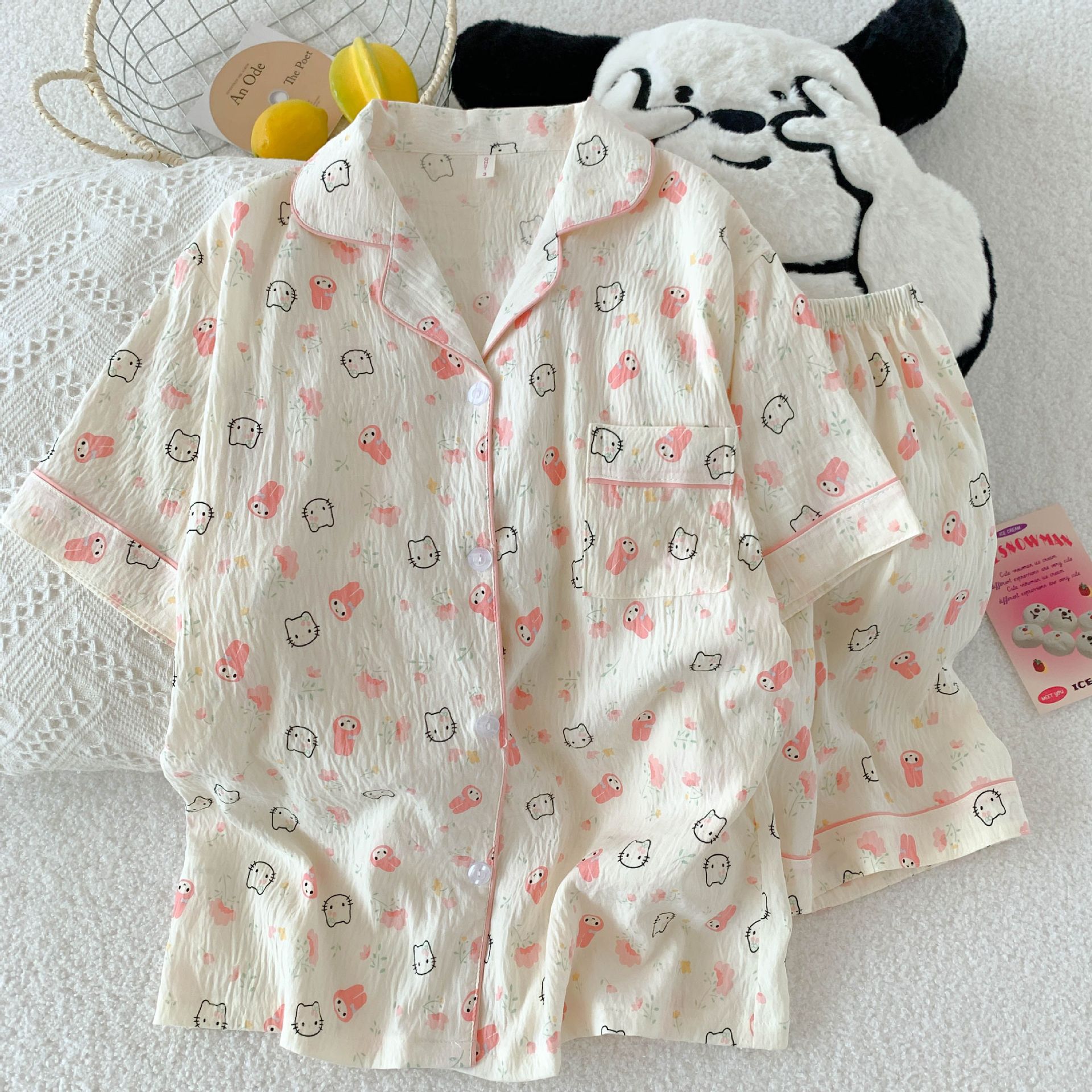 5501 멜로디 & 헬로키티 - 구름 면 반팔 반바지 세트