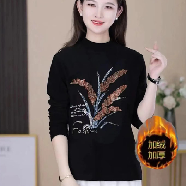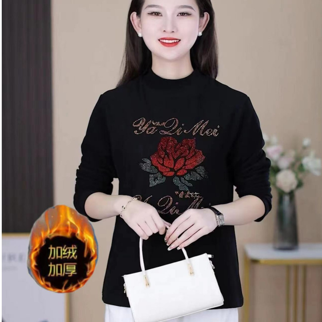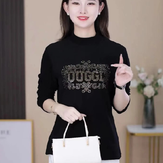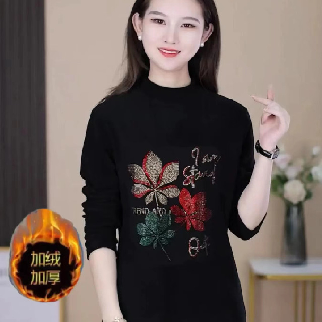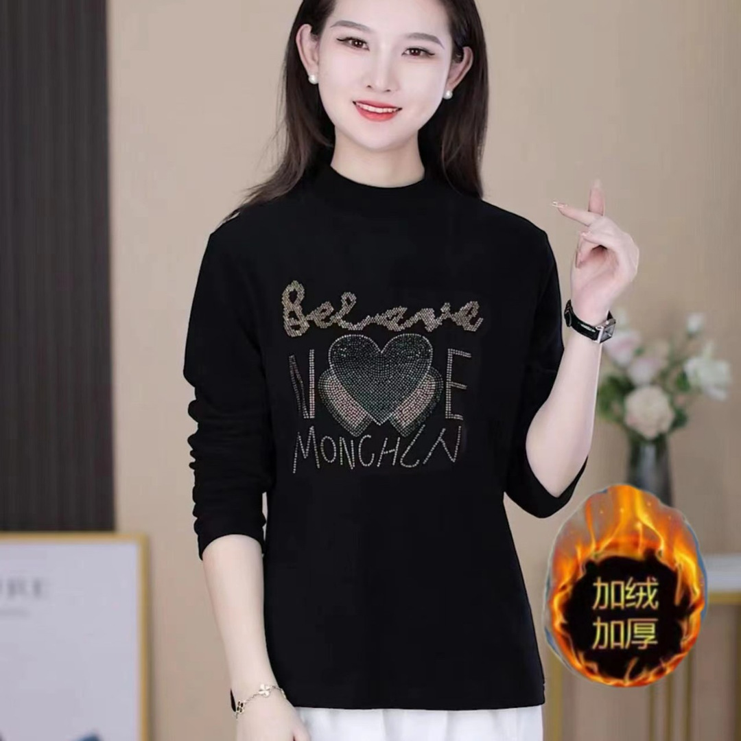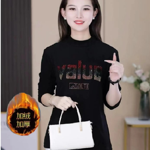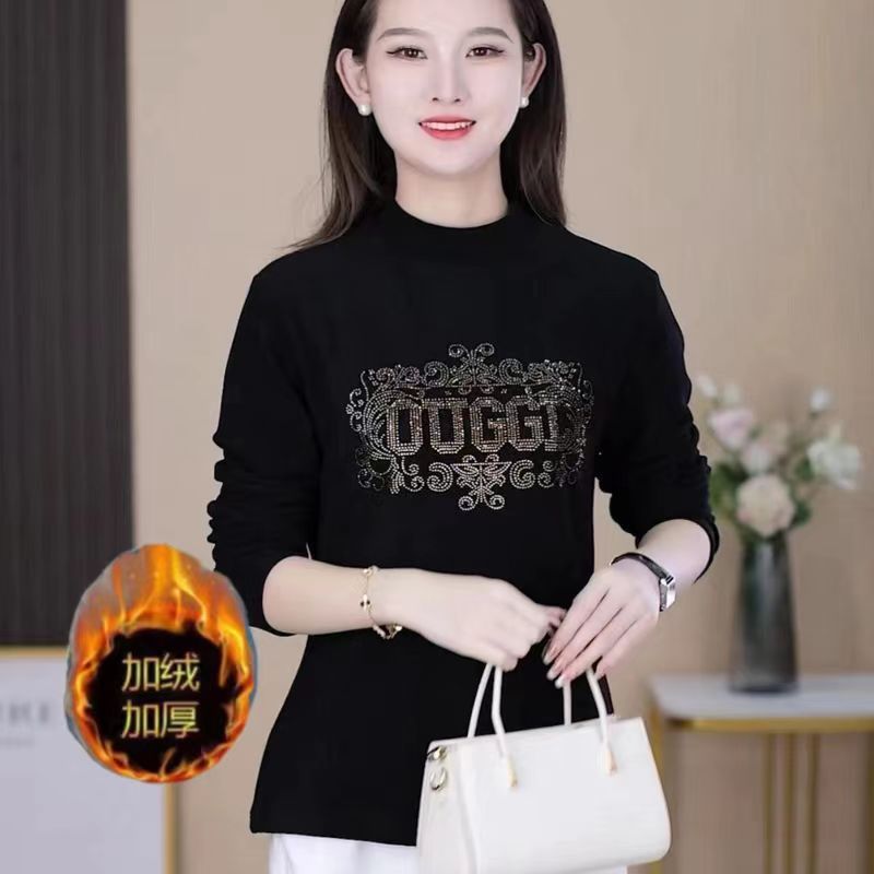 200kg 플러스 사이즈 따뜻한 세미 하이 칼라 바닥 셔츠 여성의 가을 새로운 슬림 고기 커버 드릴링 티셔츠 긴 소매 재킷 여성