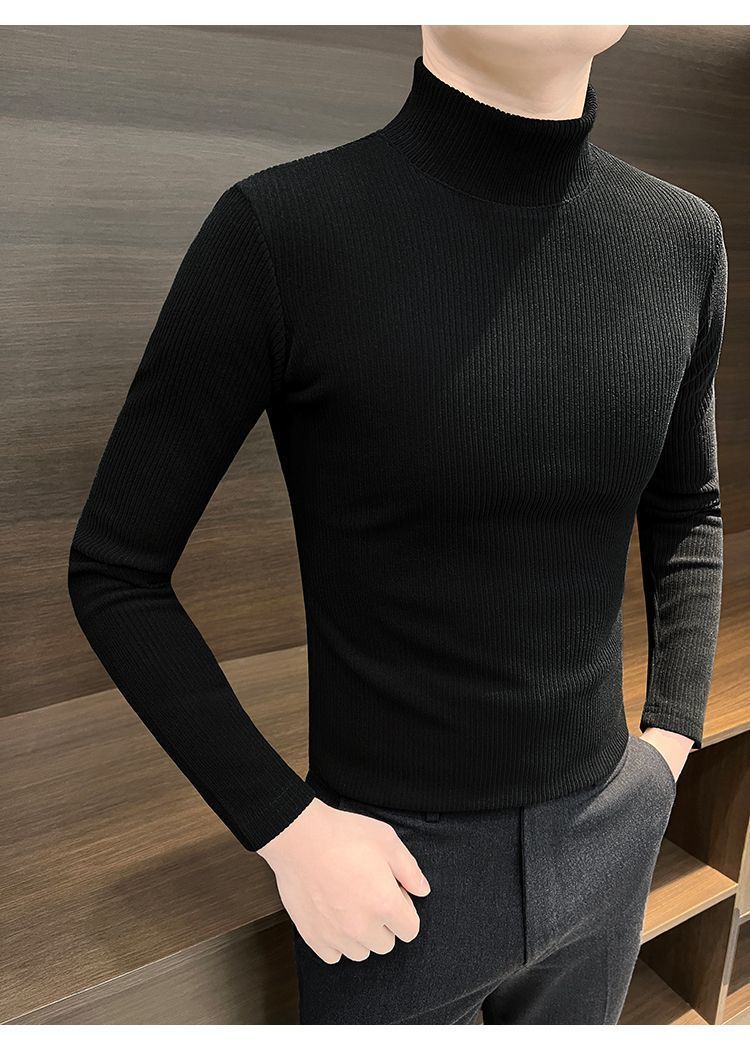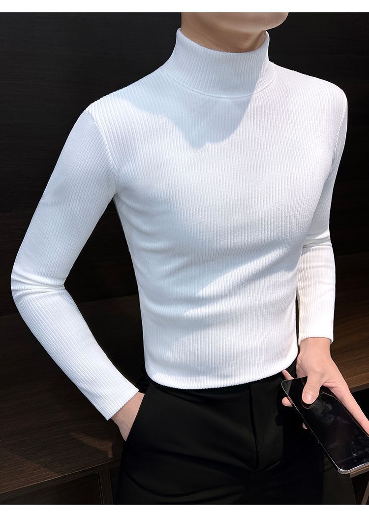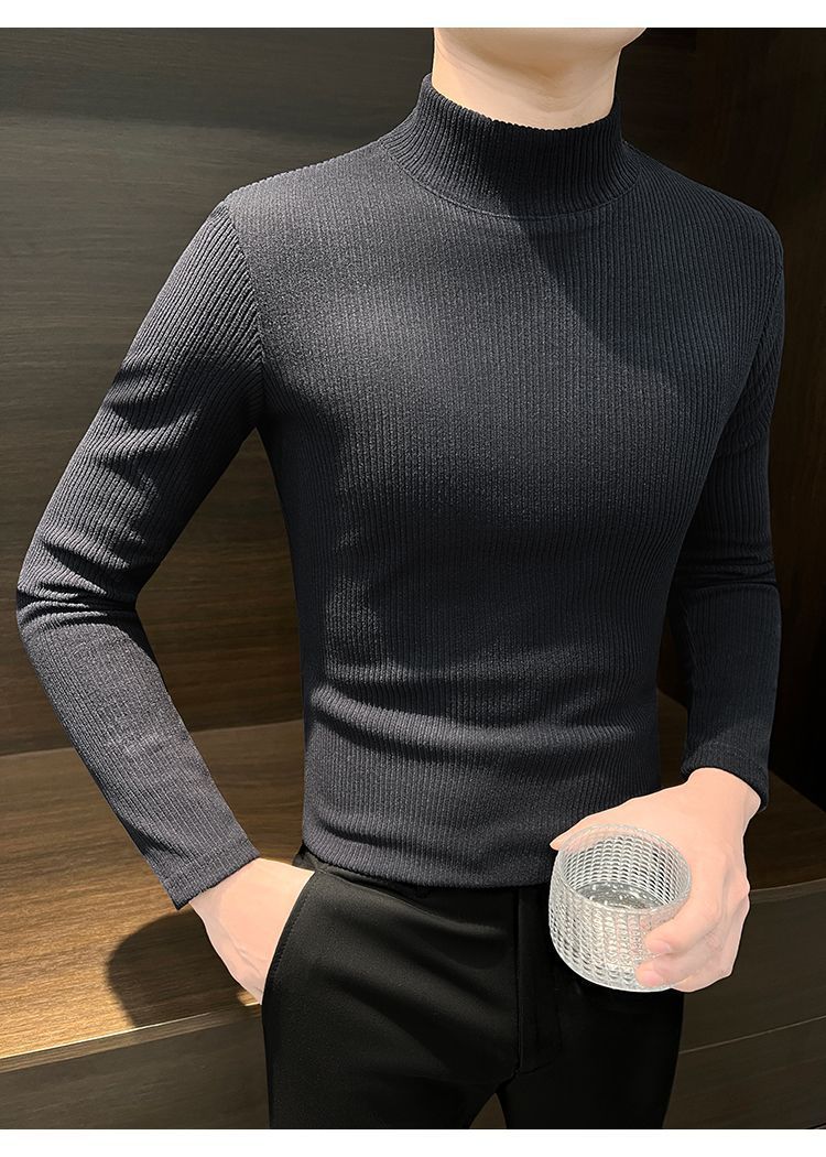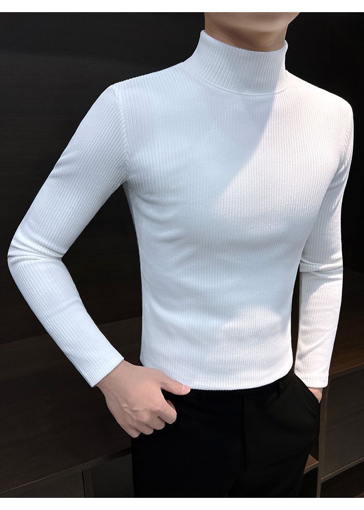 하프 하이 칼라베이스 셔츠 남자 가을과 겨울 2024 새로운 미드 칼라 벨벳 따뜻한 남자 내부 긴팔 티셔츠
