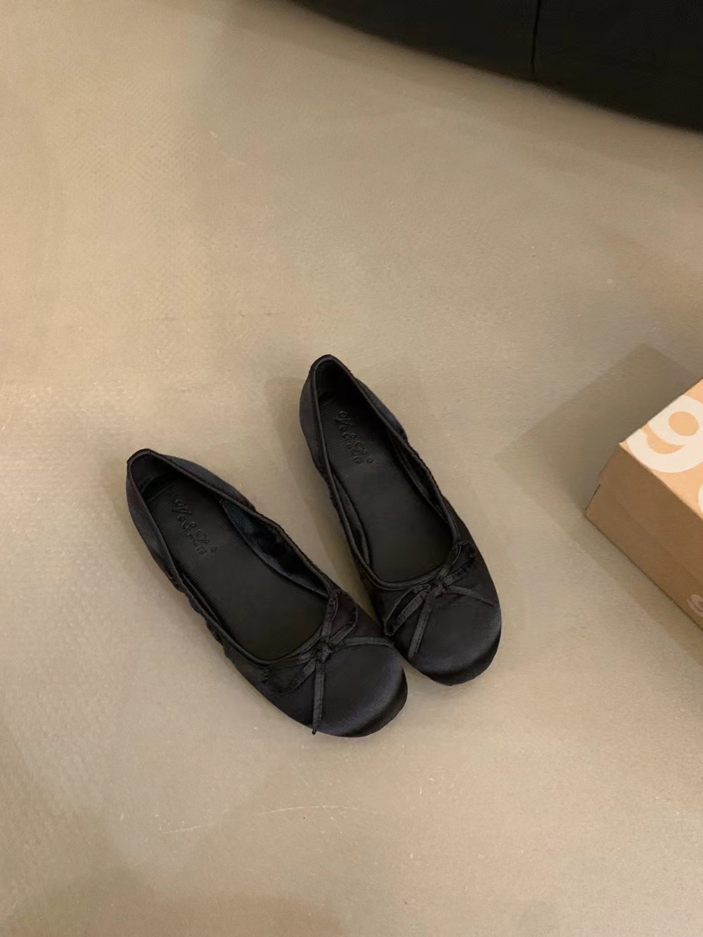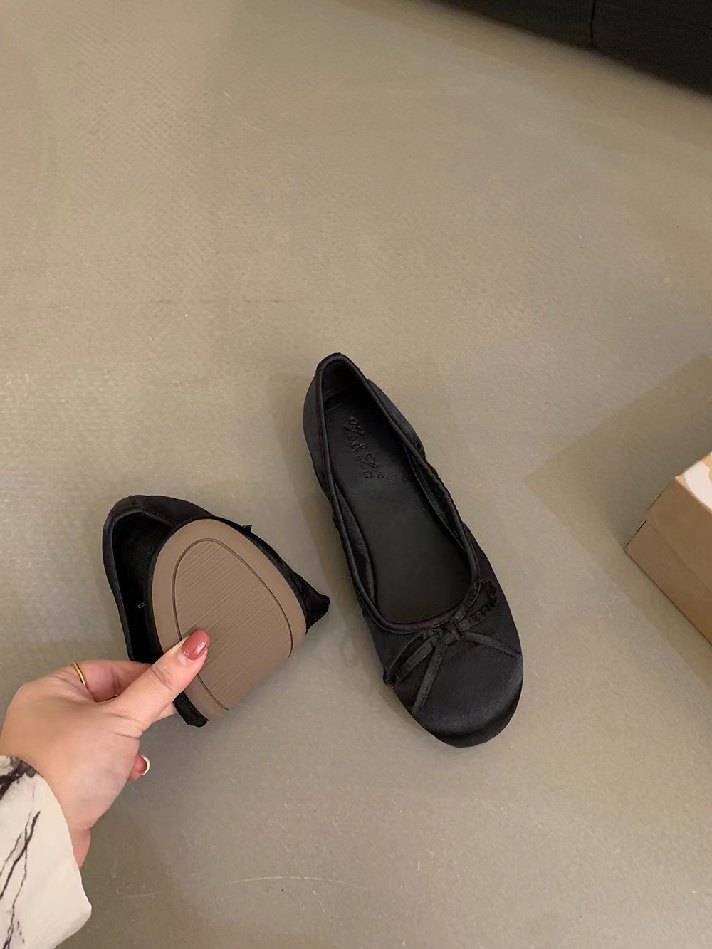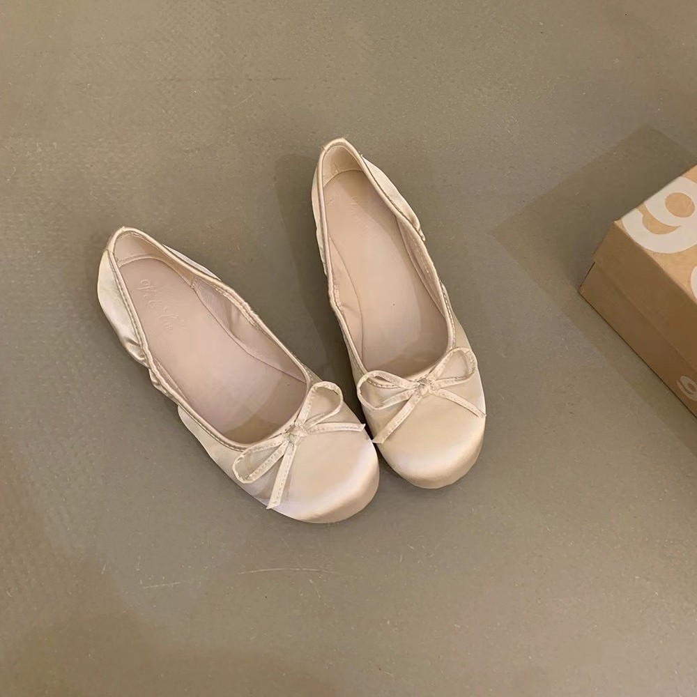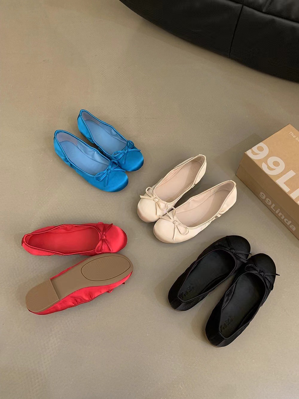 한국 인 새틴 프렌치 슈즈 여성용 2025 뉴 보우 발레 플랫 슈즈