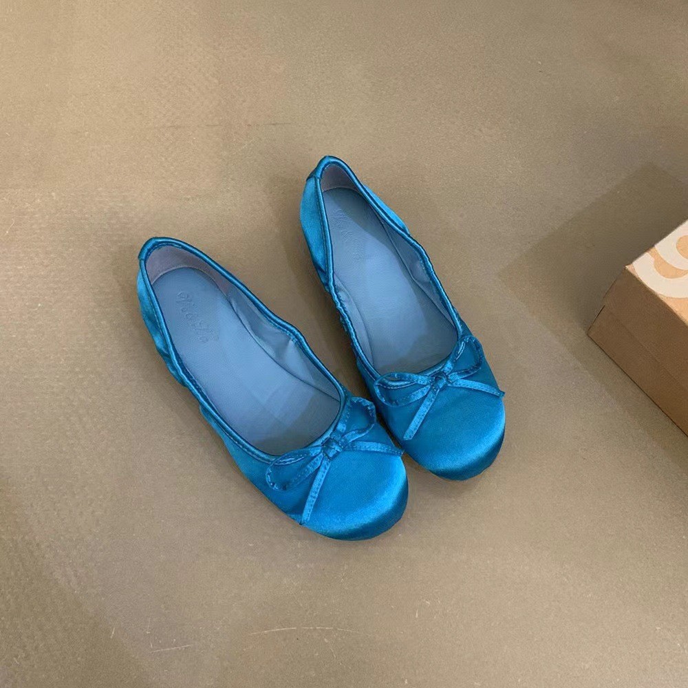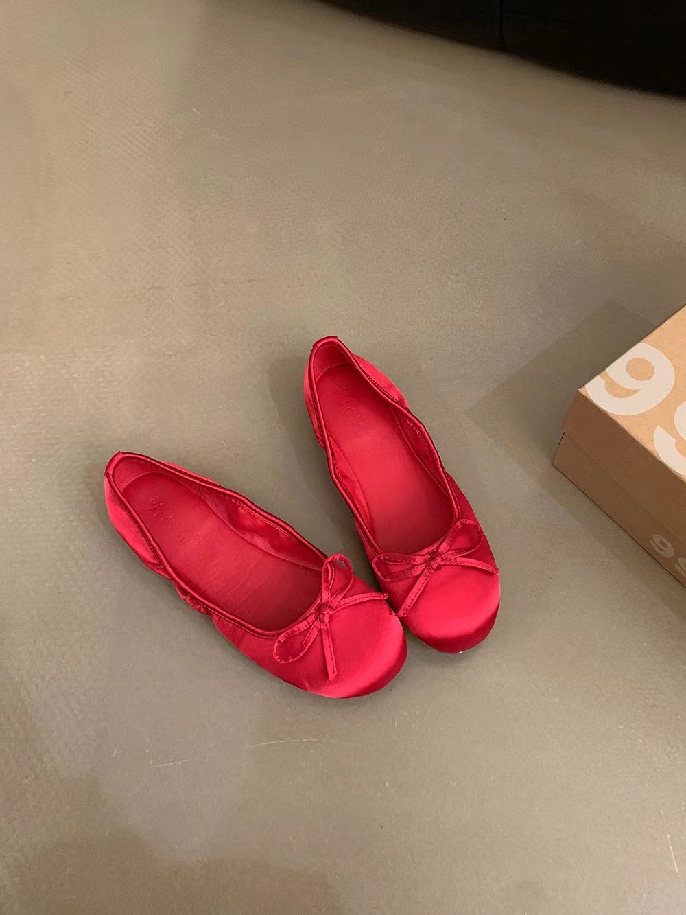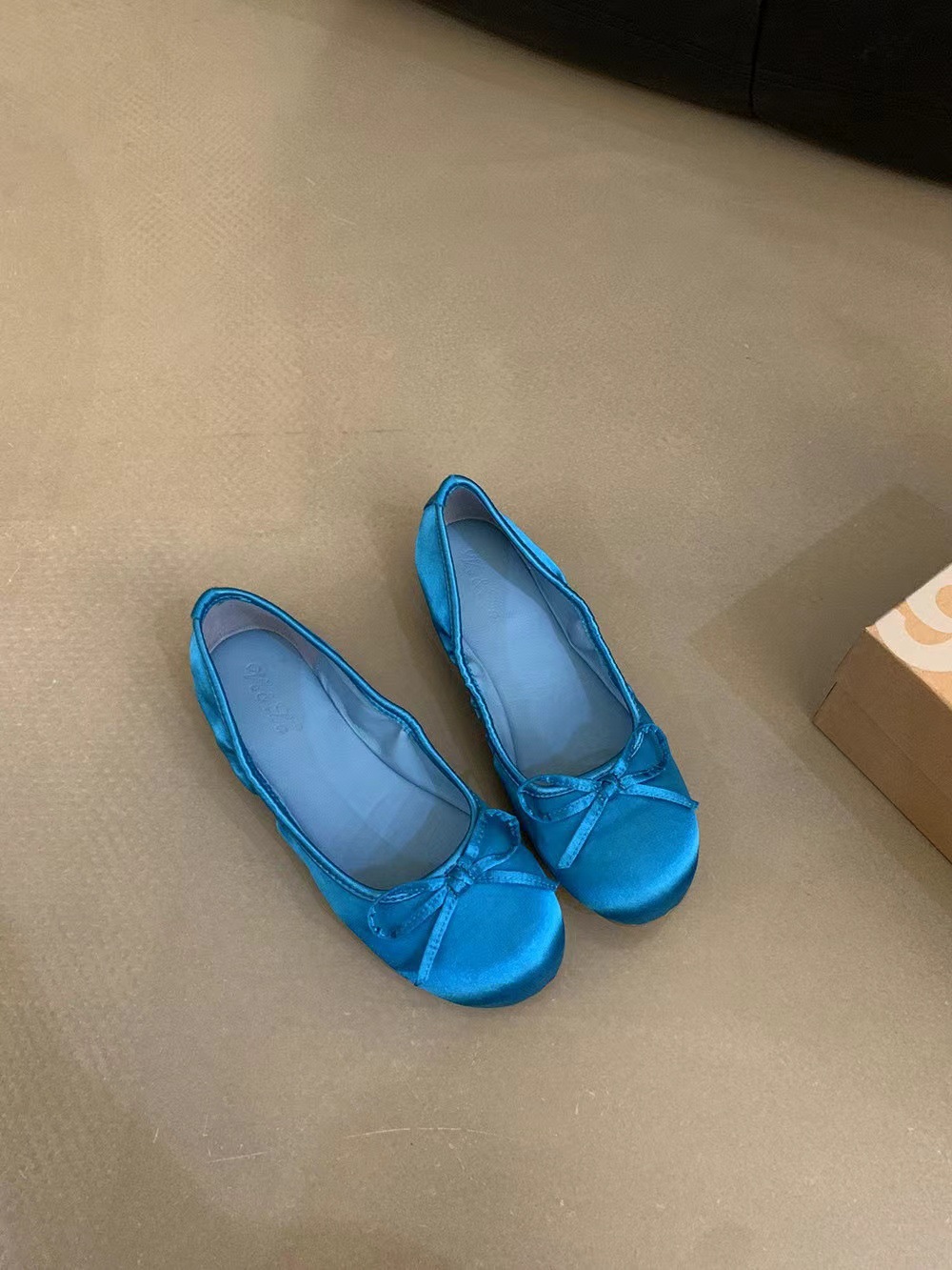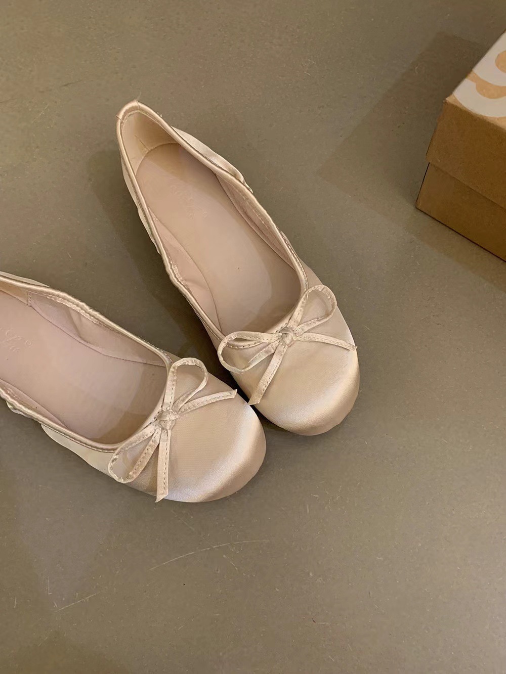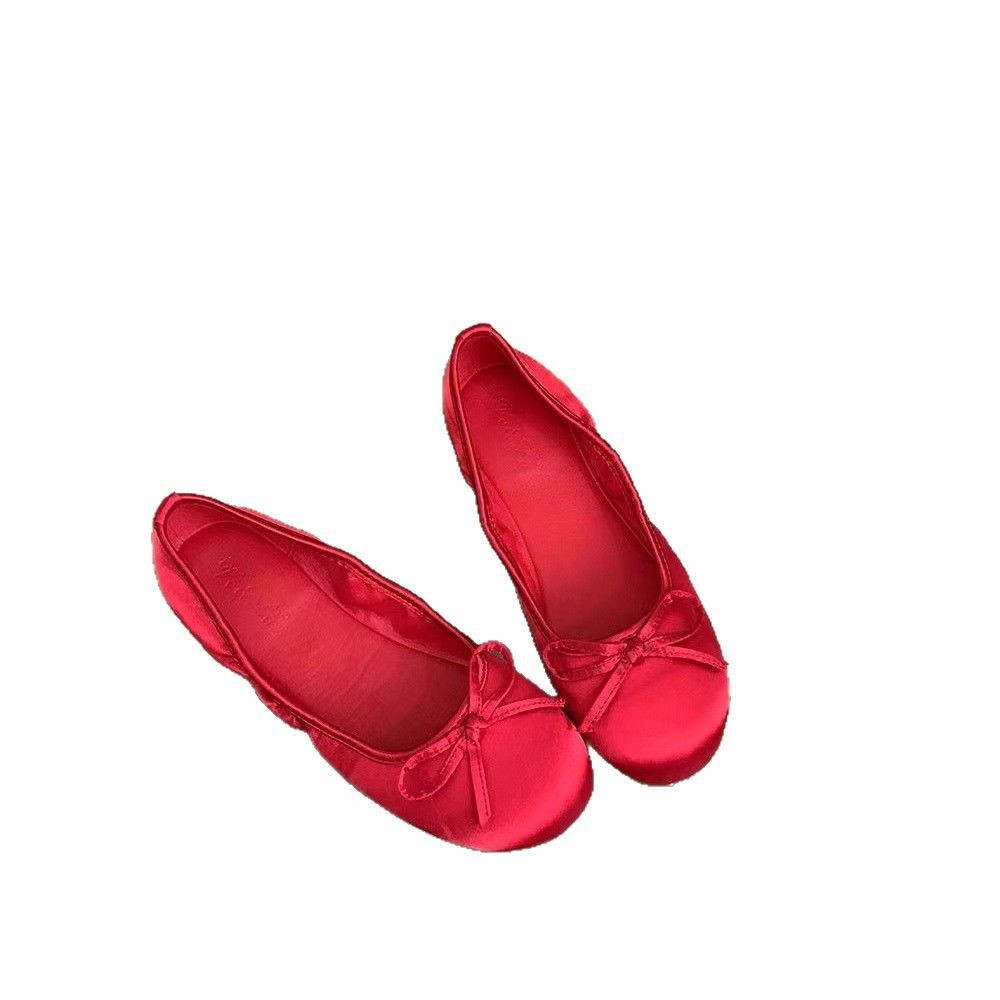 한국 인 새틴 프렌치 슈즈 여성용 2025 뉴 보우 발레 플랫 슈즈