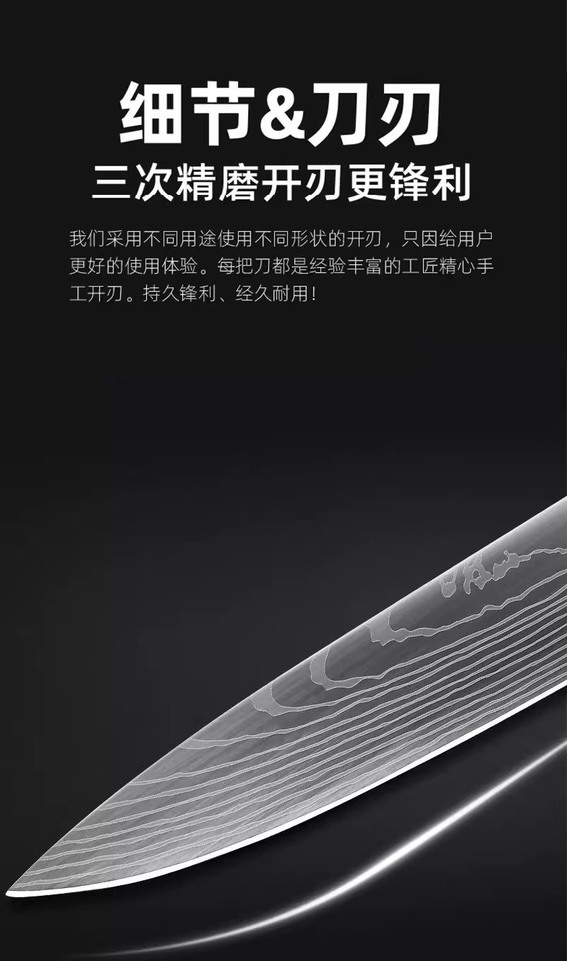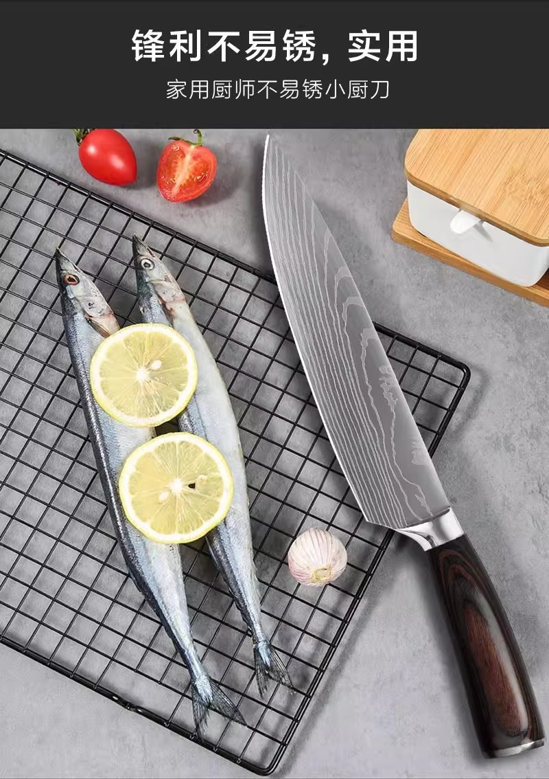 국경 간 재고 나뭇결 손잡이 다마스커스 레이저 곡물 요리사 칼 과일 칼 부엌 칼 스테인리스 칼 세트