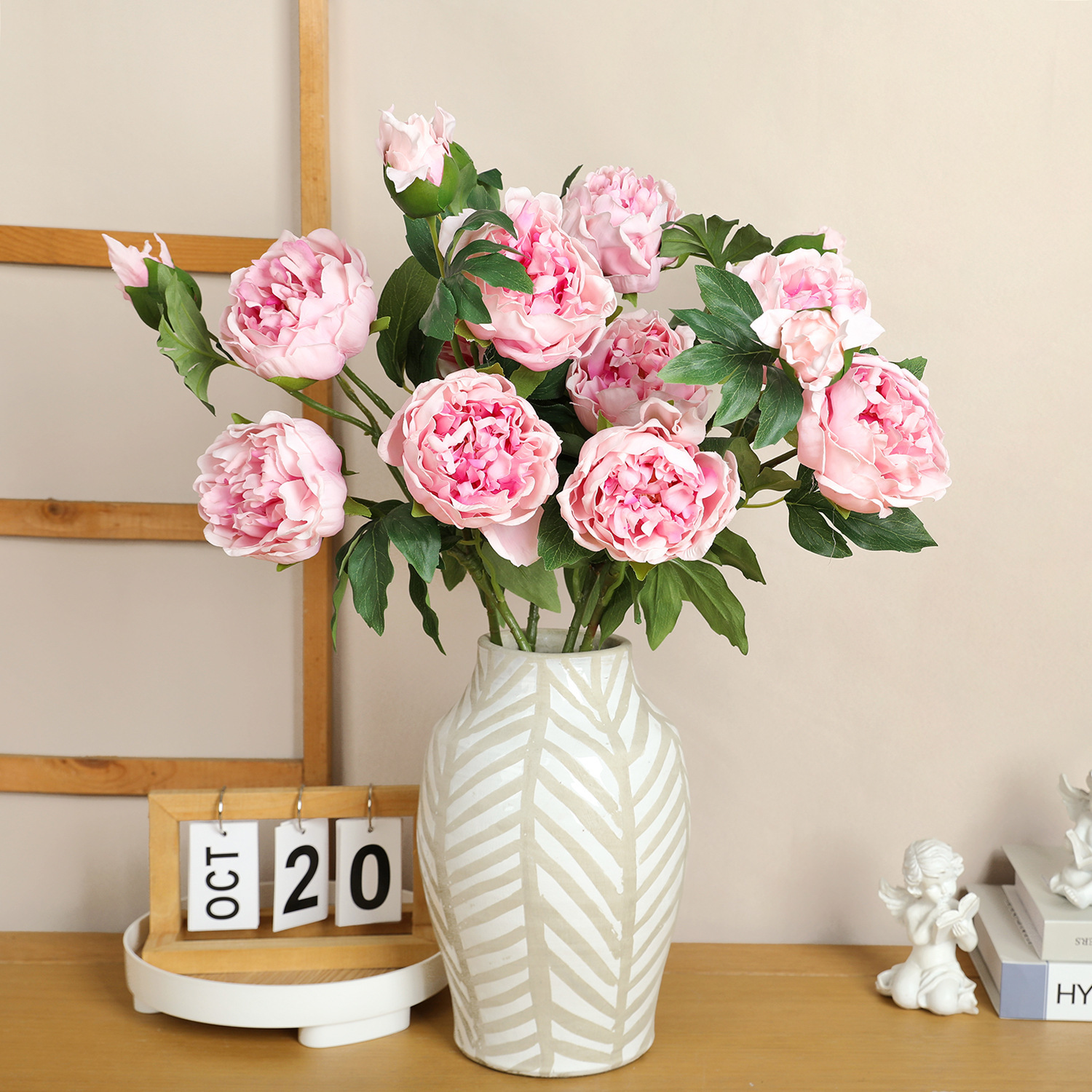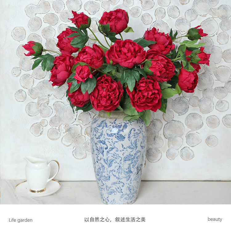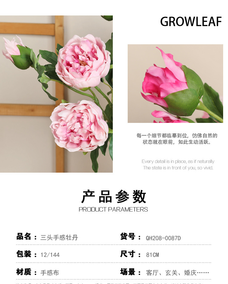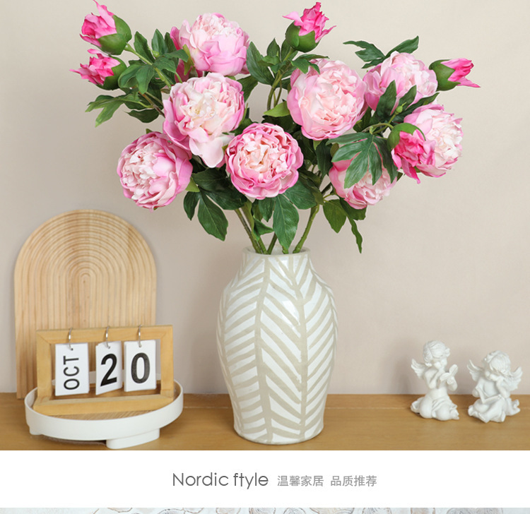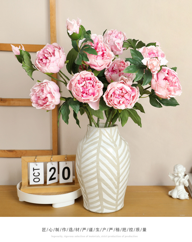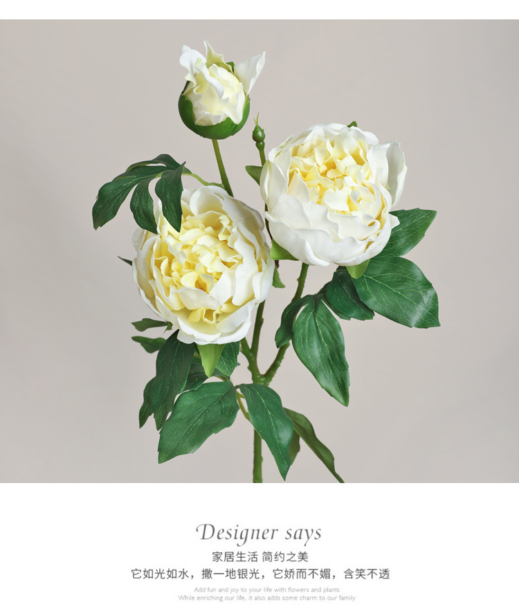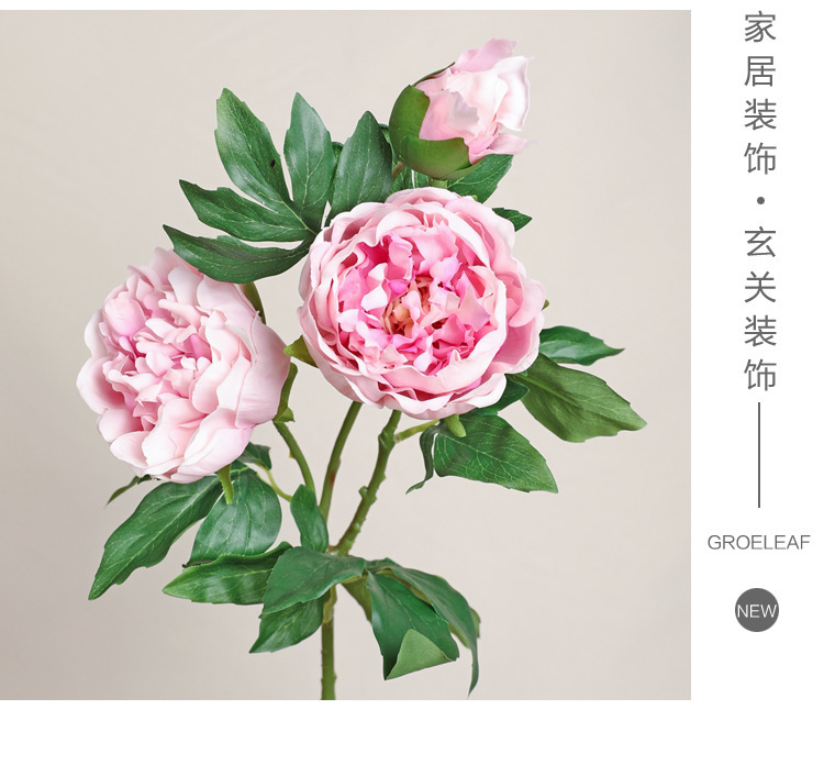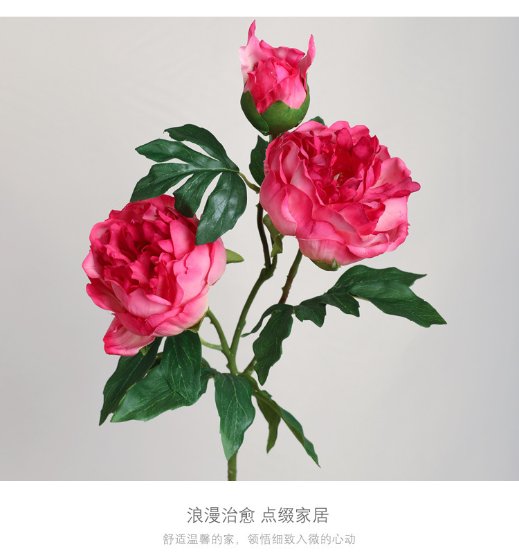 아모크 촉감 보습 81CM 인조 3송이 모란 가정 장식 웨딩 소품 촬영용 모란 화훼