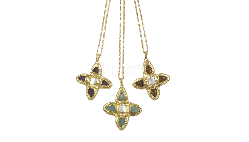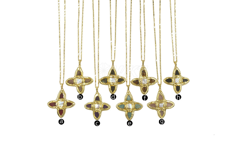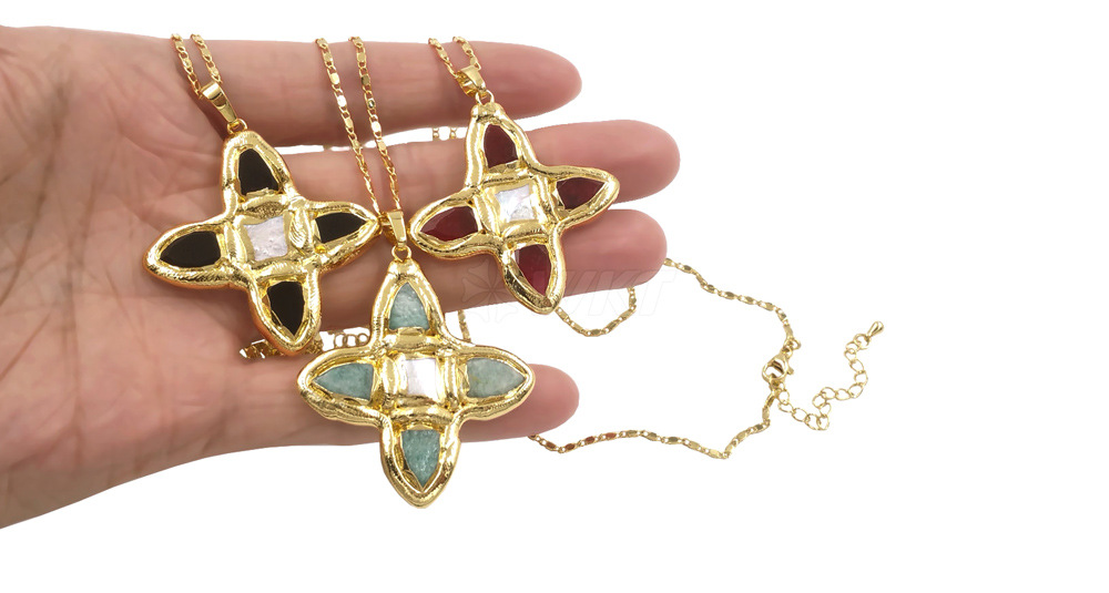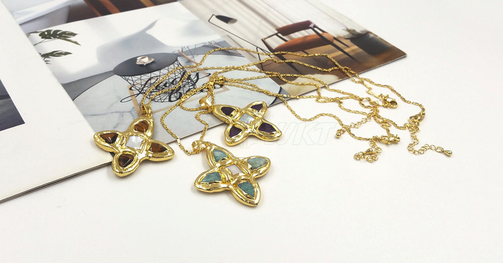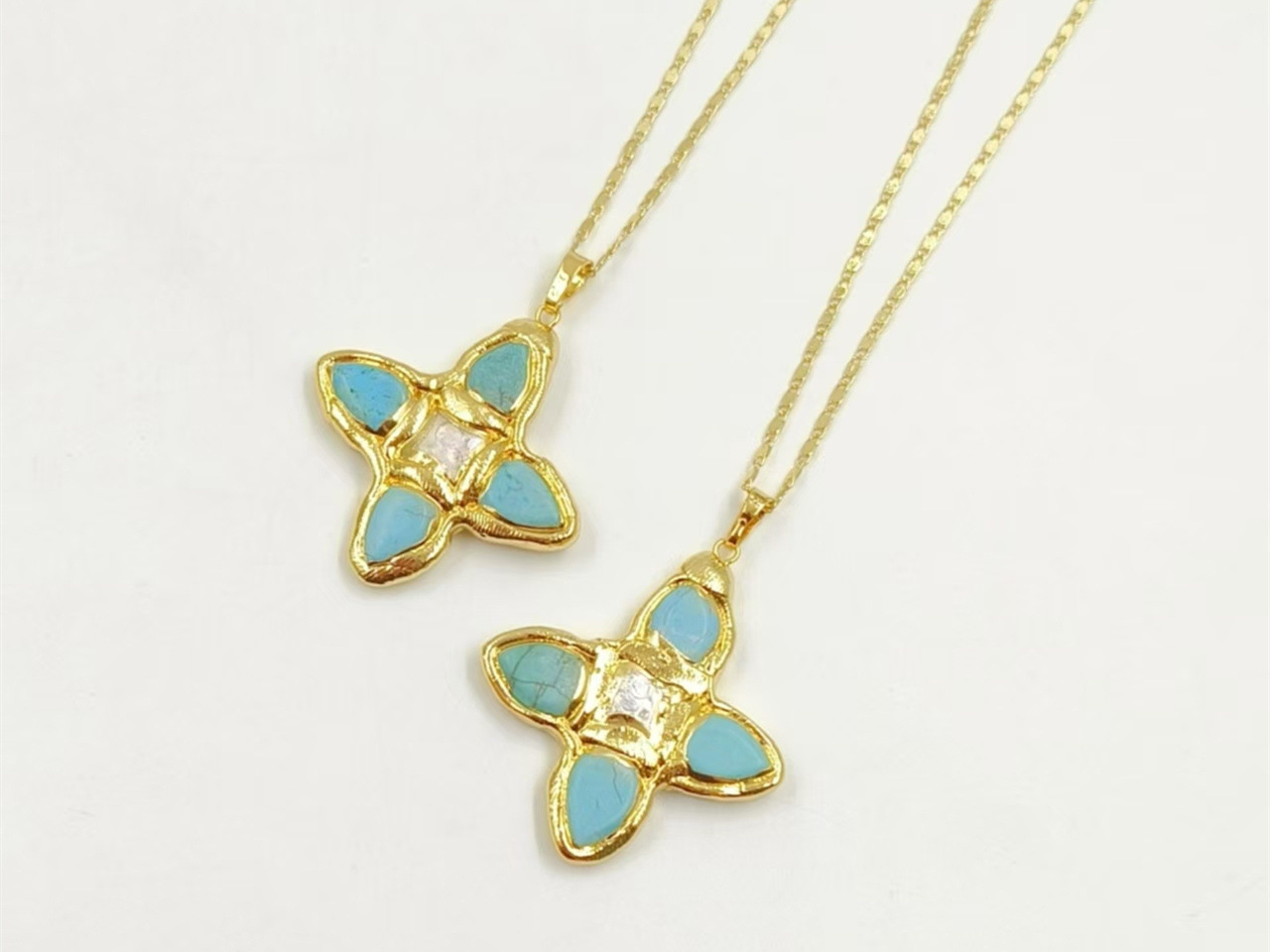 WT-JN314 天然松石淡水珍珠镶嵌18k镀金吊坠式18+2英寸毛衣项链