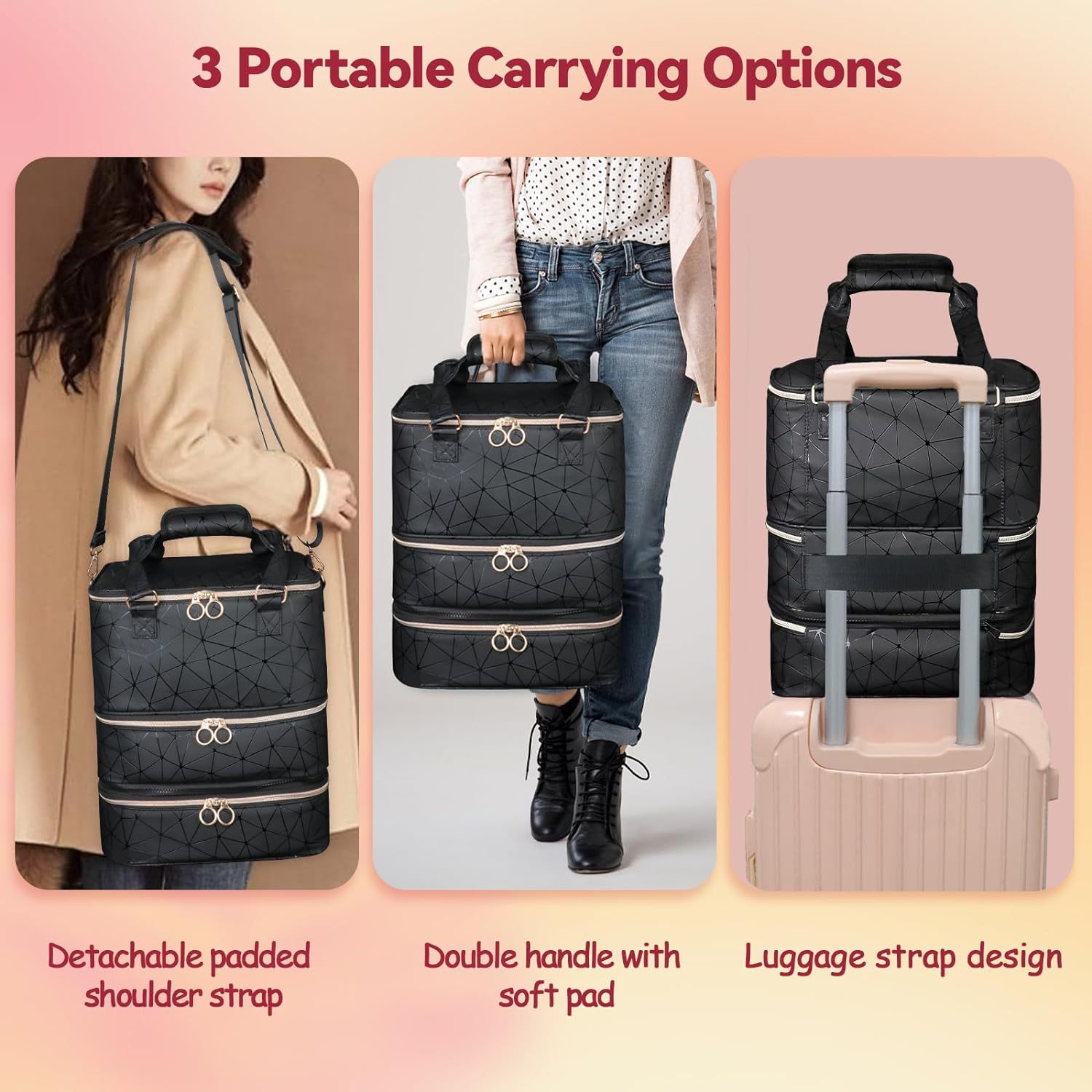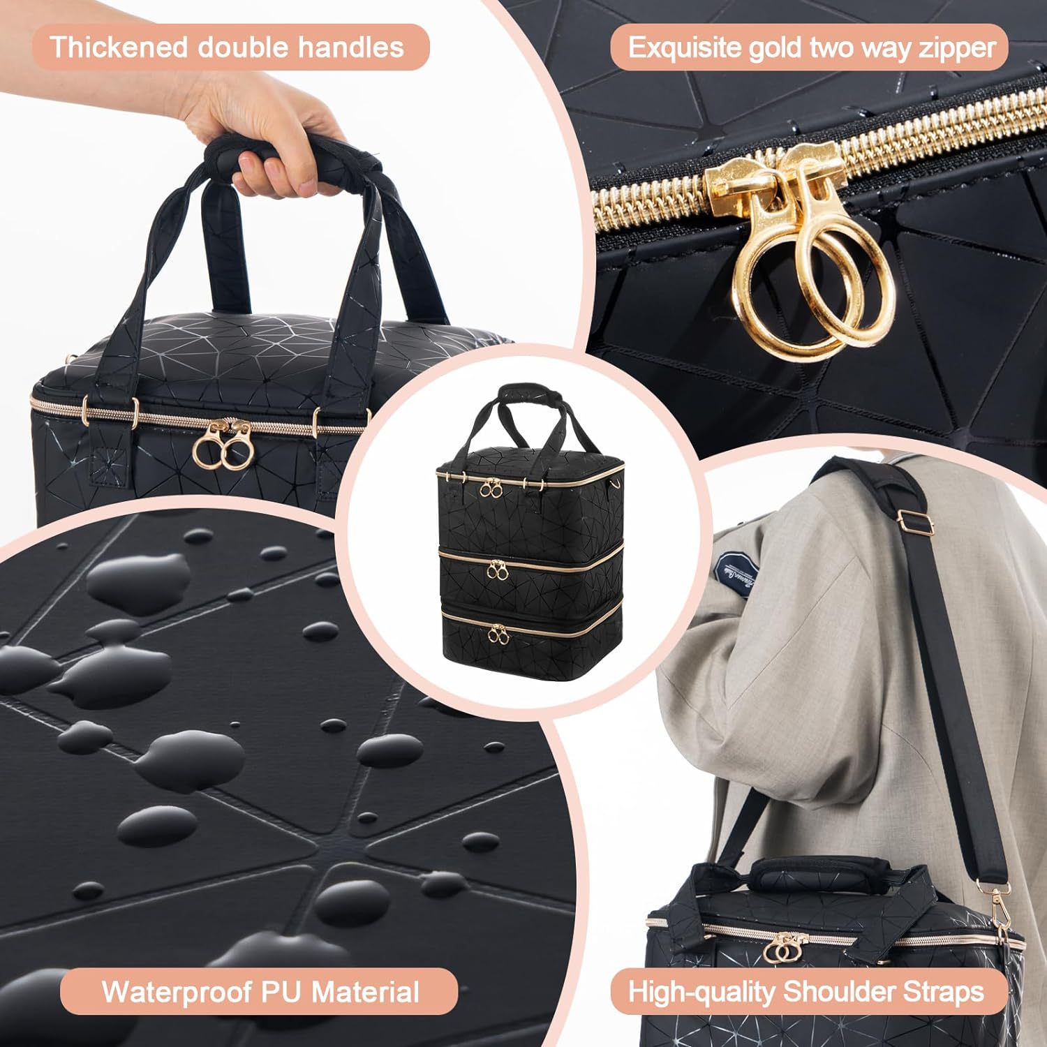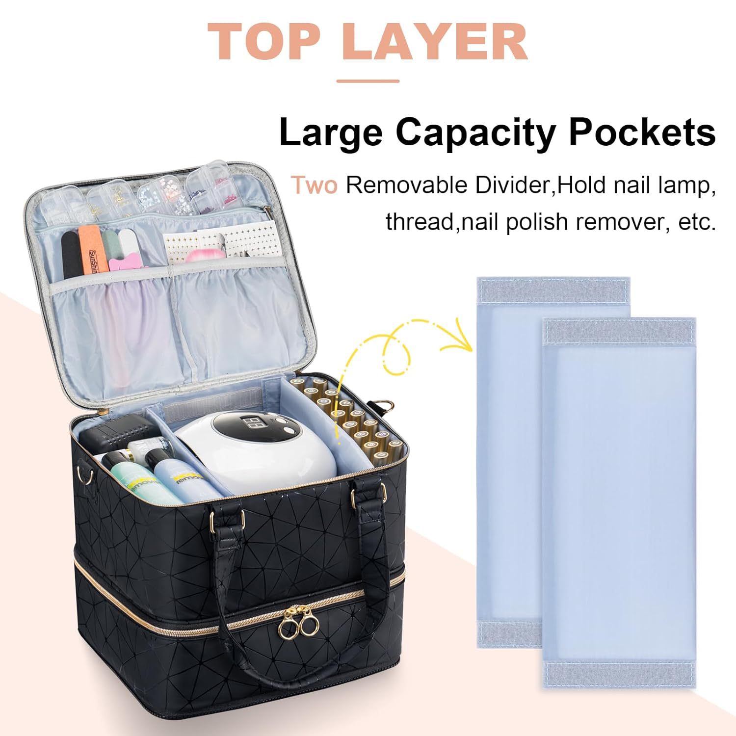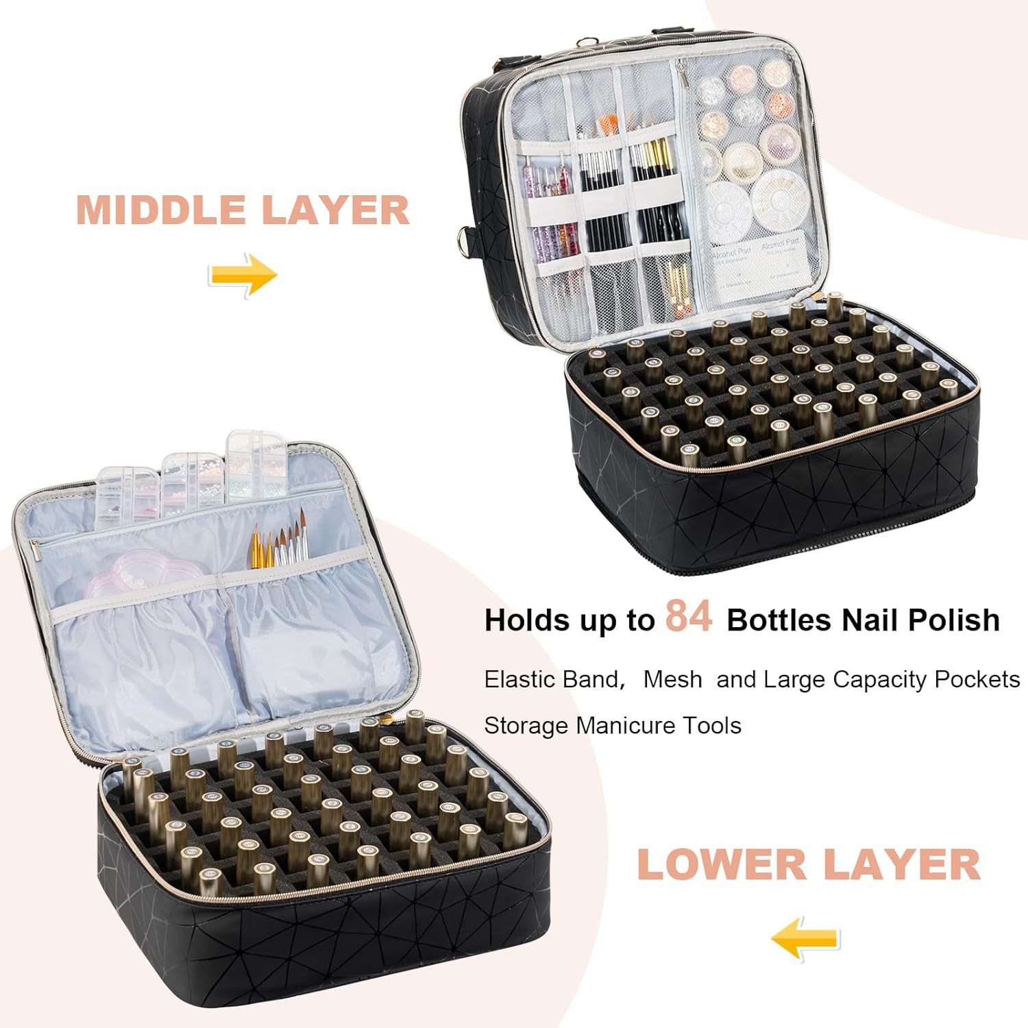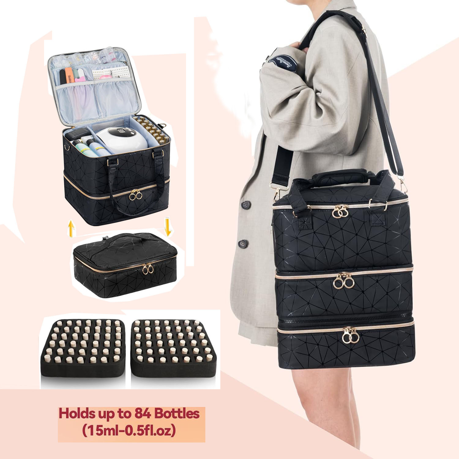휴대용 고급 센스 분리 가능한 초대형 수용량 3 층 못 폴란드 저장 가방은 네일 램프 케이스의 84 병을 담을 수 있습니다