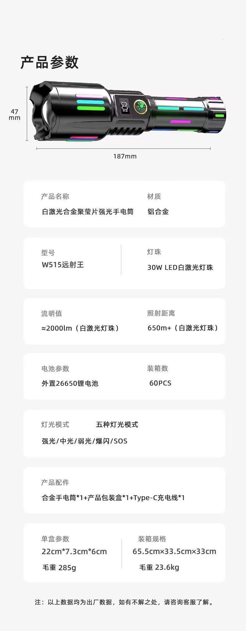 손전등 + 데이터 케이블 + 선물 상자(배터리는 포함되어 있지 않음)