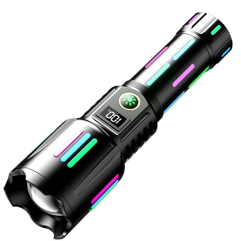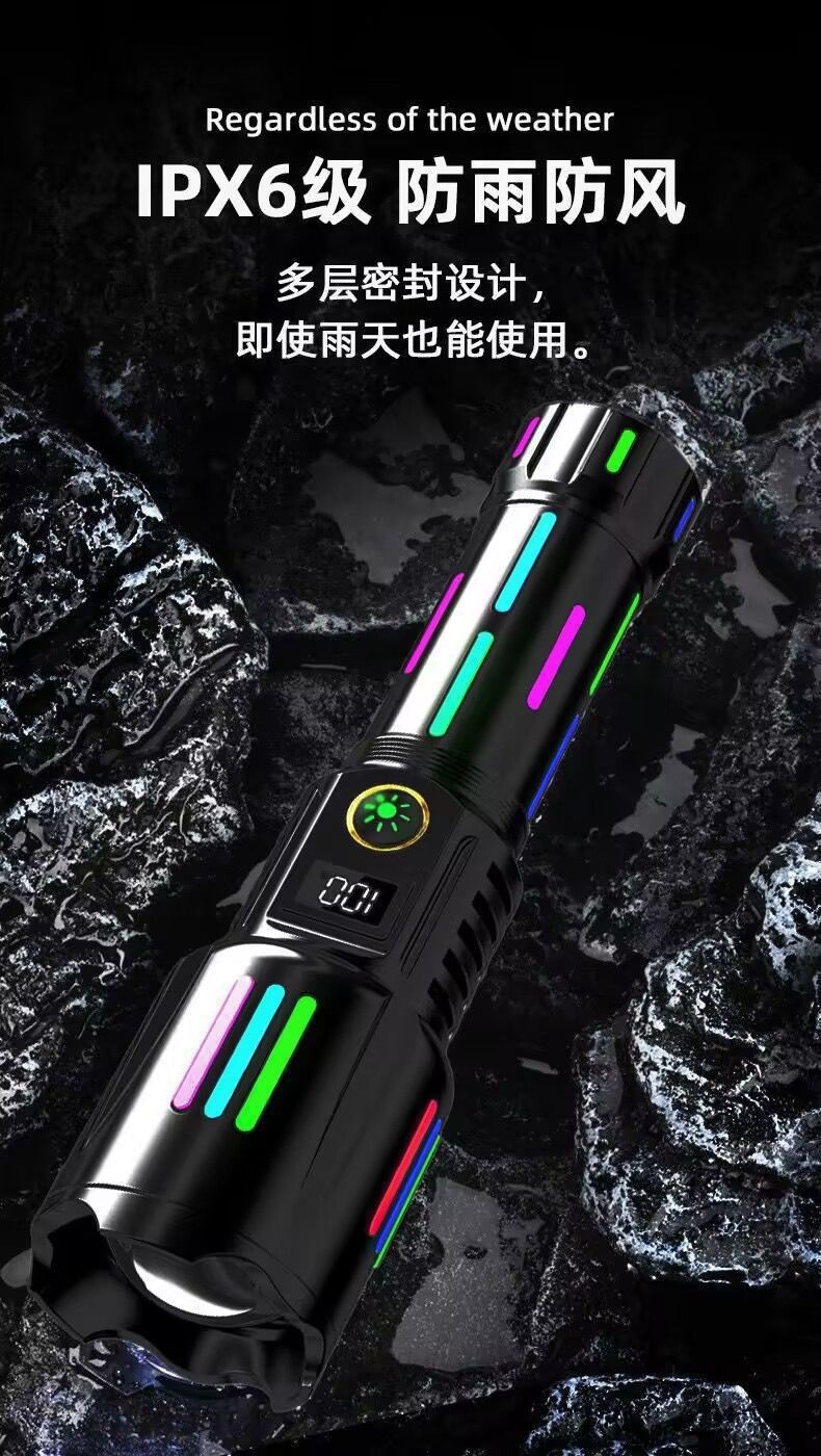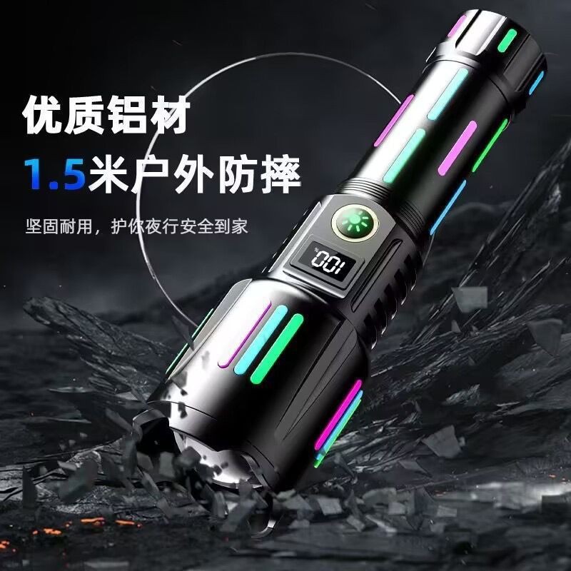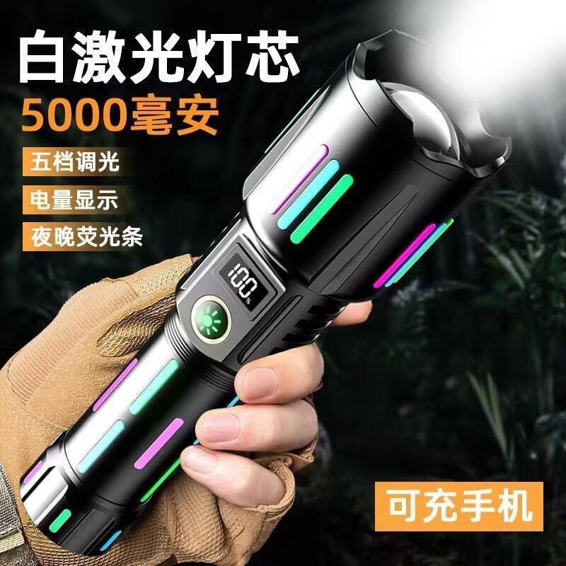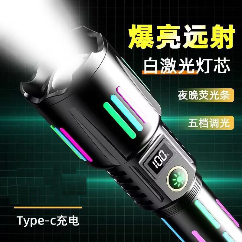 국경 LED 백색 레이저 손전등 유형-C 충전 텔레스코픽 줌 디지털 형광 스트립 손전등