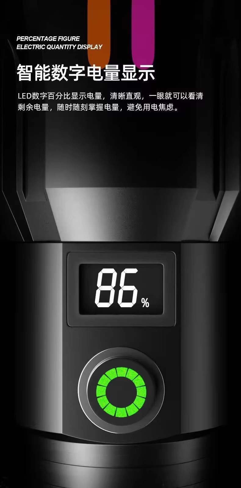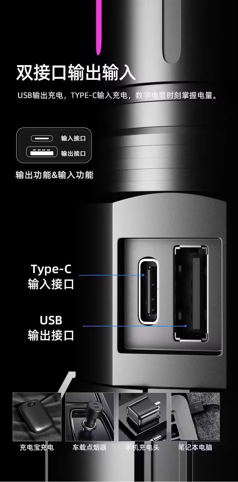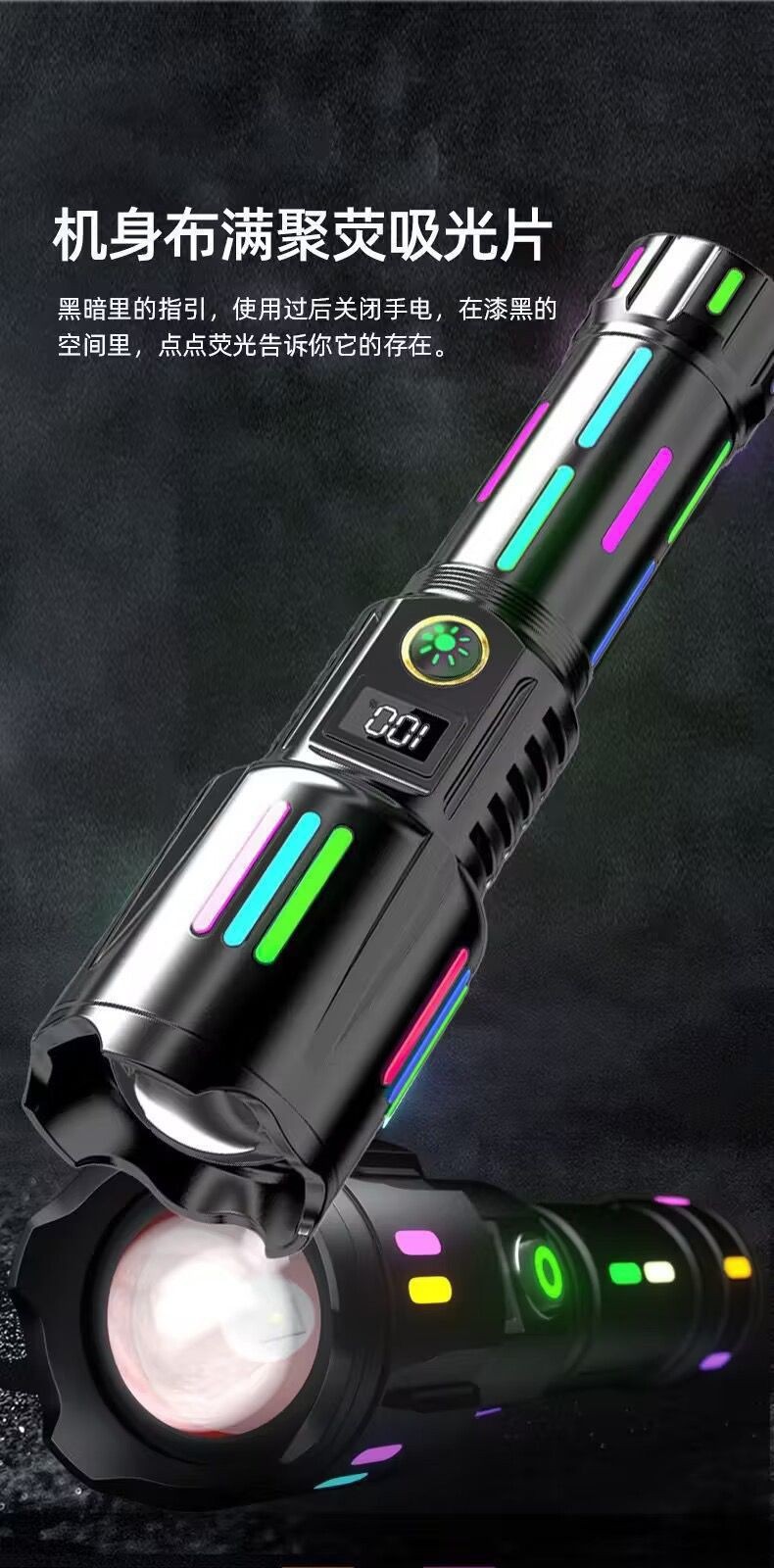 국경 LED 백색 레이저 손전등 유형-C 충전 텔레스코픽 줌 디지털 형광 스트립 손전등