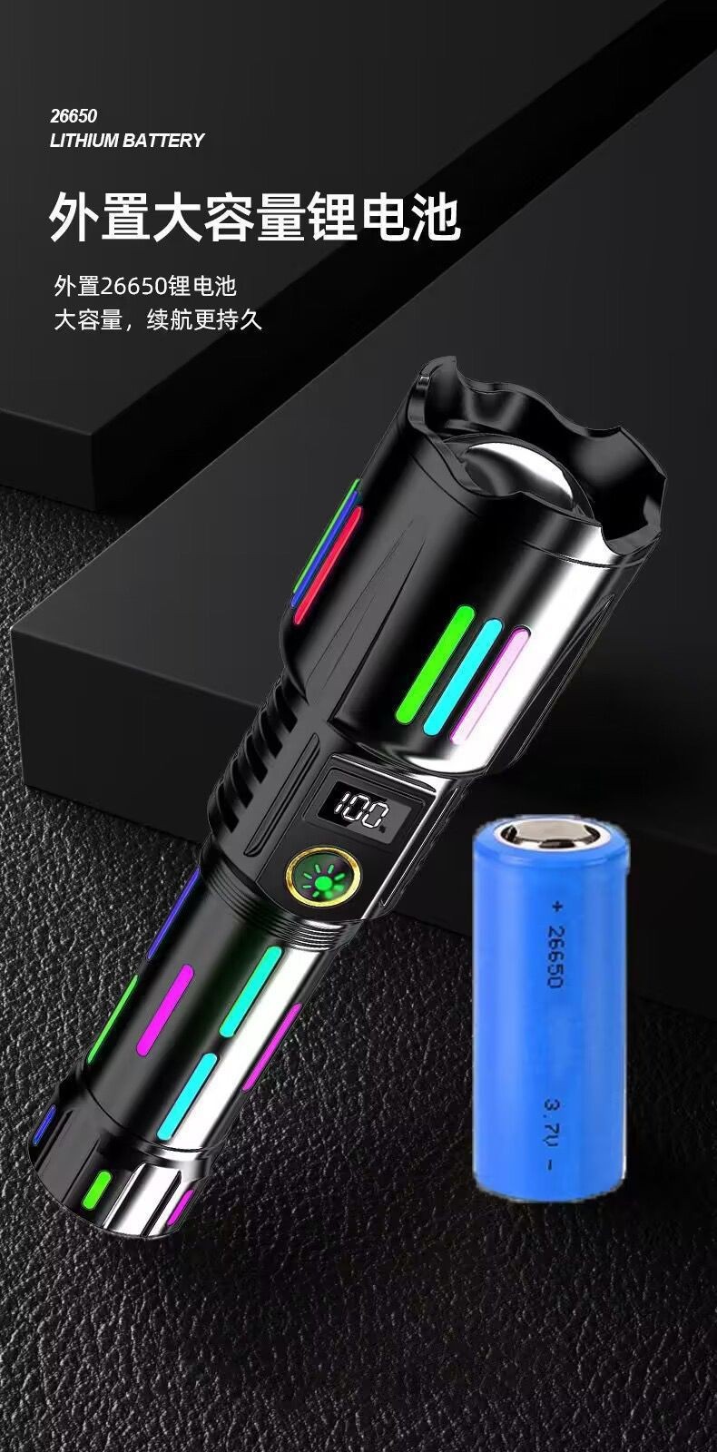 손전등 + 데이터 케이블 + 26650 배터리 + 선물 상자