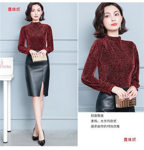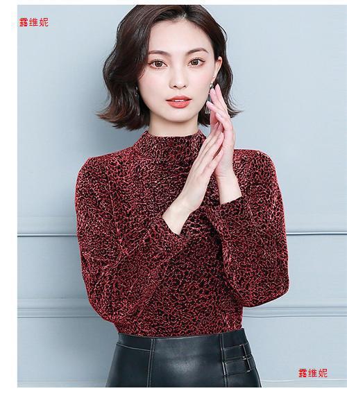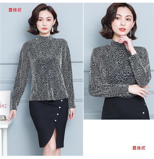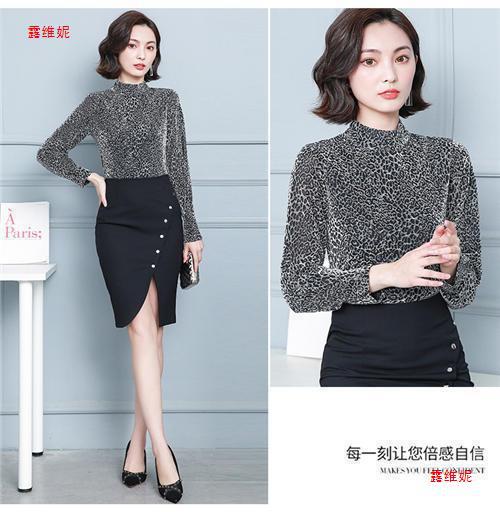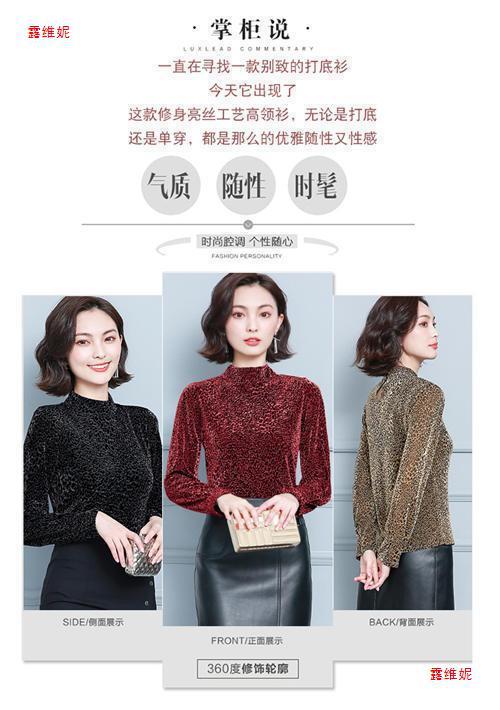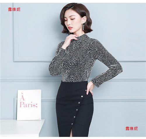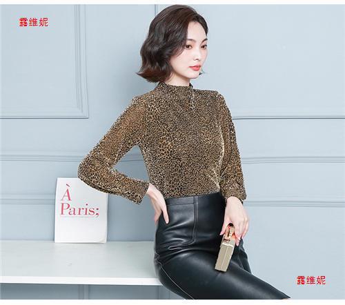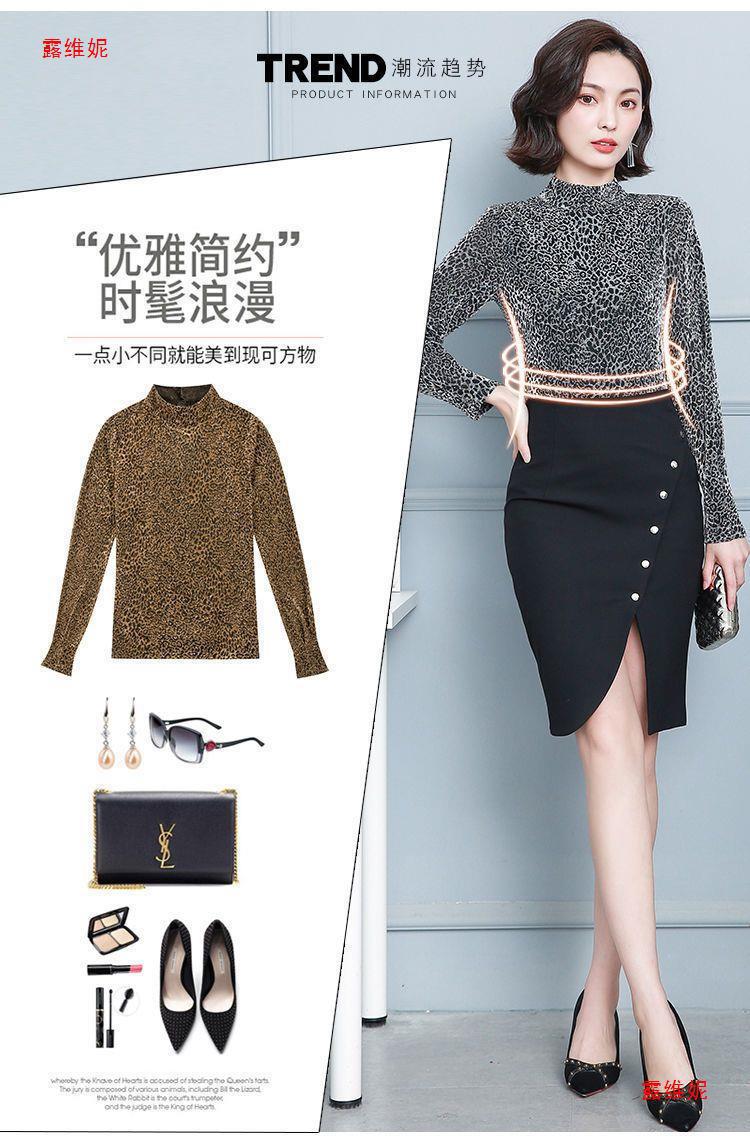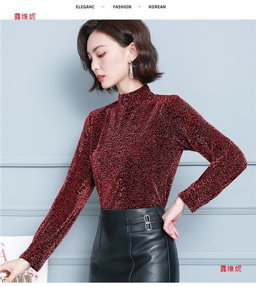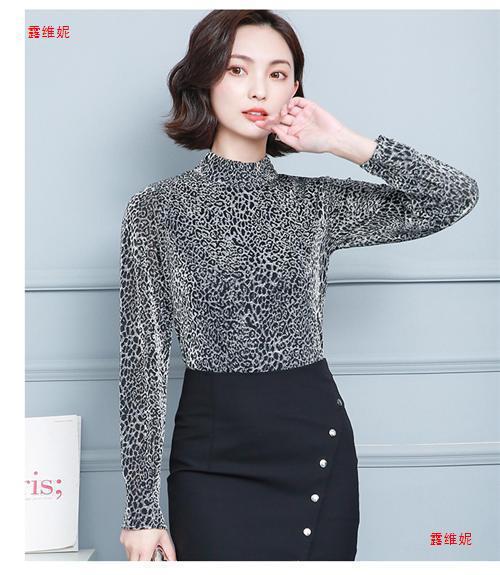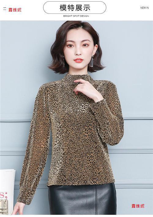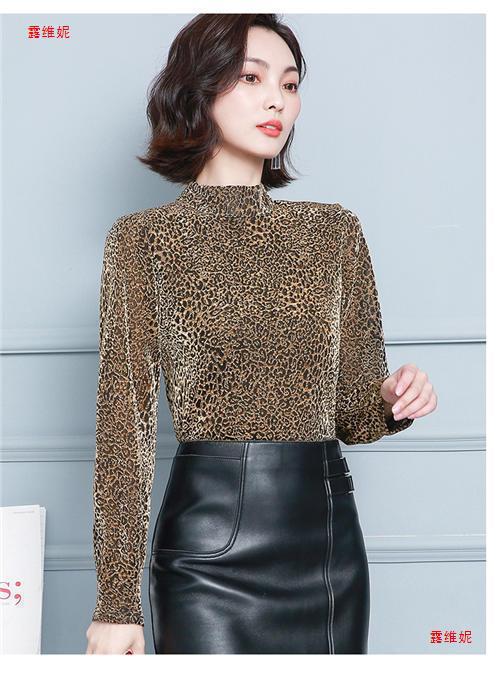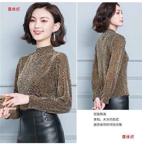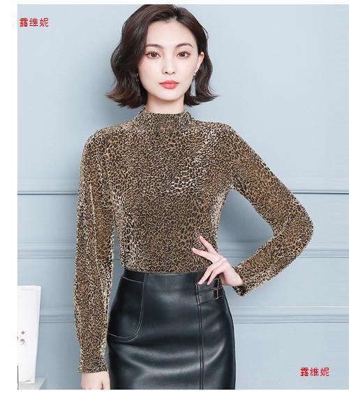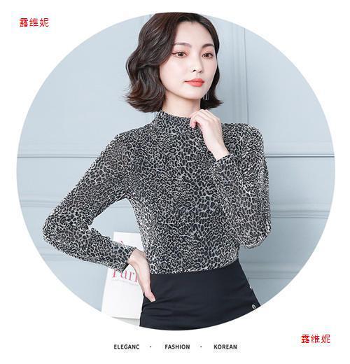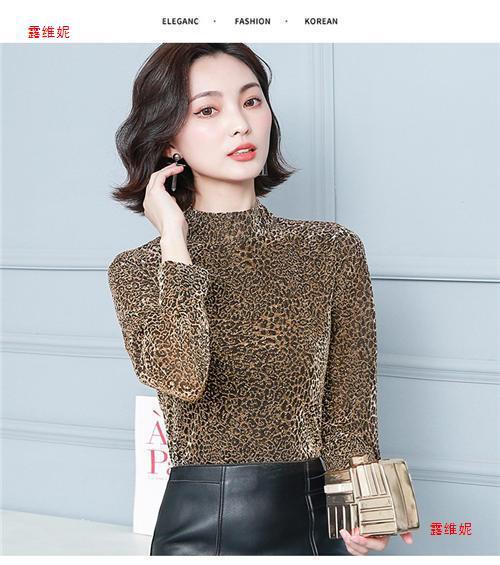 하프 터틀넥 레오파드 무늬 베이스 셔츠 여성용 가을 및 겨울 웨스턴 스타일 2024 새로운 슬림 핏 올매치 유행 긴팔 티셔츠 여성용 탑