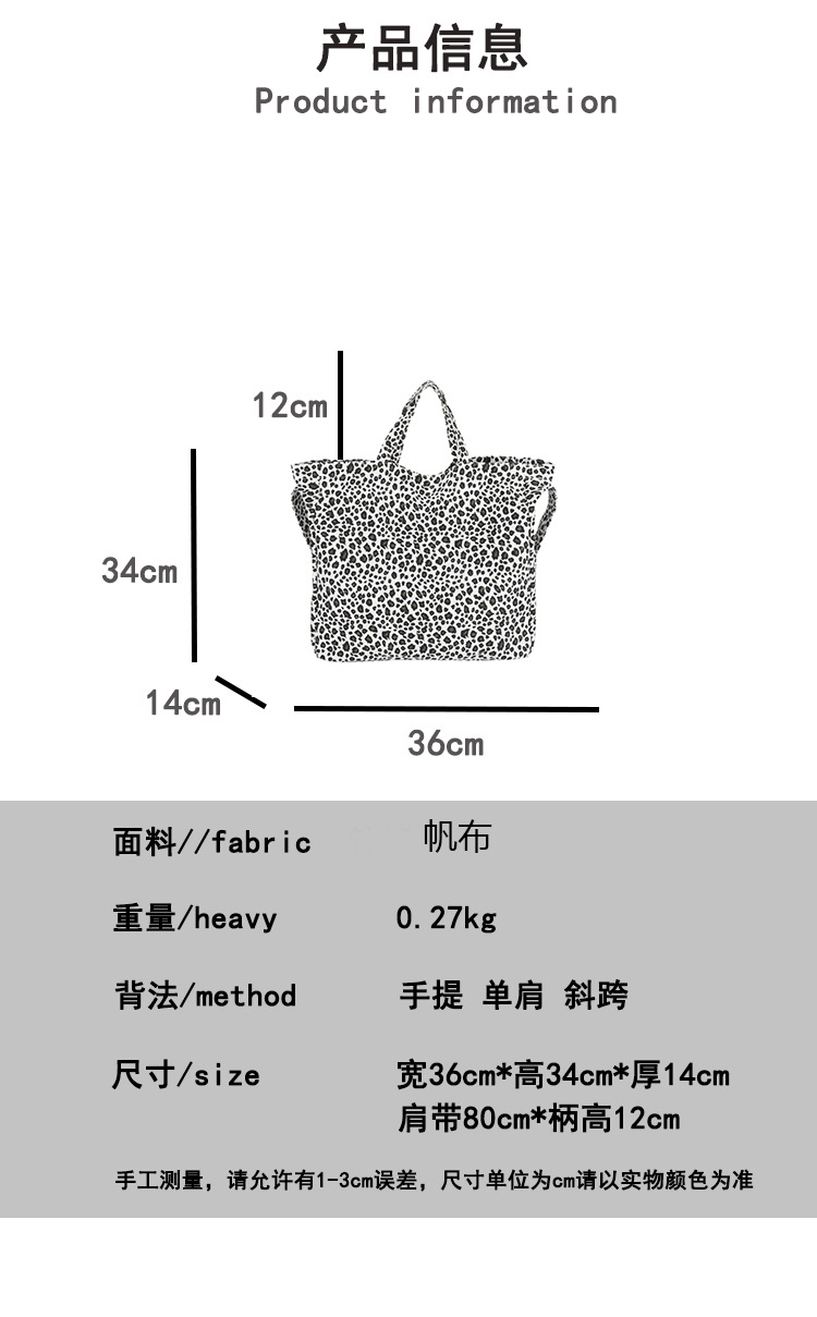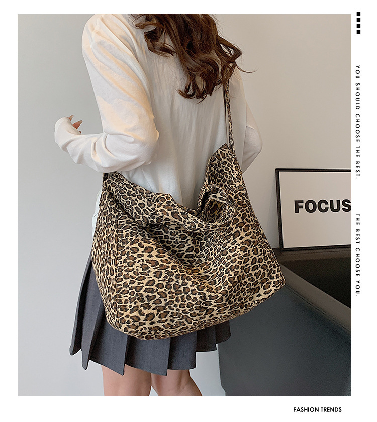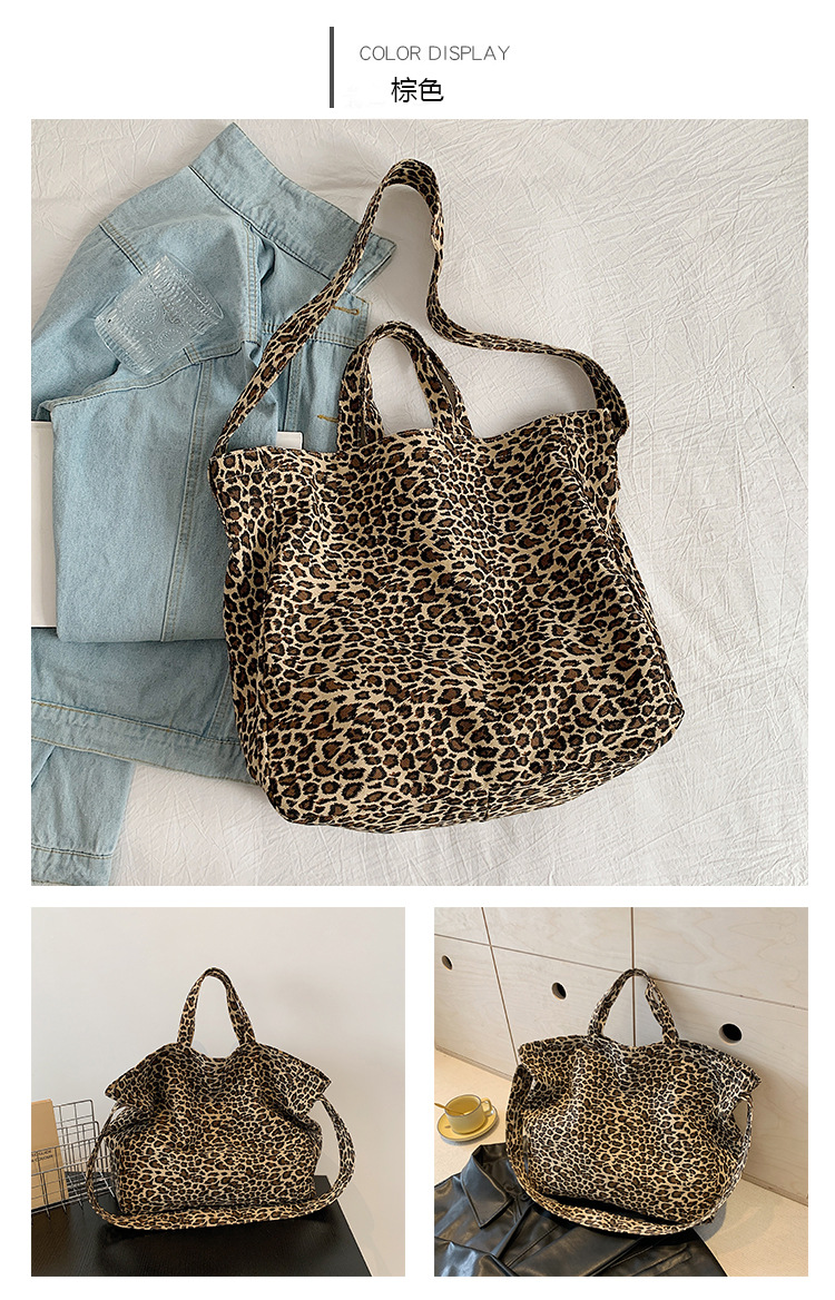 대외 무역 여성용 가방 레오파드 패턴 여성용 숄더백 대용량 캐주얼 통근 토트백 크로스백 통근 핸드백
