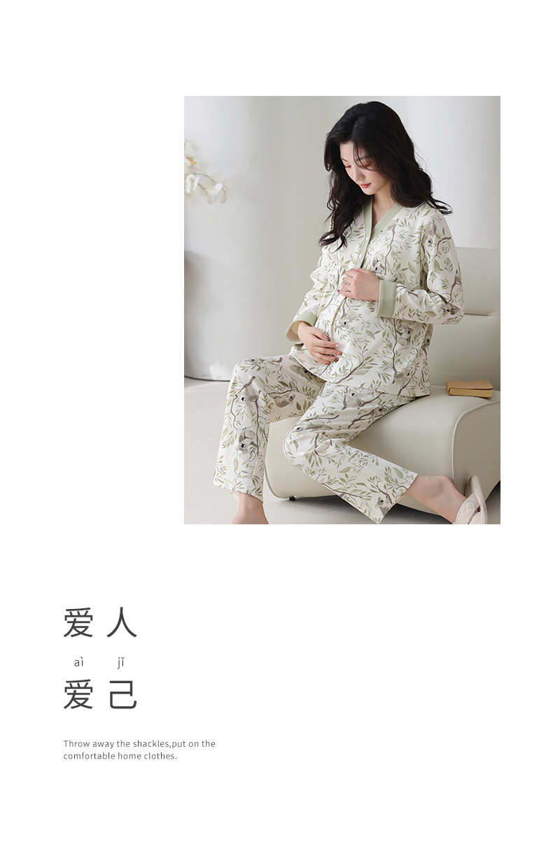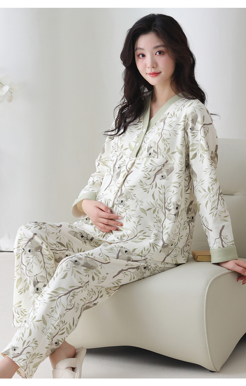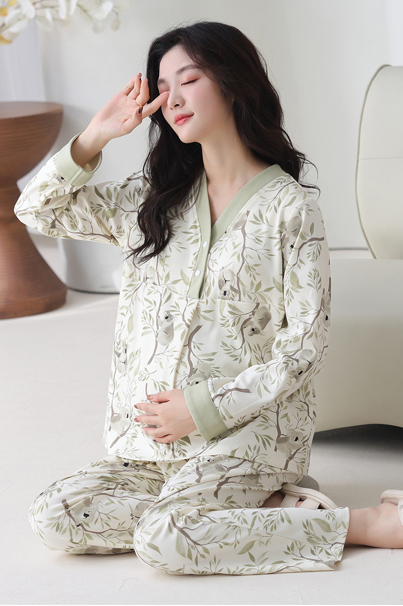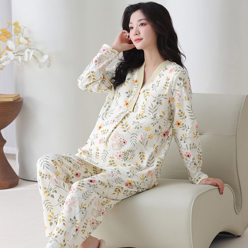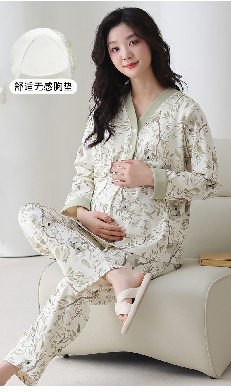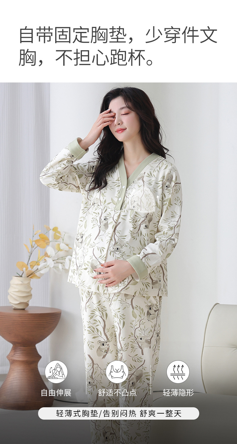 흉부 패드가있는 순면 임산부 월간 옷 잠옷 봄 · 가을 긴 소매 플러스 사이즈 산전 및 산후 모유 수유 홈 옷