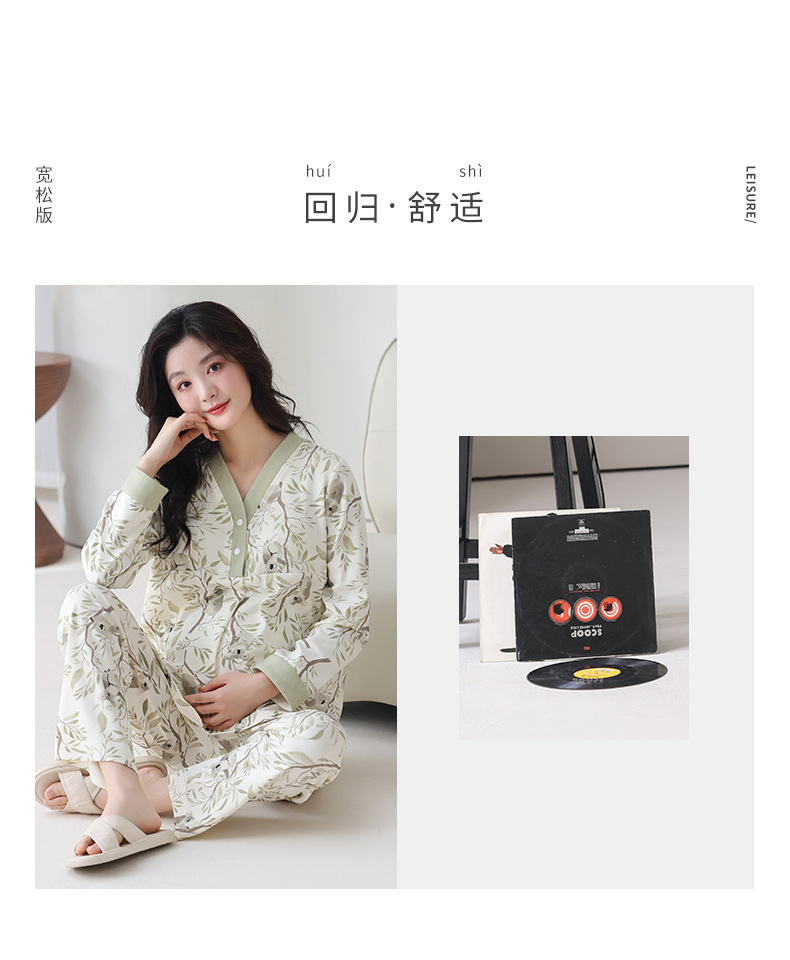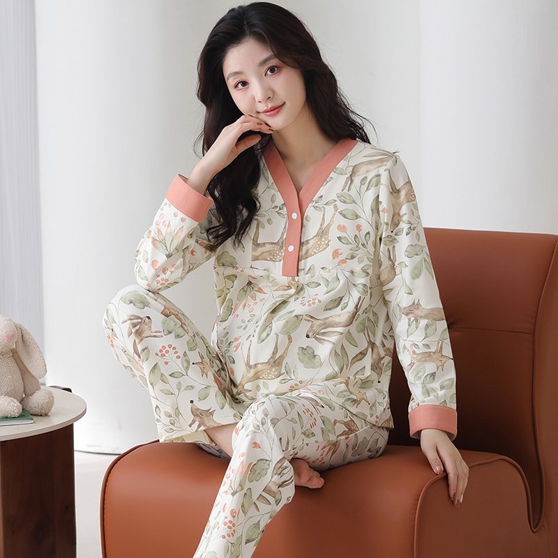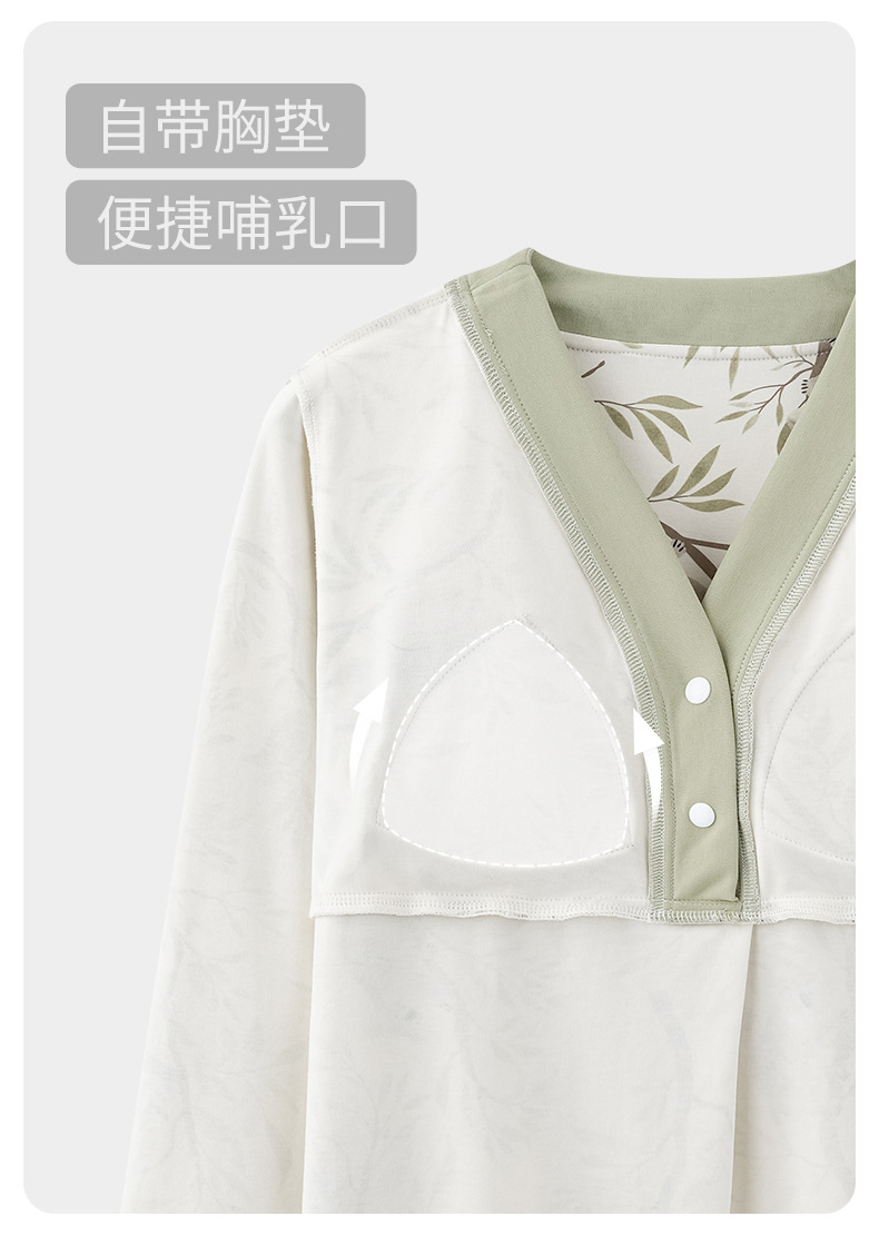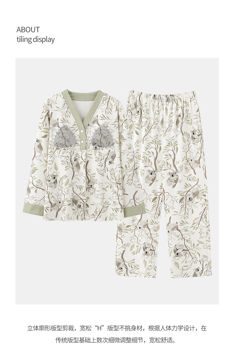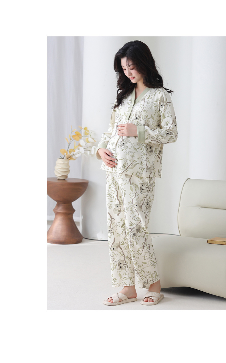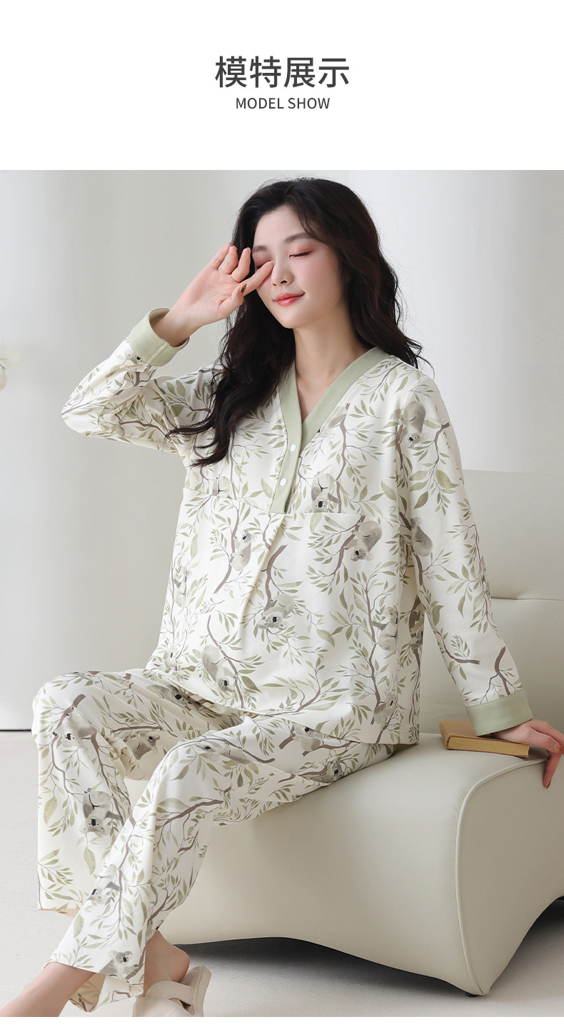 흉부 패드가있는 순면 임산부 월간 옷 잠옷 봄 · 가을 긴 소매 플러스 사이즈 산전 및 산후 모유 수유 홈 옷