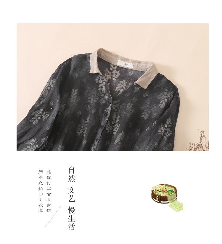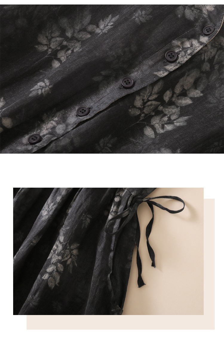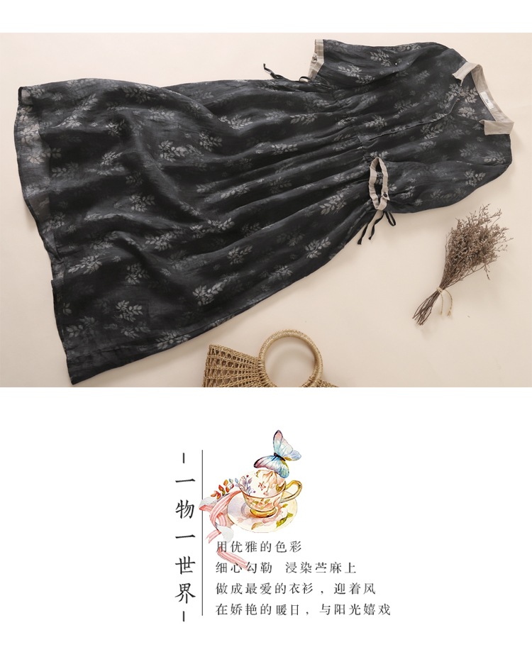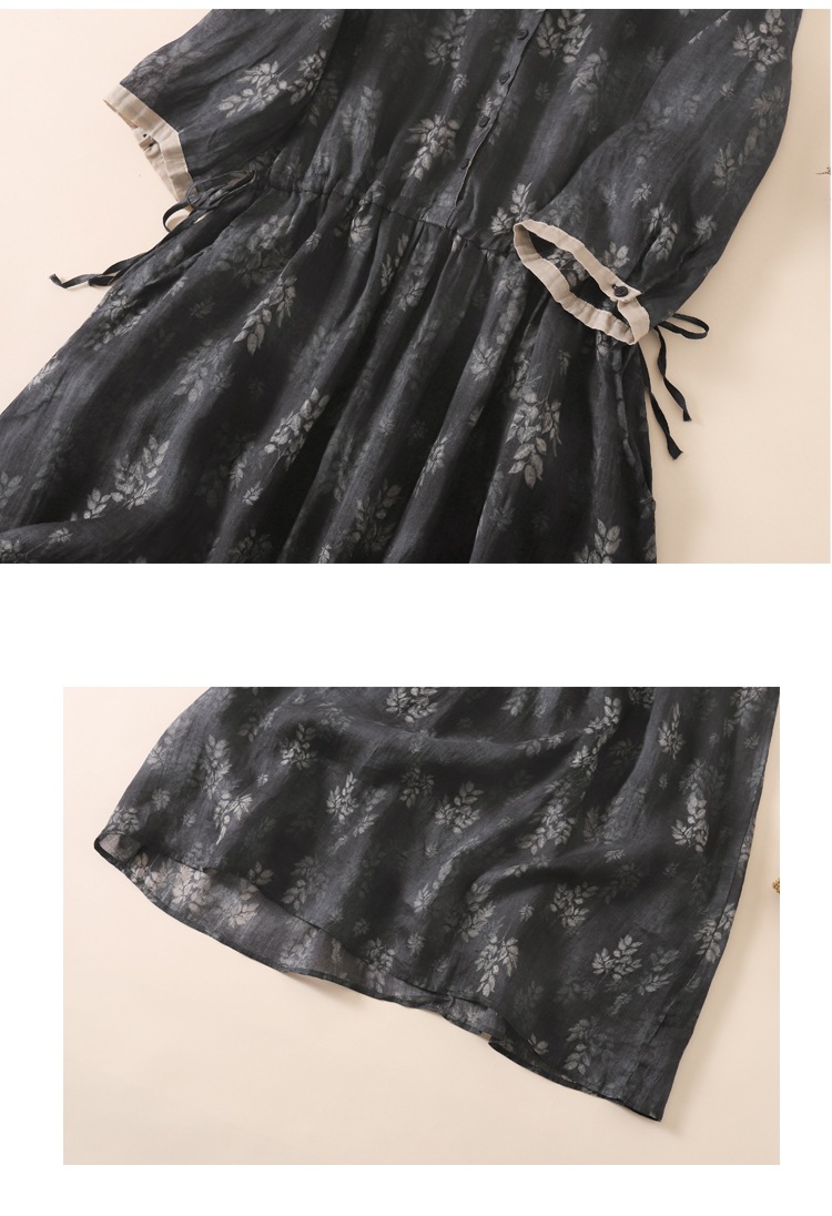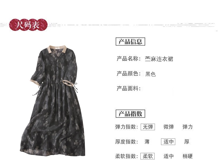 2025 봄 새 스타일 프린트 옷깃 얇은 면과 리넨 셔츠 원피스 여성용 느슨한 플러스 사이즈 단단한 허리 슬리밍 반팔 원피스