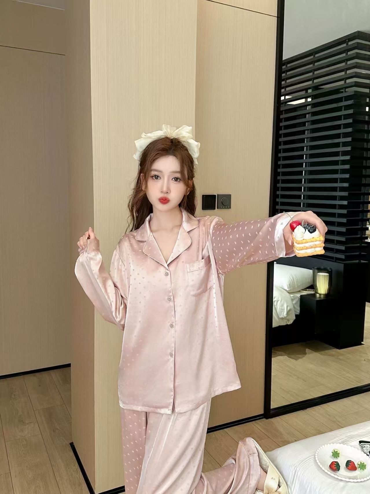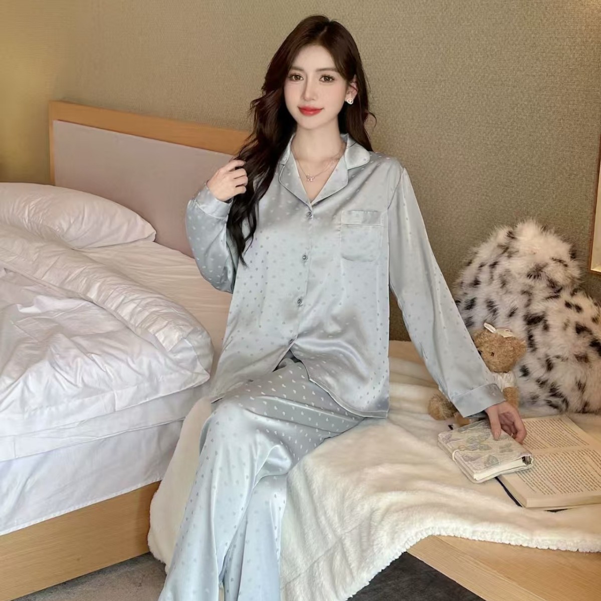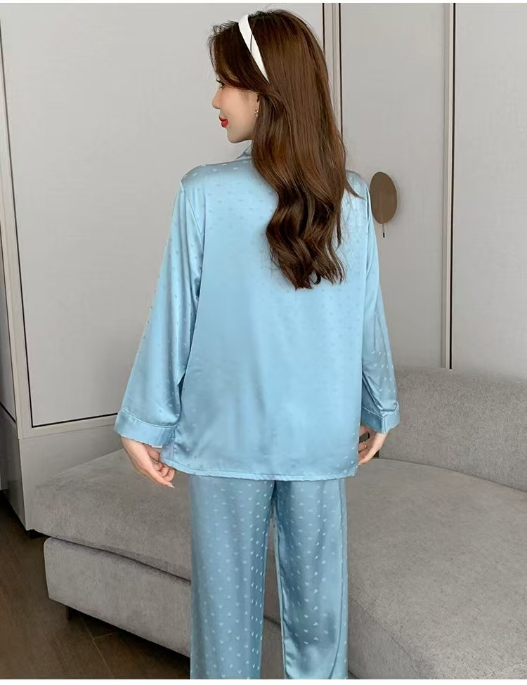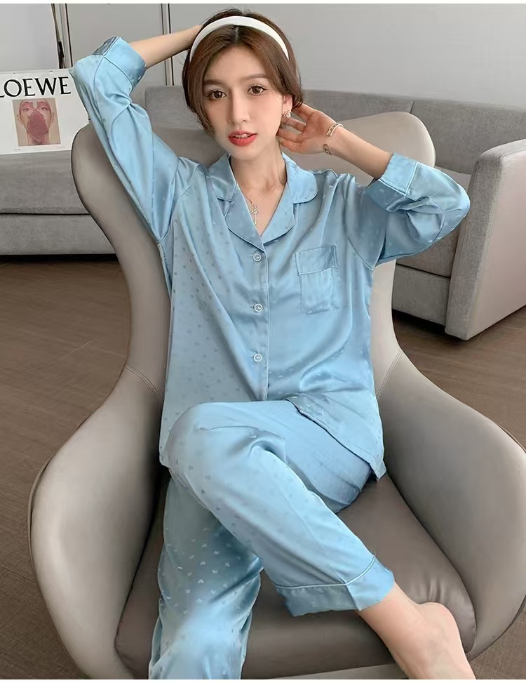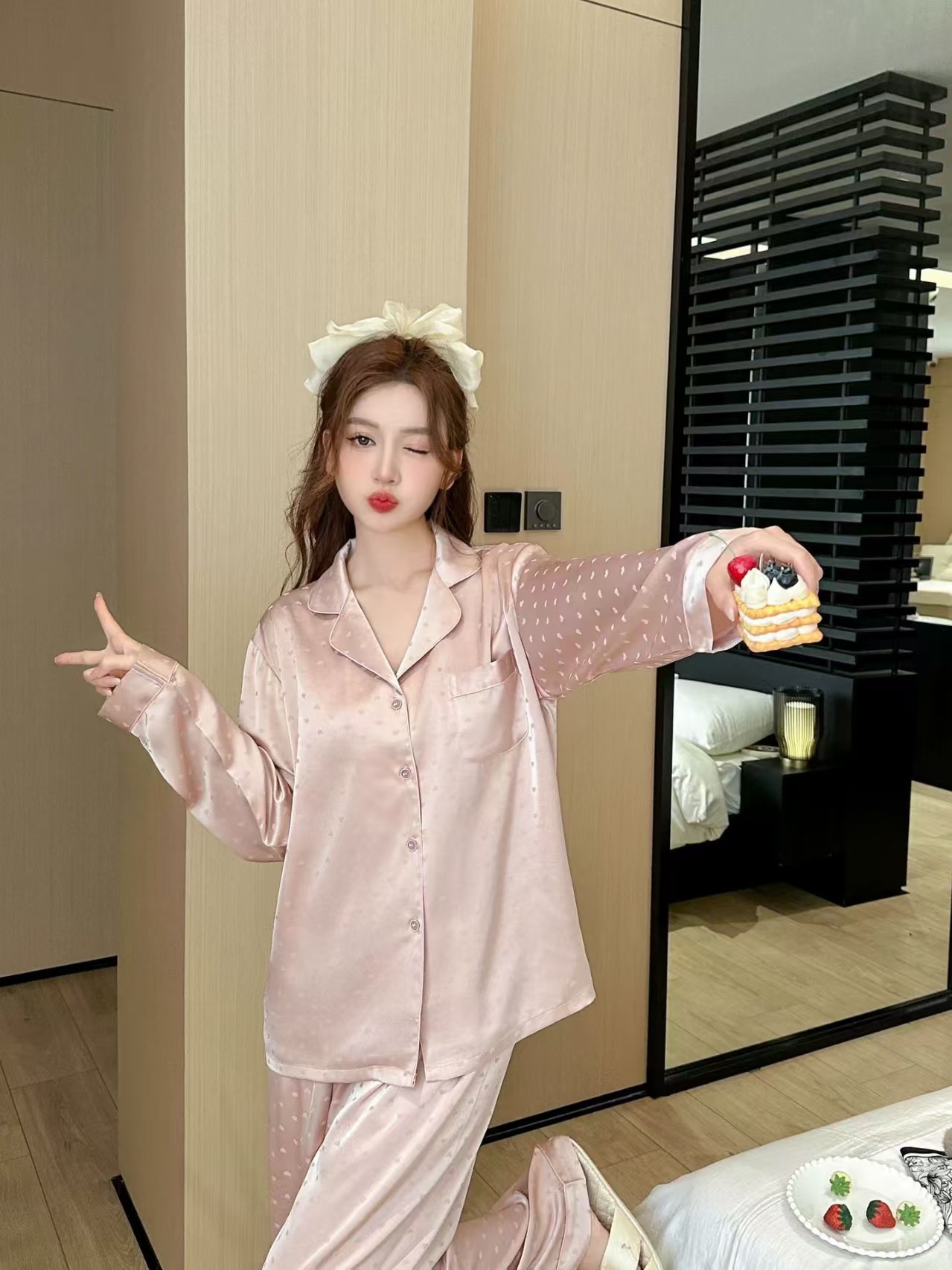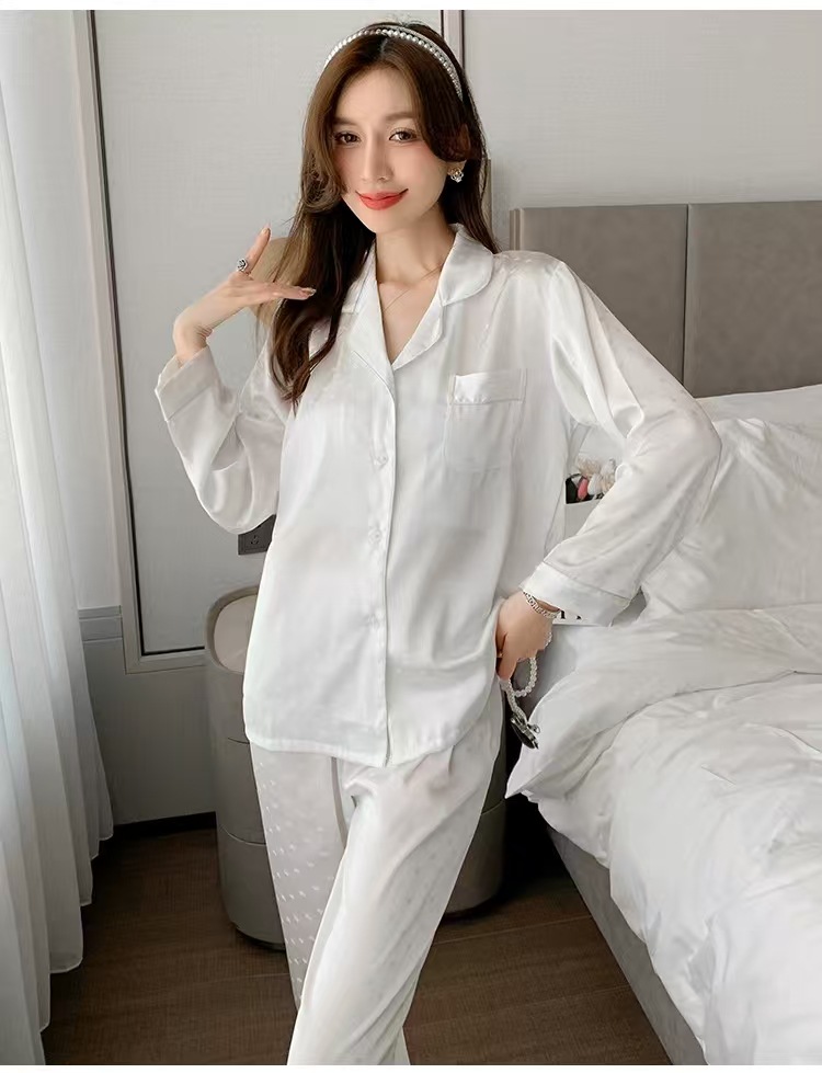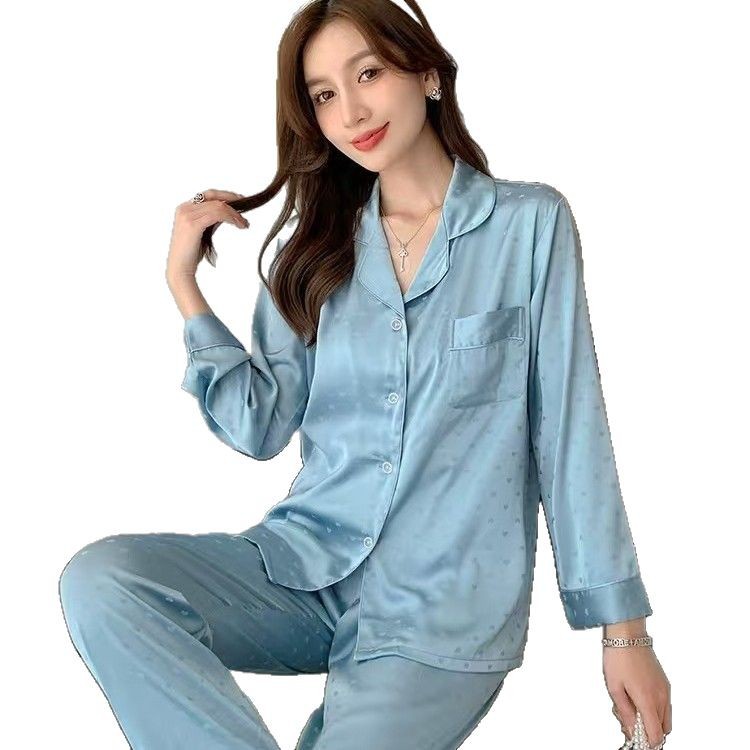 아이스 실크 잠옷 여성 봄과 가을 여름 실크 하이 엔드 자카드 긴팔 세트 새로운 여성 얇은 홈 옷
