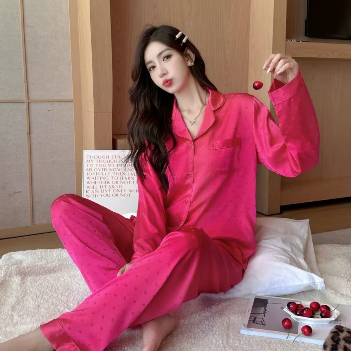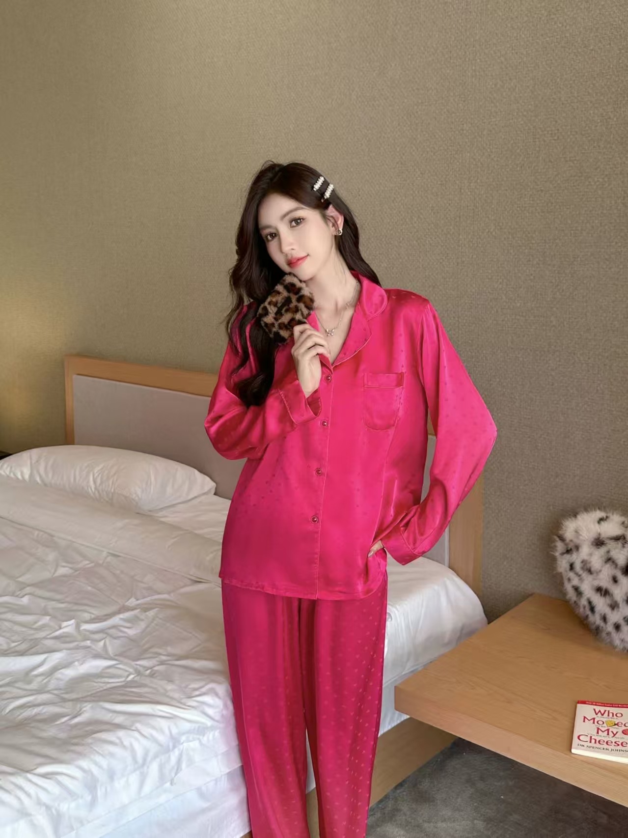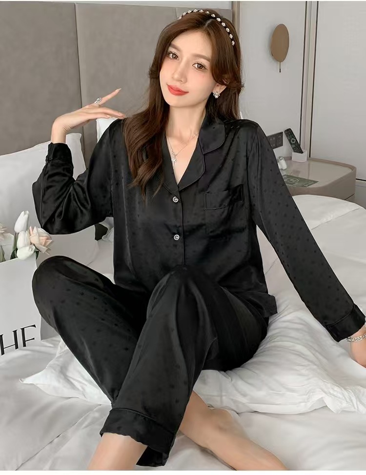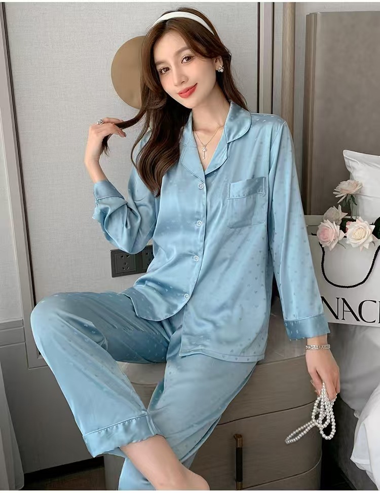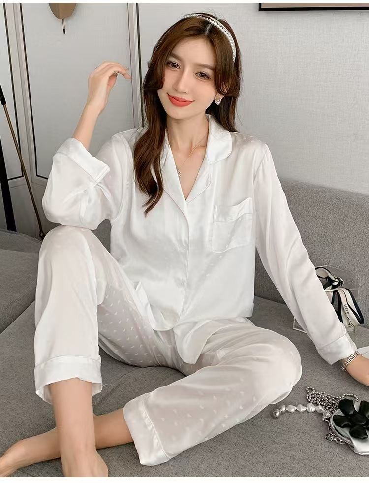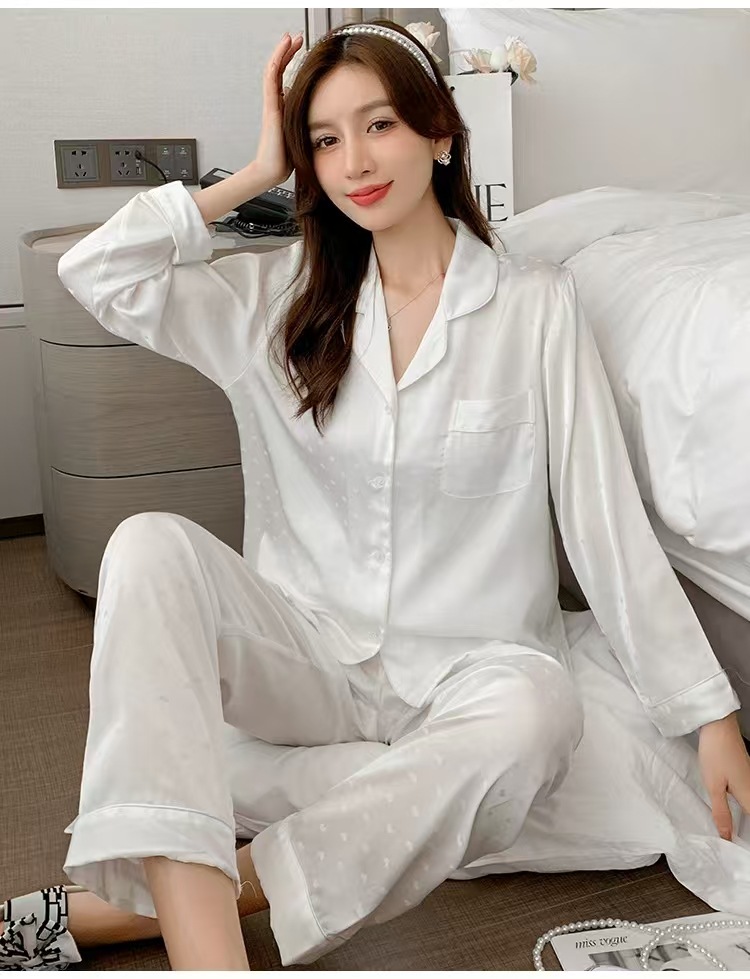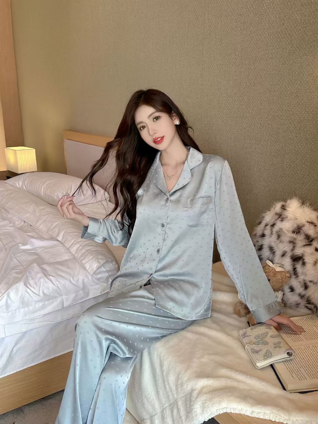 아이스 실크 잠옷 여성 봄과 가을 여름 실크 하이 엔드 자카드 긴팔 세트 새로운 여성 얇은 홈 옷