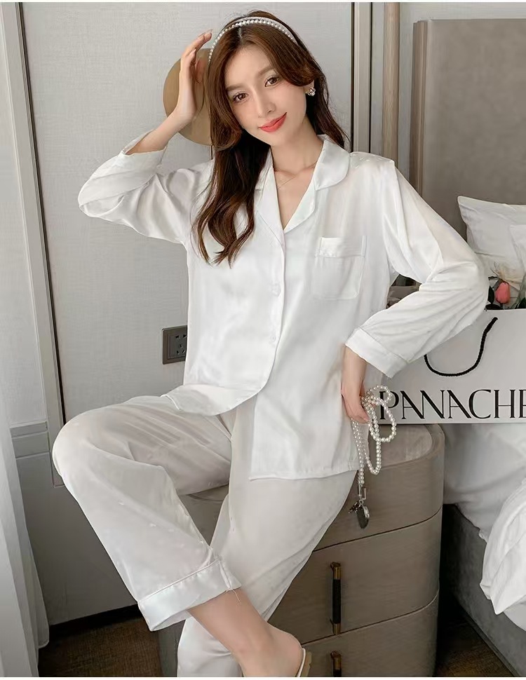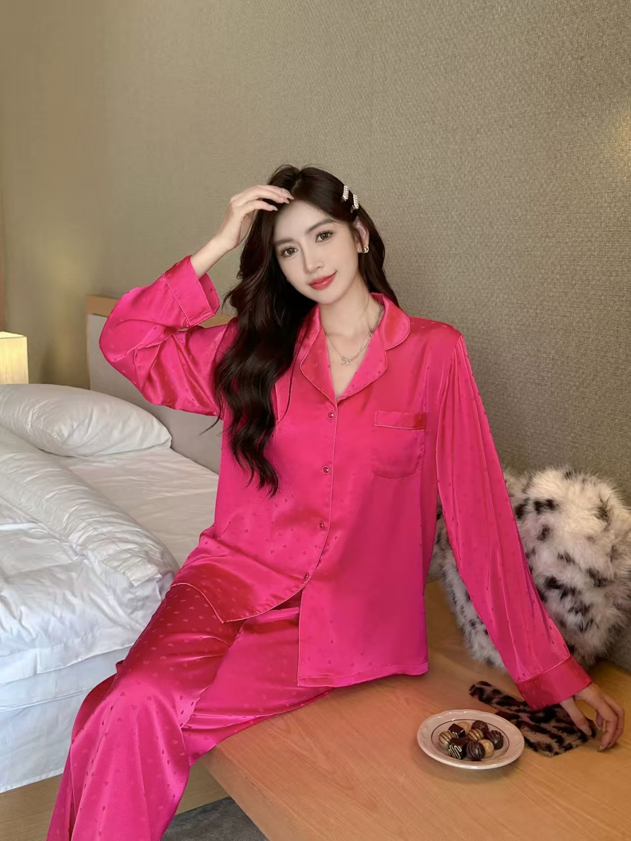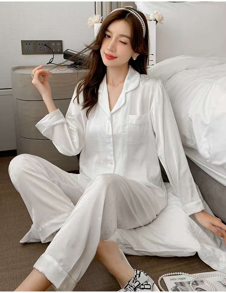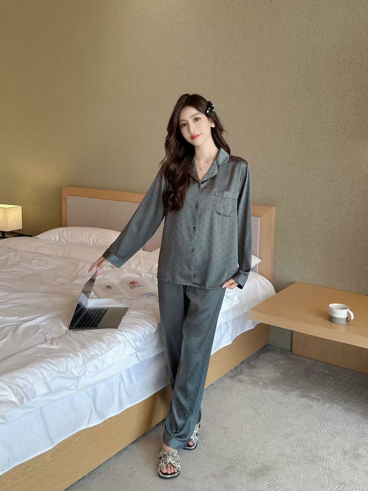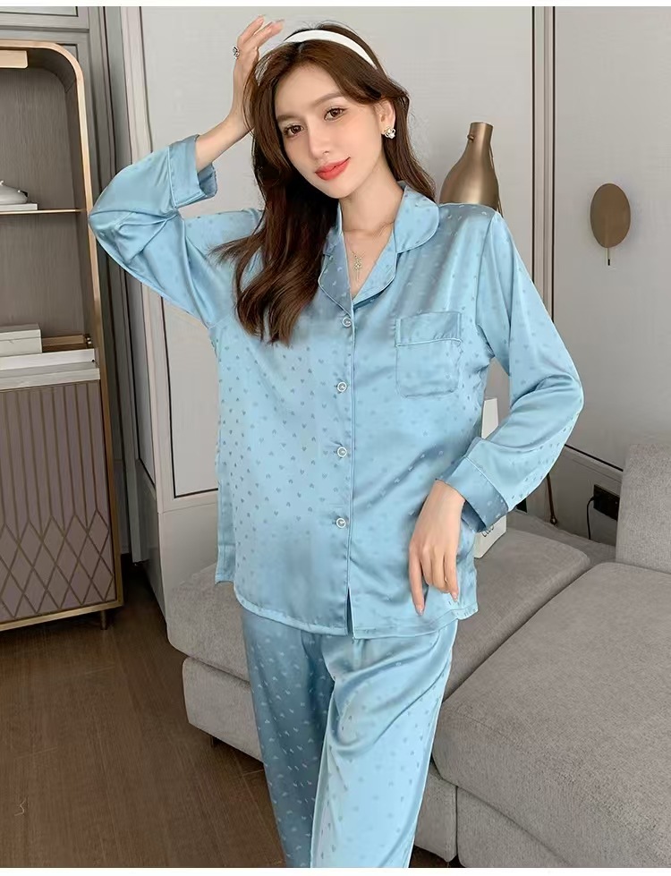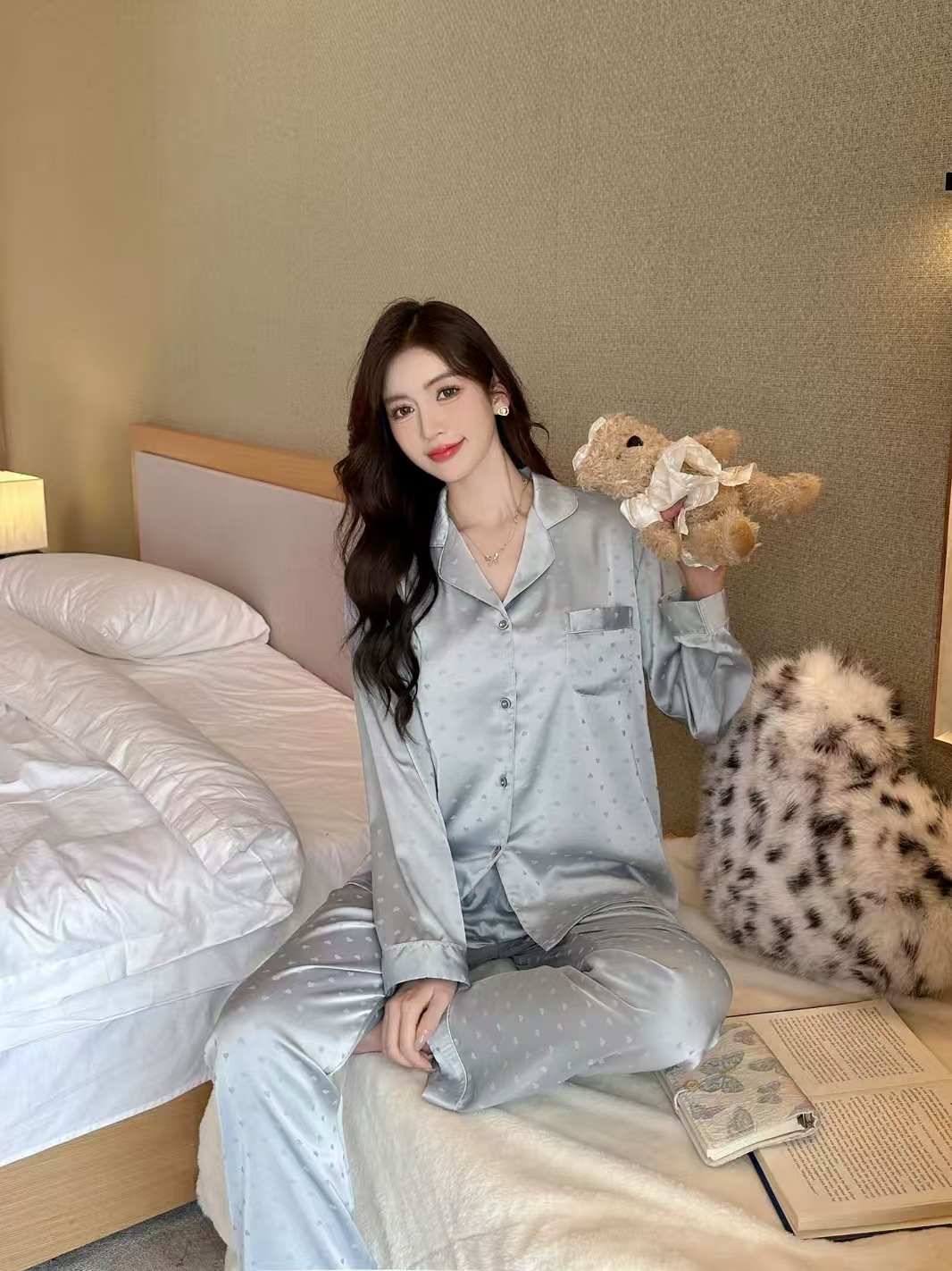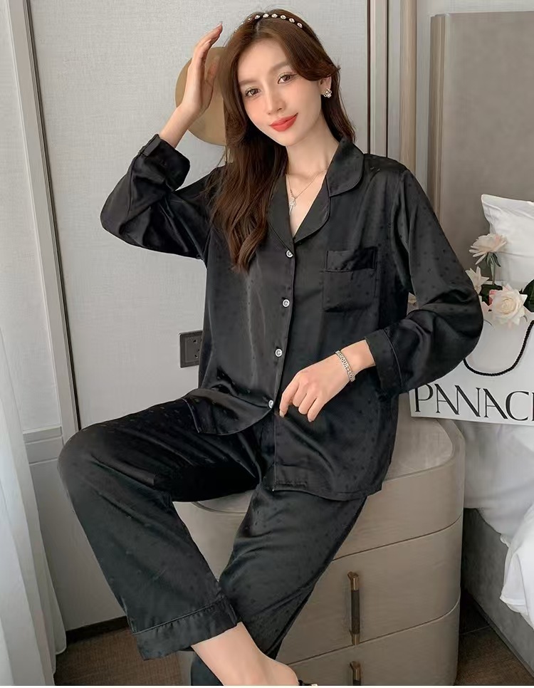 아이스 실크 잠옷 여성 봄과 가을 여름 실크 하이 엔드 자카드 긴팔 세트 새로운 여성 얇은 홈 옷