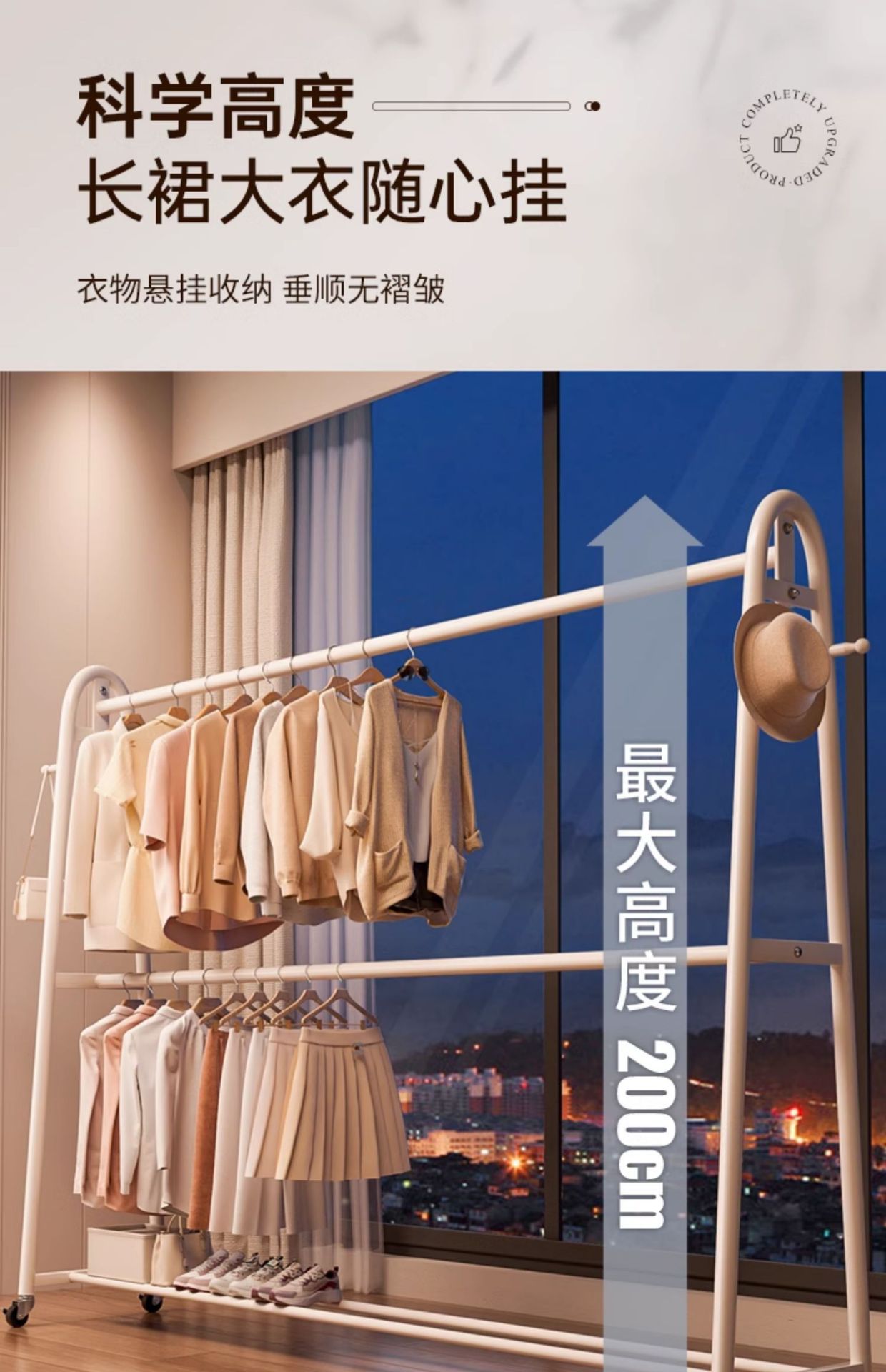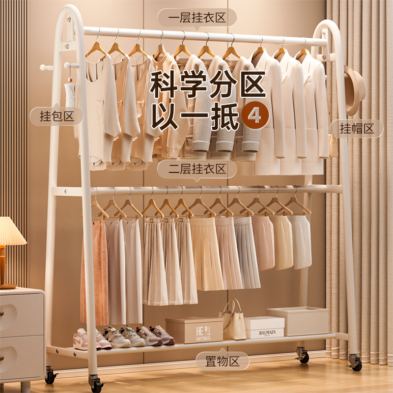 건조 랙 바닥 더블로드 가정용 의류 건조 막대 간단한 옷 랙 움직일 수있는 옷 걸이 랙 실내 의류 교수형 막대