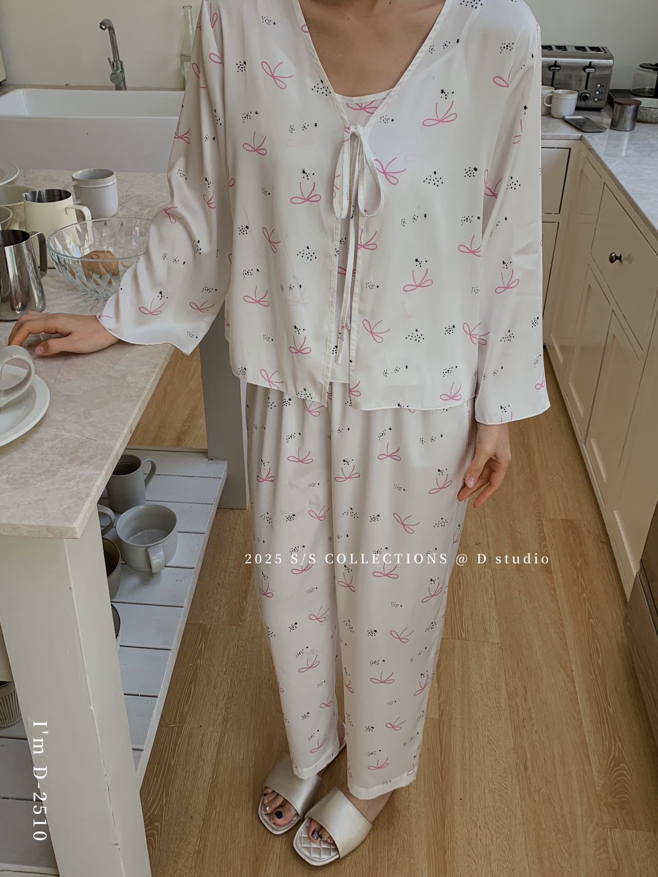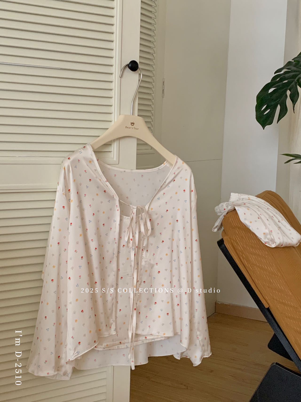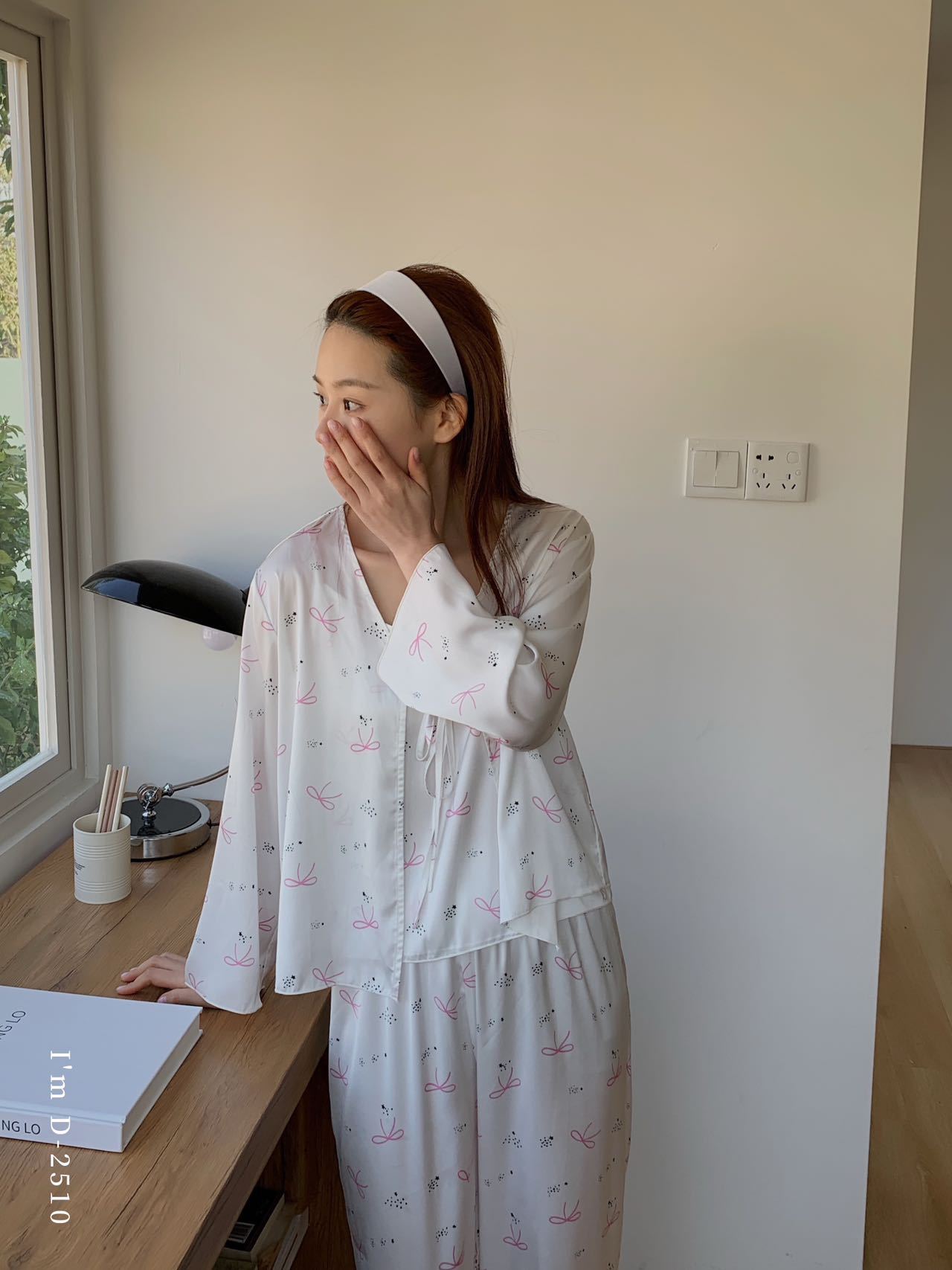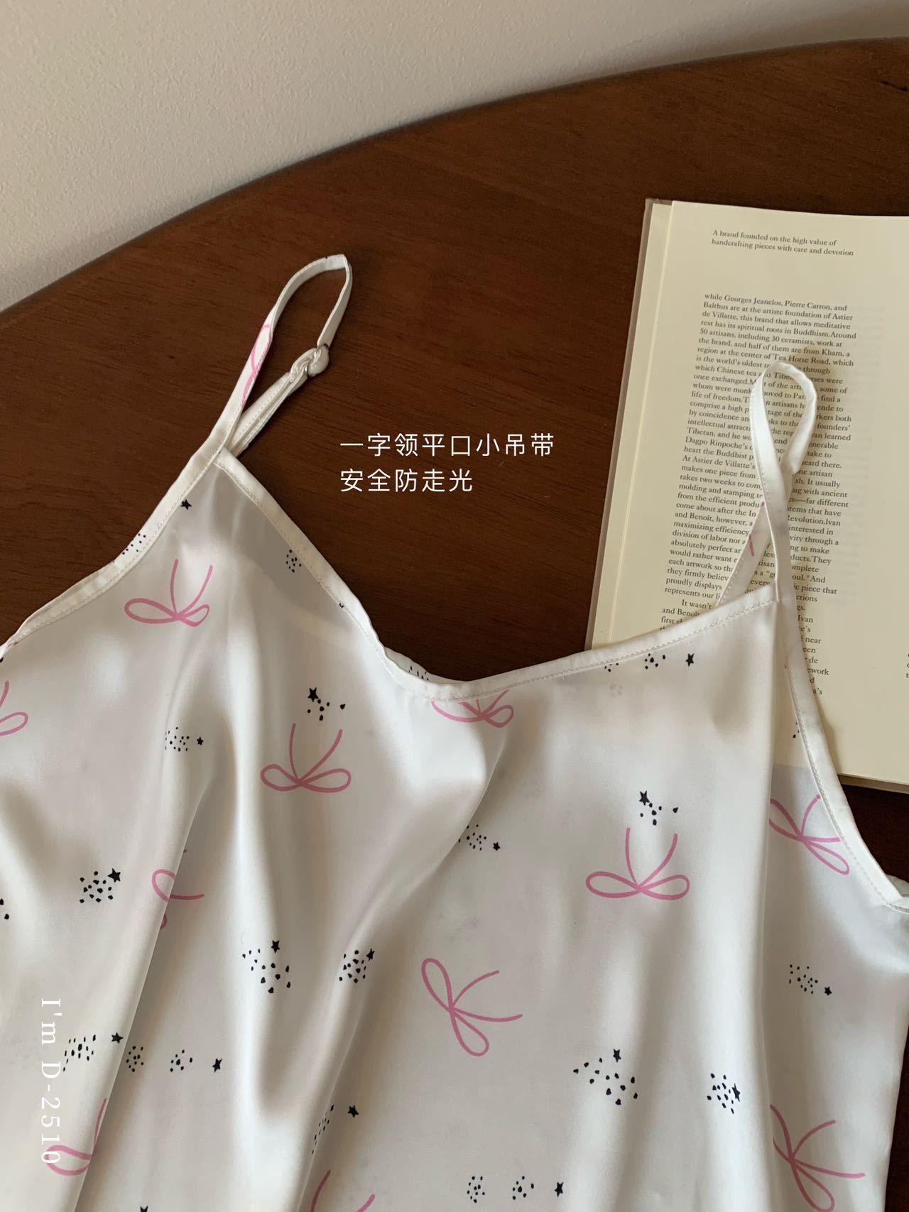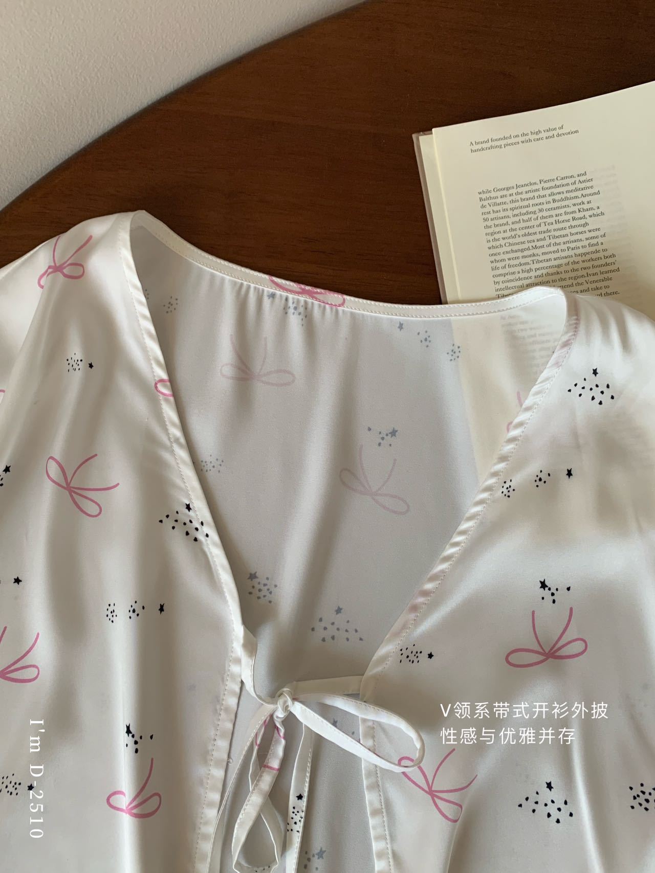Du Xiaozhai 시원한 산들 모조 실크 3 피스 세트 고급 실크 서스펜더 카디건 바지 홈 의류 여성이 밖에서 입을 수있는