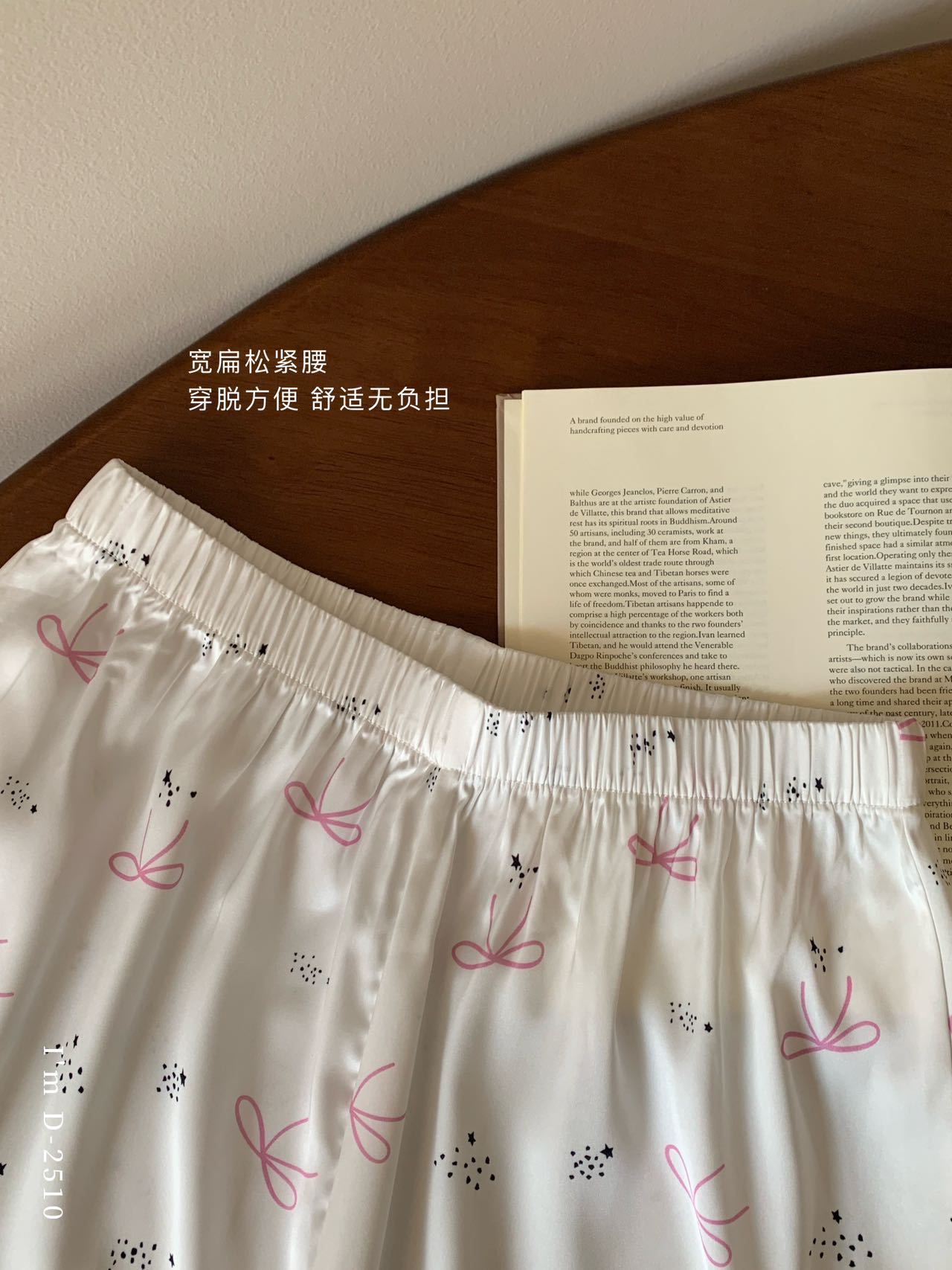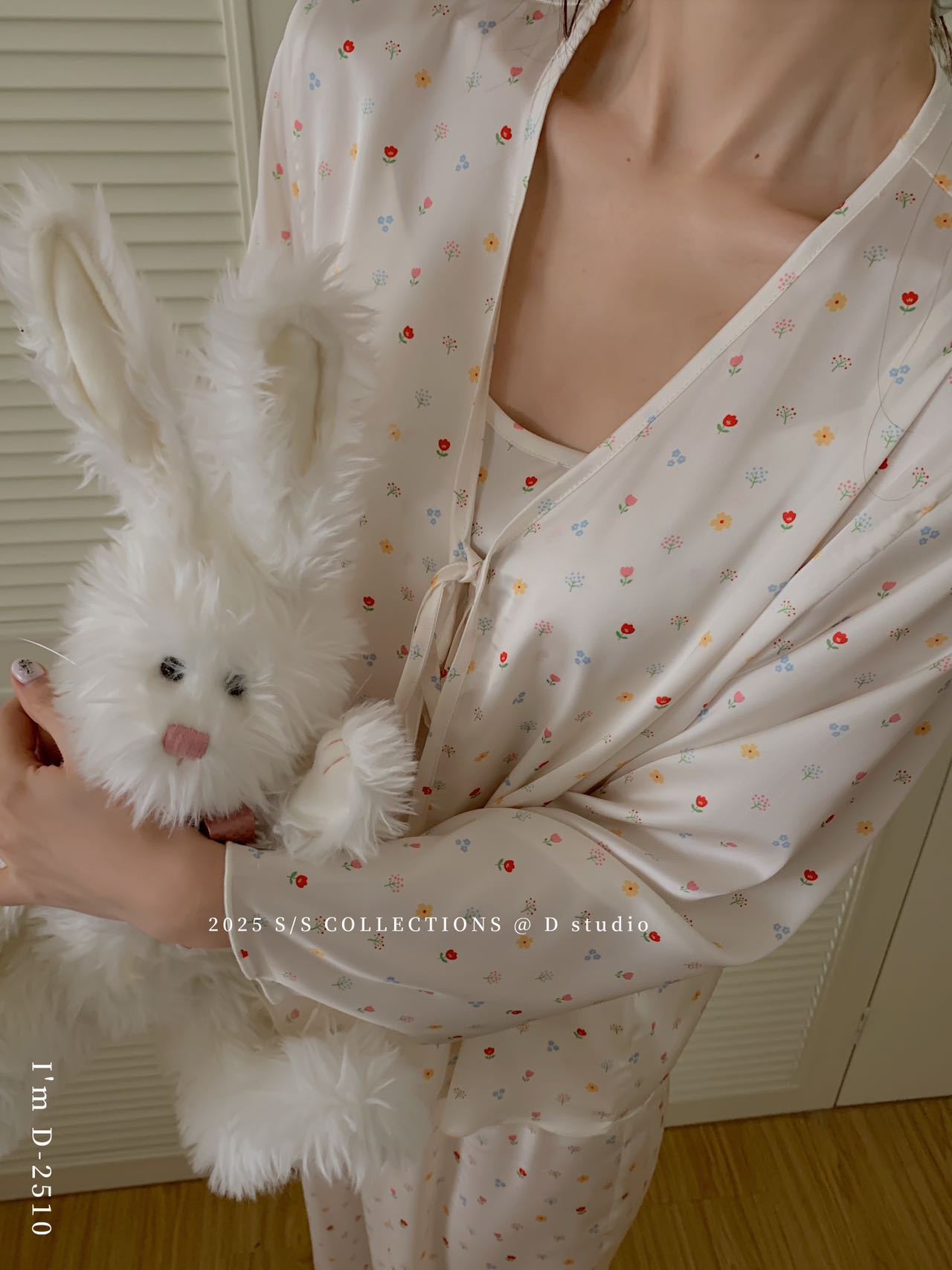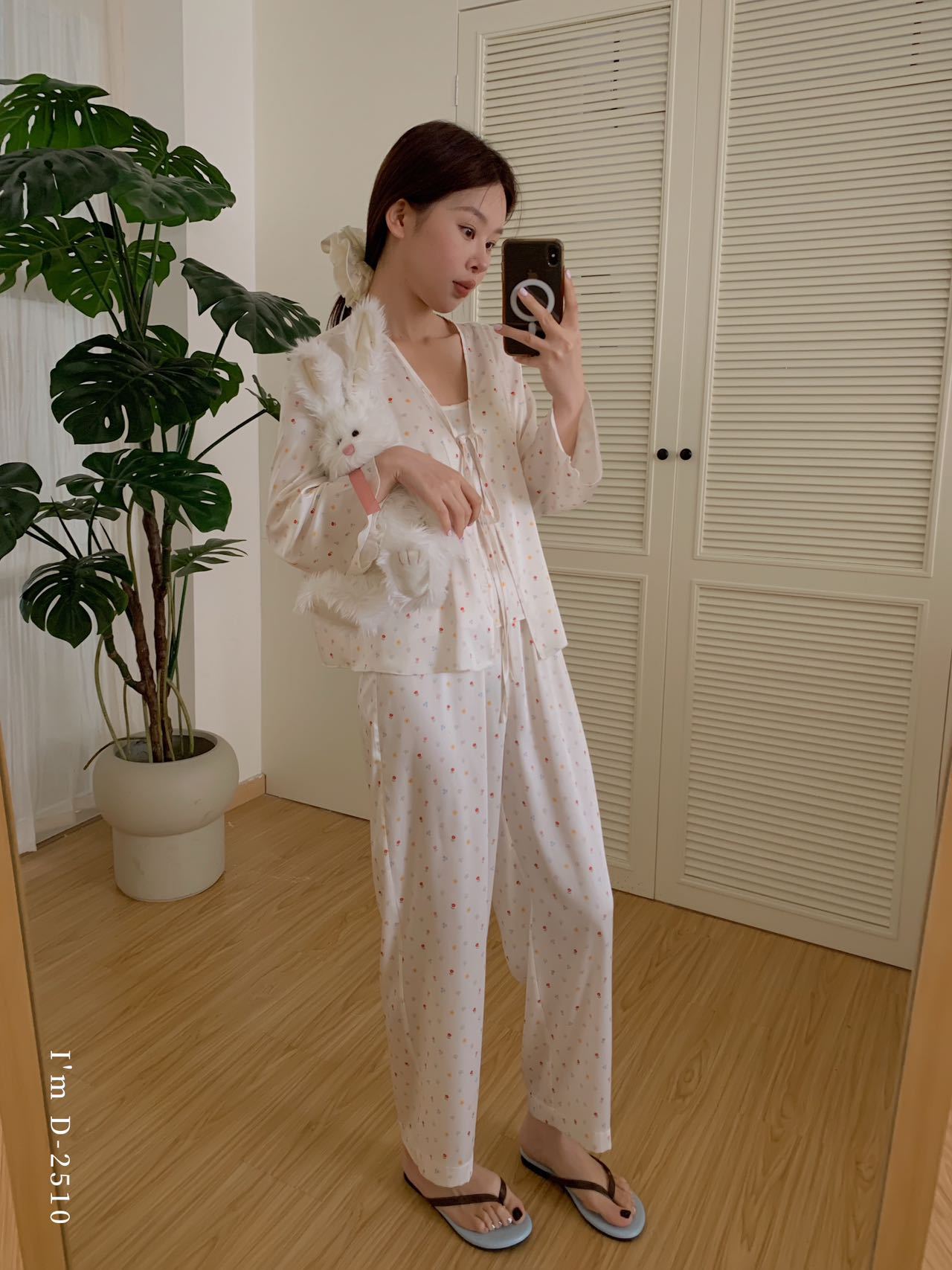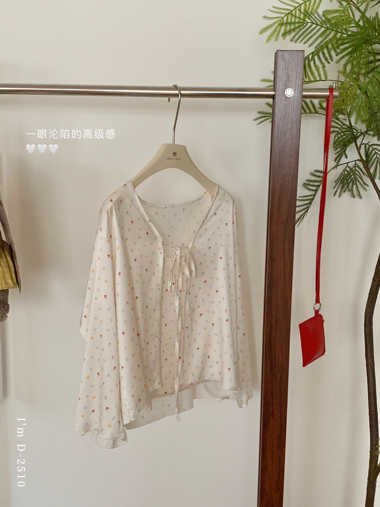 Du Xiaozhai 시원한 산들 모조 실크 3 피스 세트 고급 실크 서스펜더 카디건 바지 홈 의류 여성이 밖에서 입을 수있는