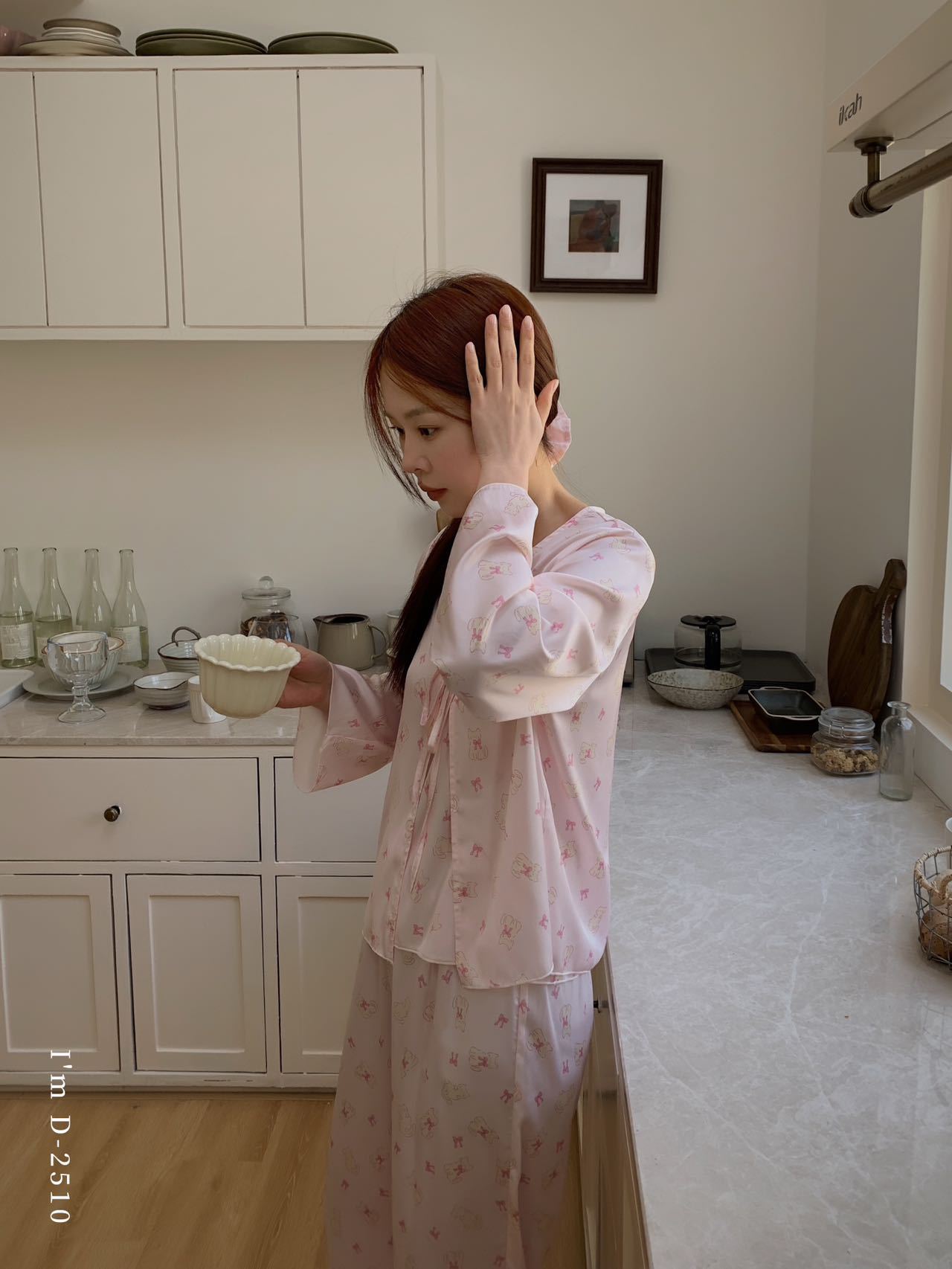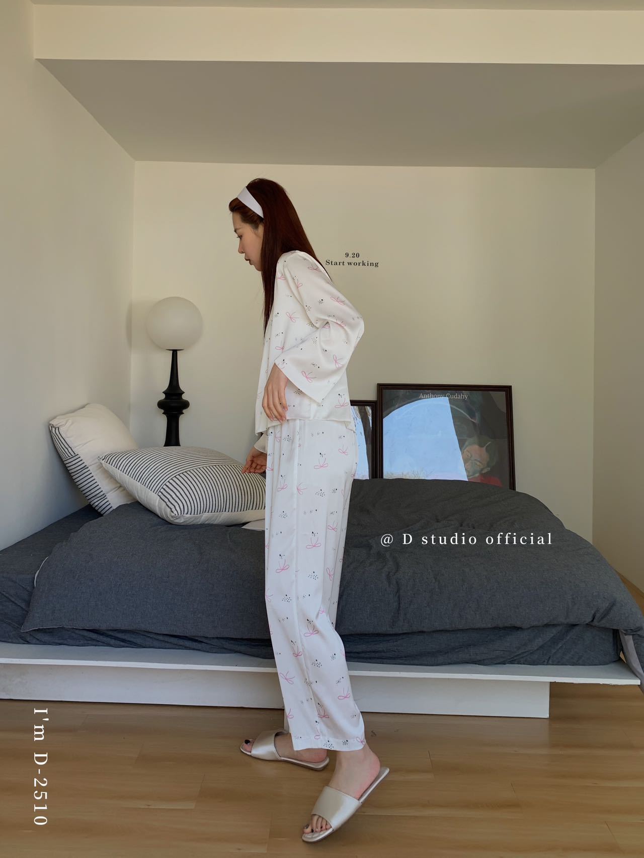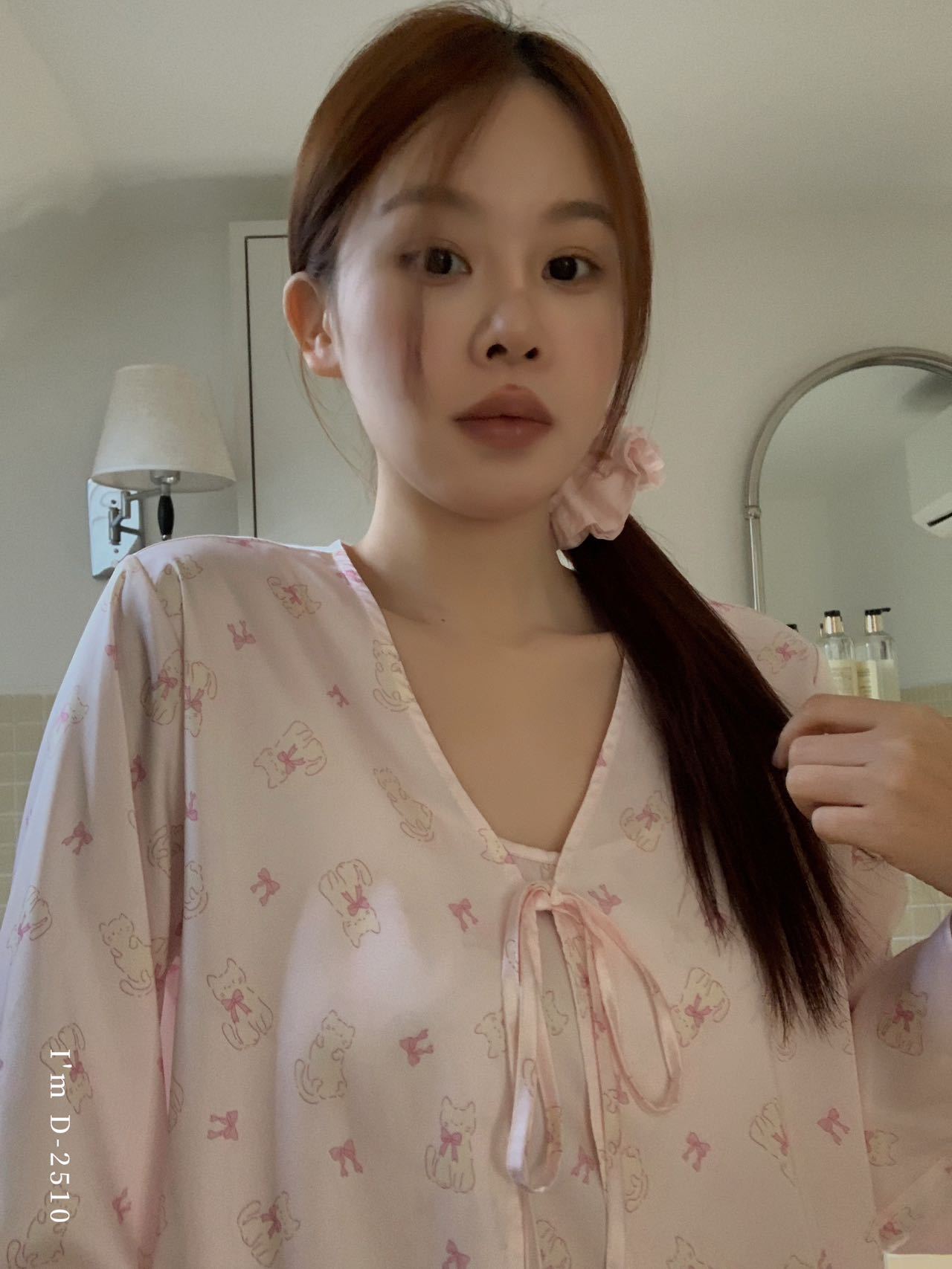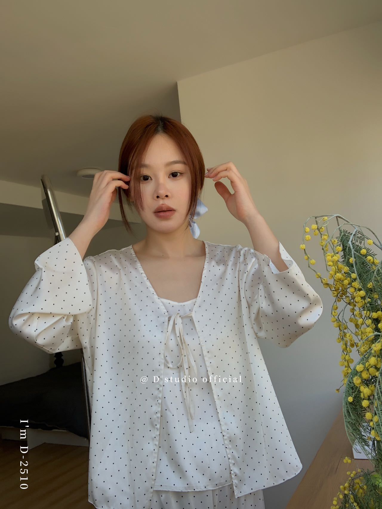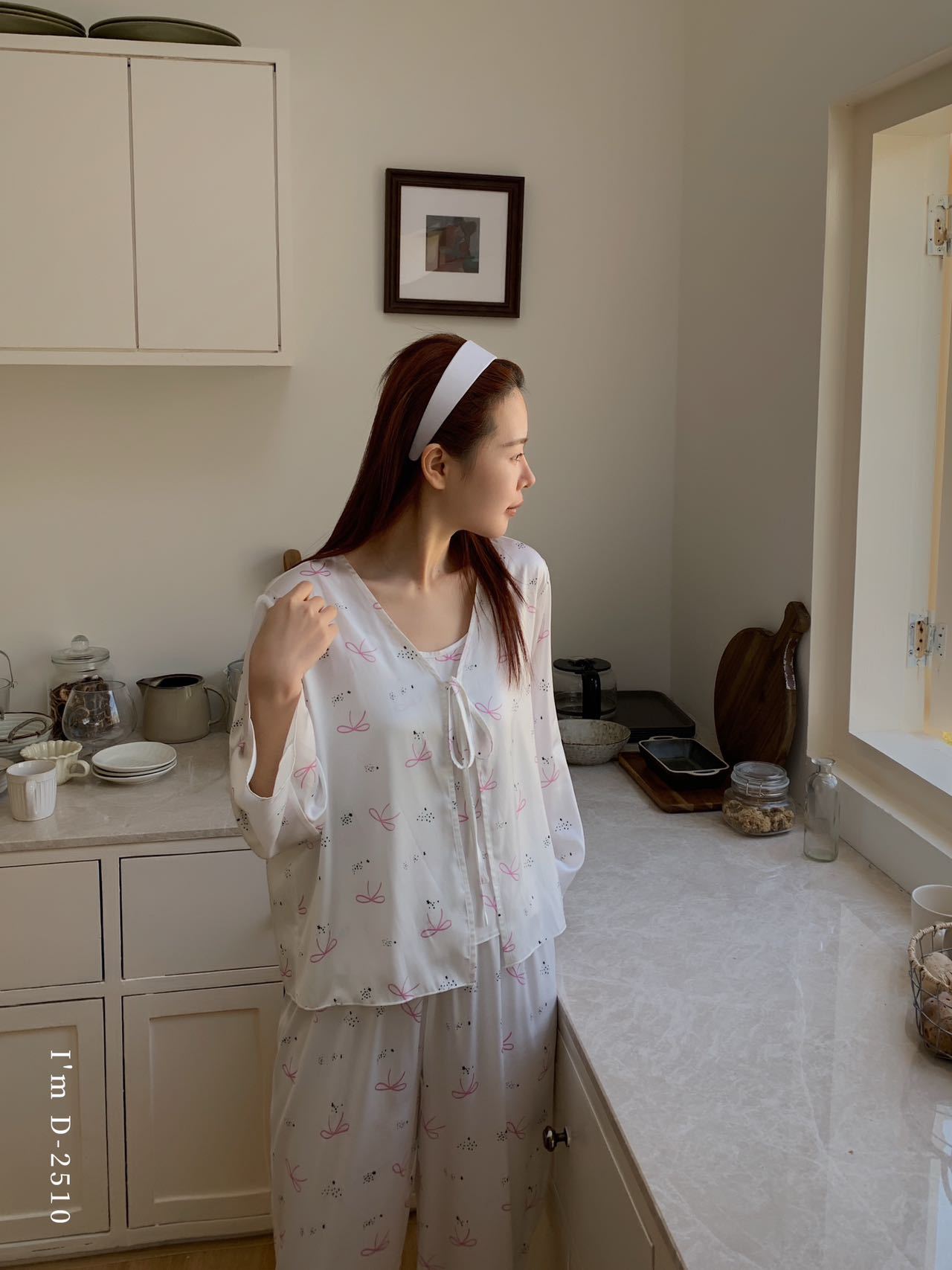 Du Xiaozhai 시원한 산들 모조 실크 3 피스 세트 고급 실크 서스펜더 카디건 바지 홈 의류 여성이 밖에서 입을 수있는