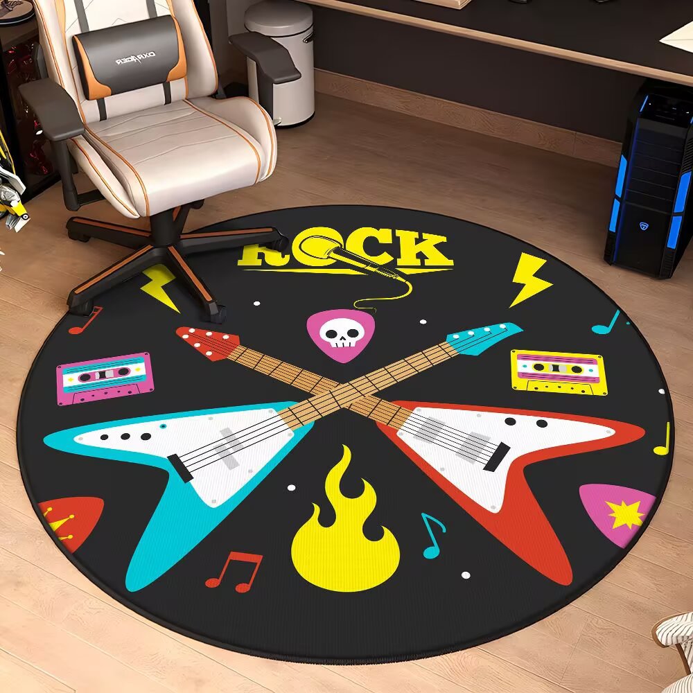 국경 간 전자 스포츠 라운드 카펫 침실 거실 더러운 저항 발 매트 컴퓨터 회전 의자 미끄럼 방지 록 음악 두꺼운 카펫