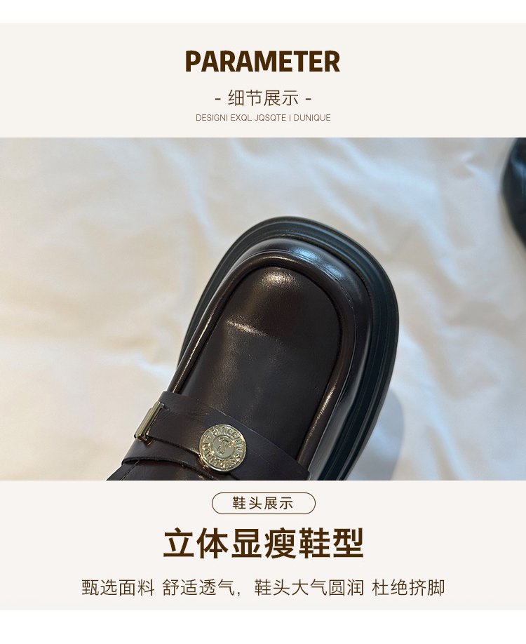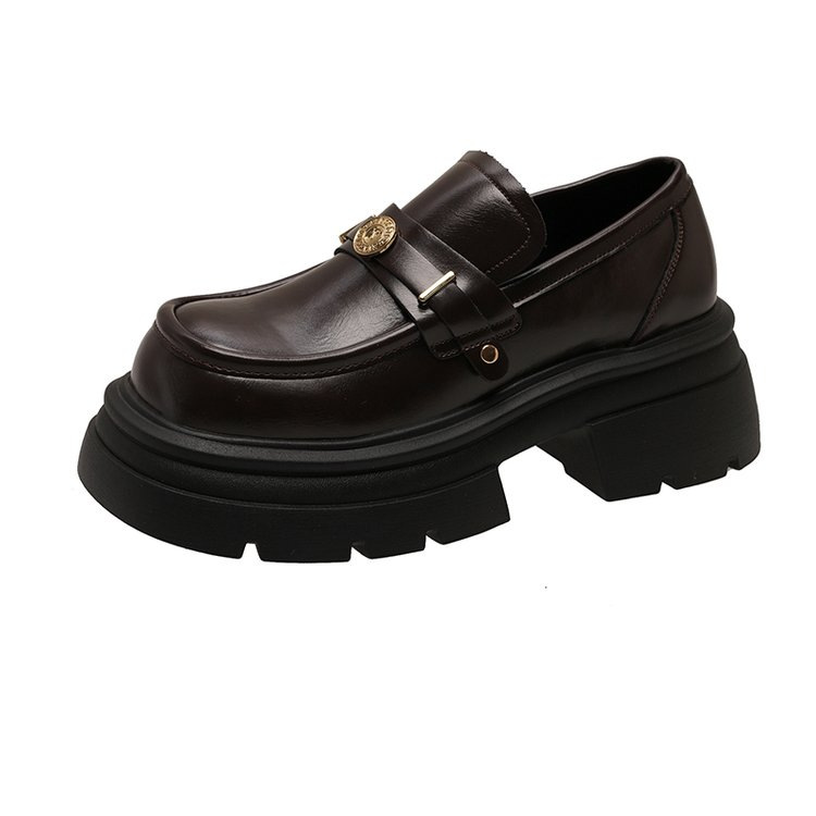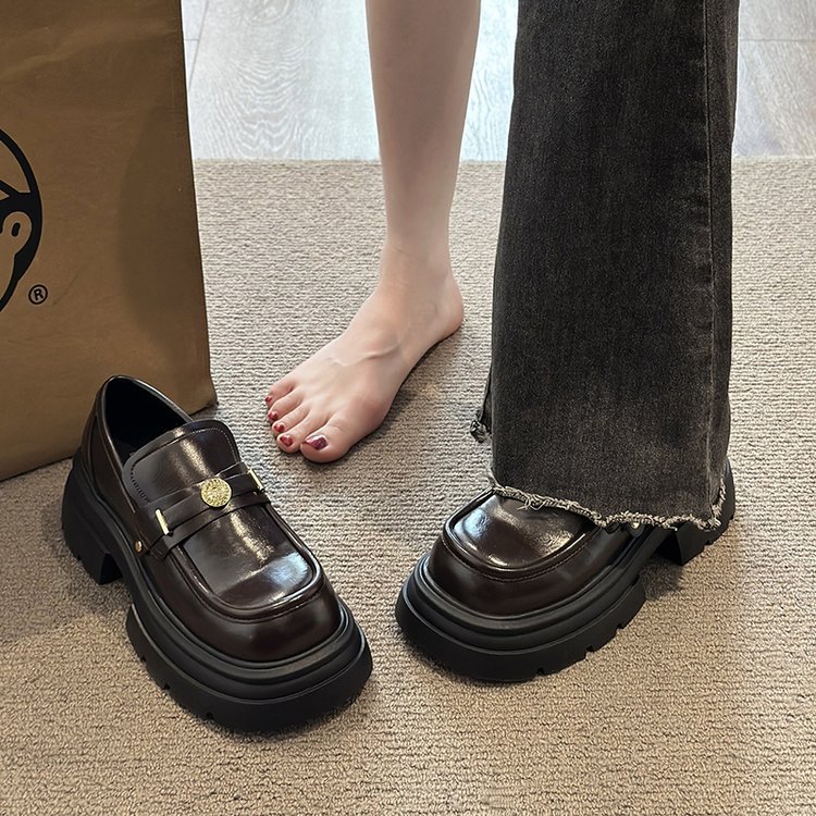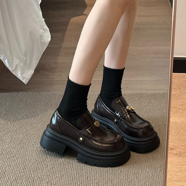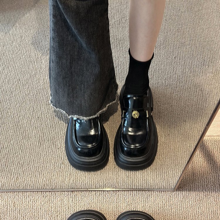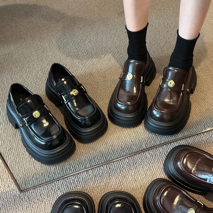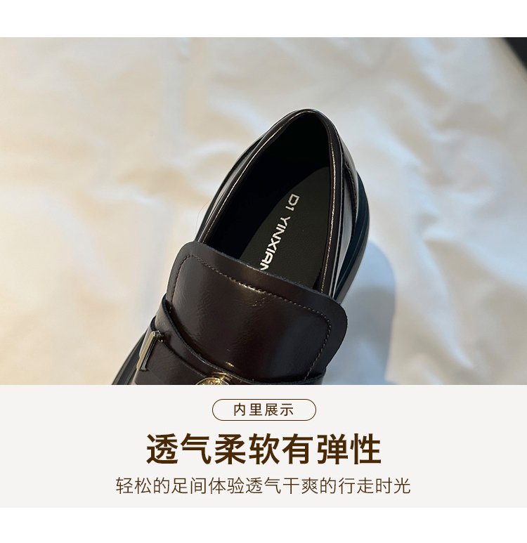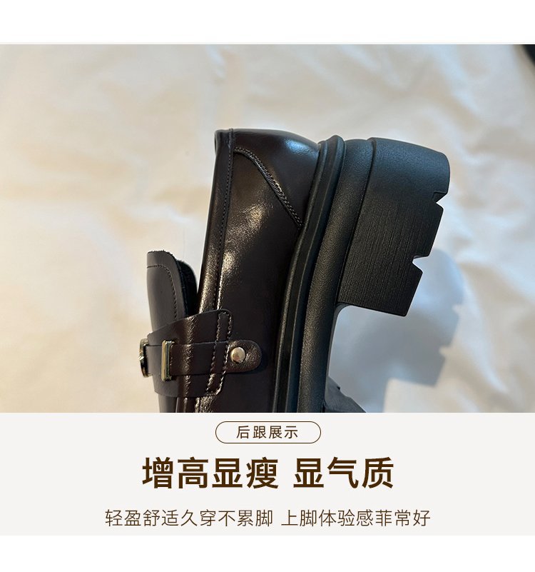 영국 스타일의 작은 가죽 신발 여성의 2025 새로운 싱글 레이어 신발 올매치 슬립 온 여성 신발 작은 높이 높이기 두꺼운 바닥 로퍼