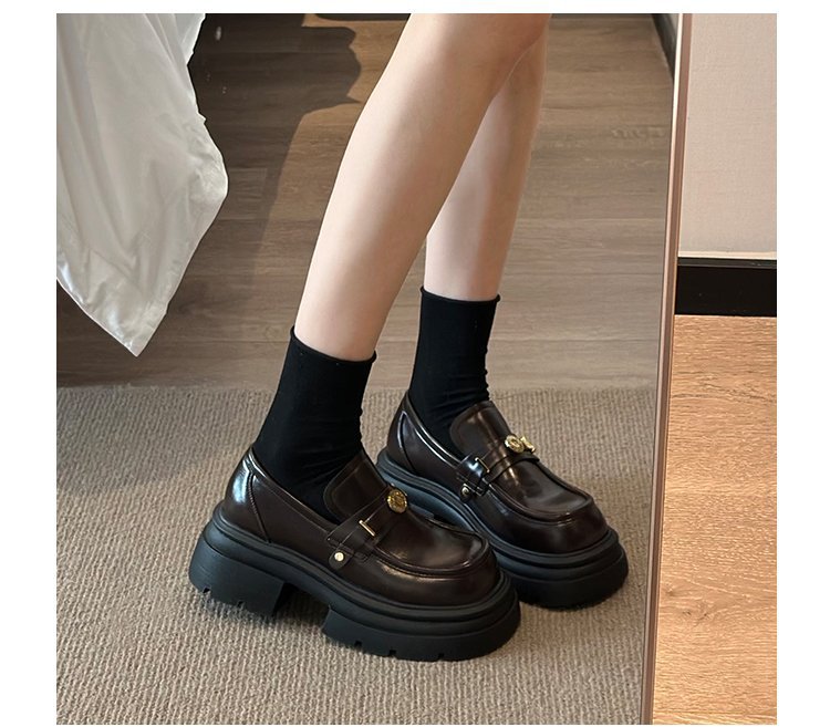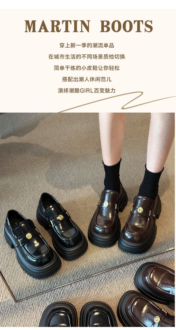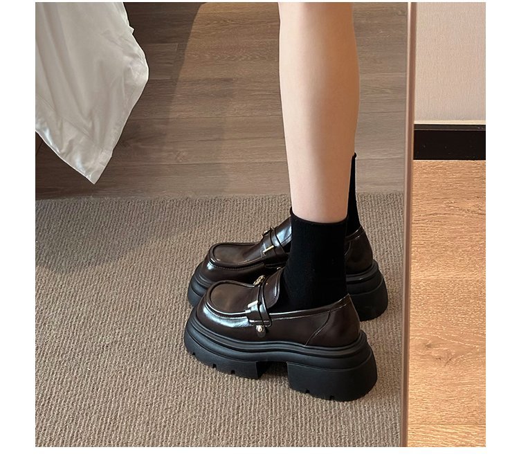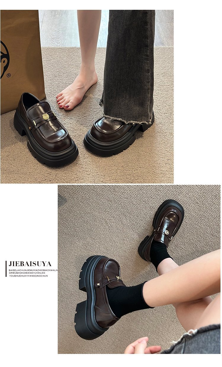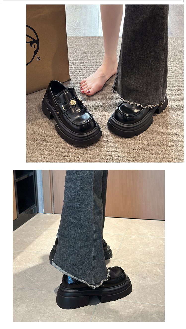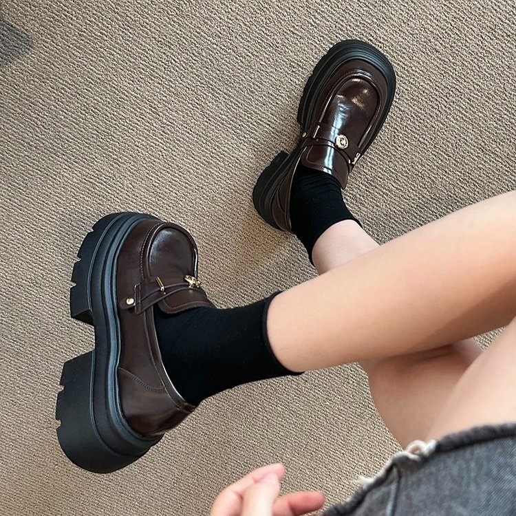 영국 스타일의 작은 가죽 신발 여성의 2025 새로운 싱글 레이어 신발 올매치 슬립 온 여성 신발 작은 높이 높이기 두꺼운 바닥 로퍼