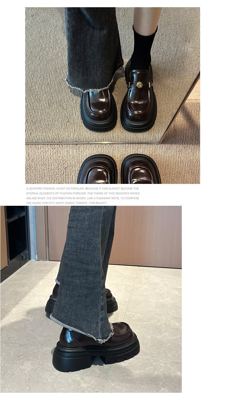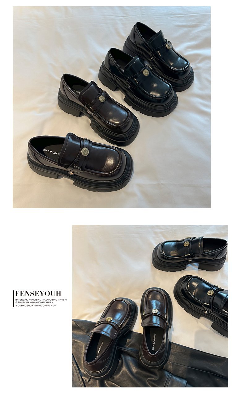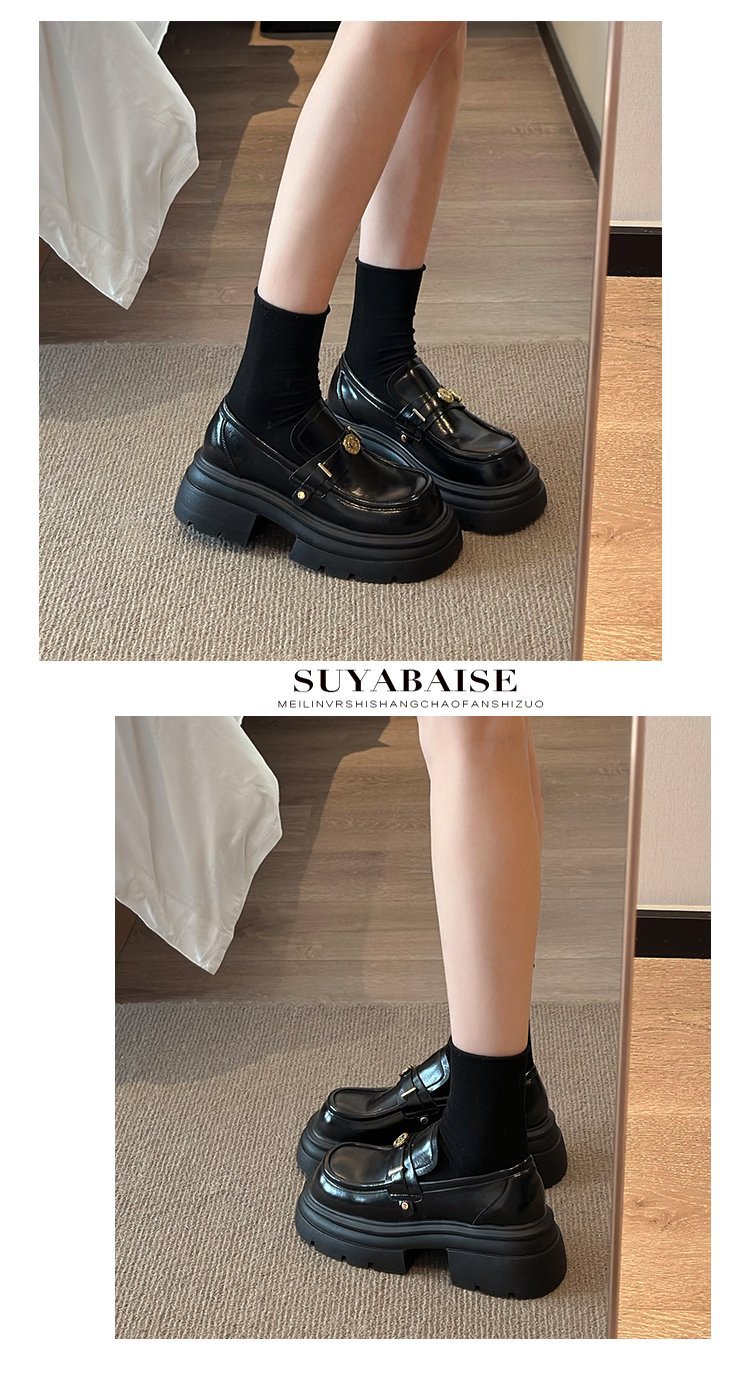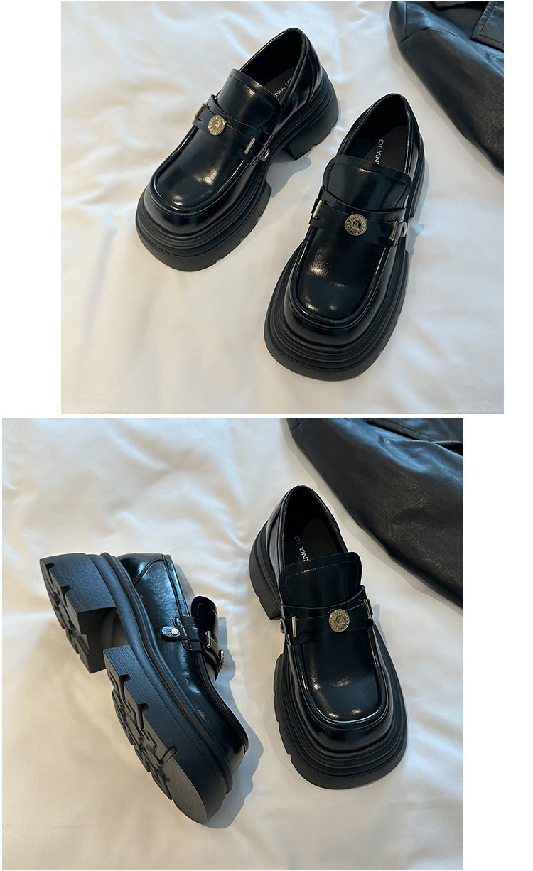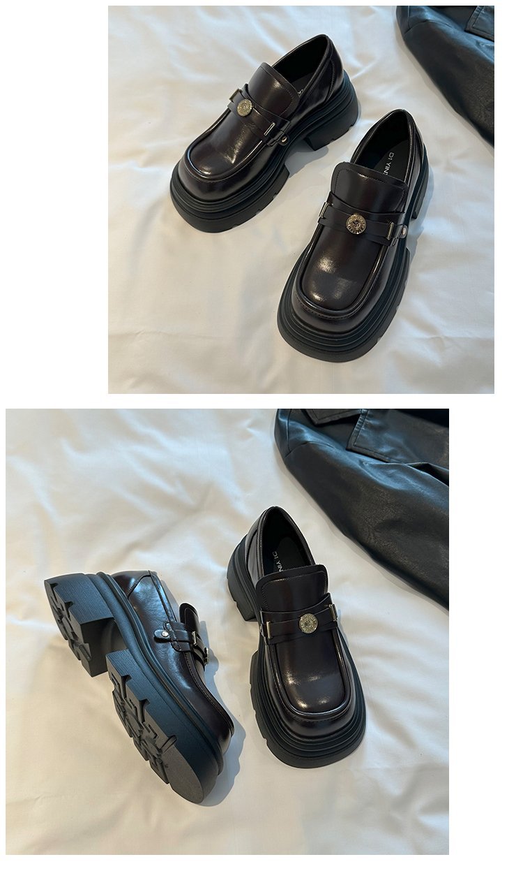 영국 스타일의 작은 가죽 신발 여성의 2025 새로운 싱글 레이어 신발 올매치 슬립 온 여성 신발 작은 높이 높이기 두꺼운 바닥 로퍼