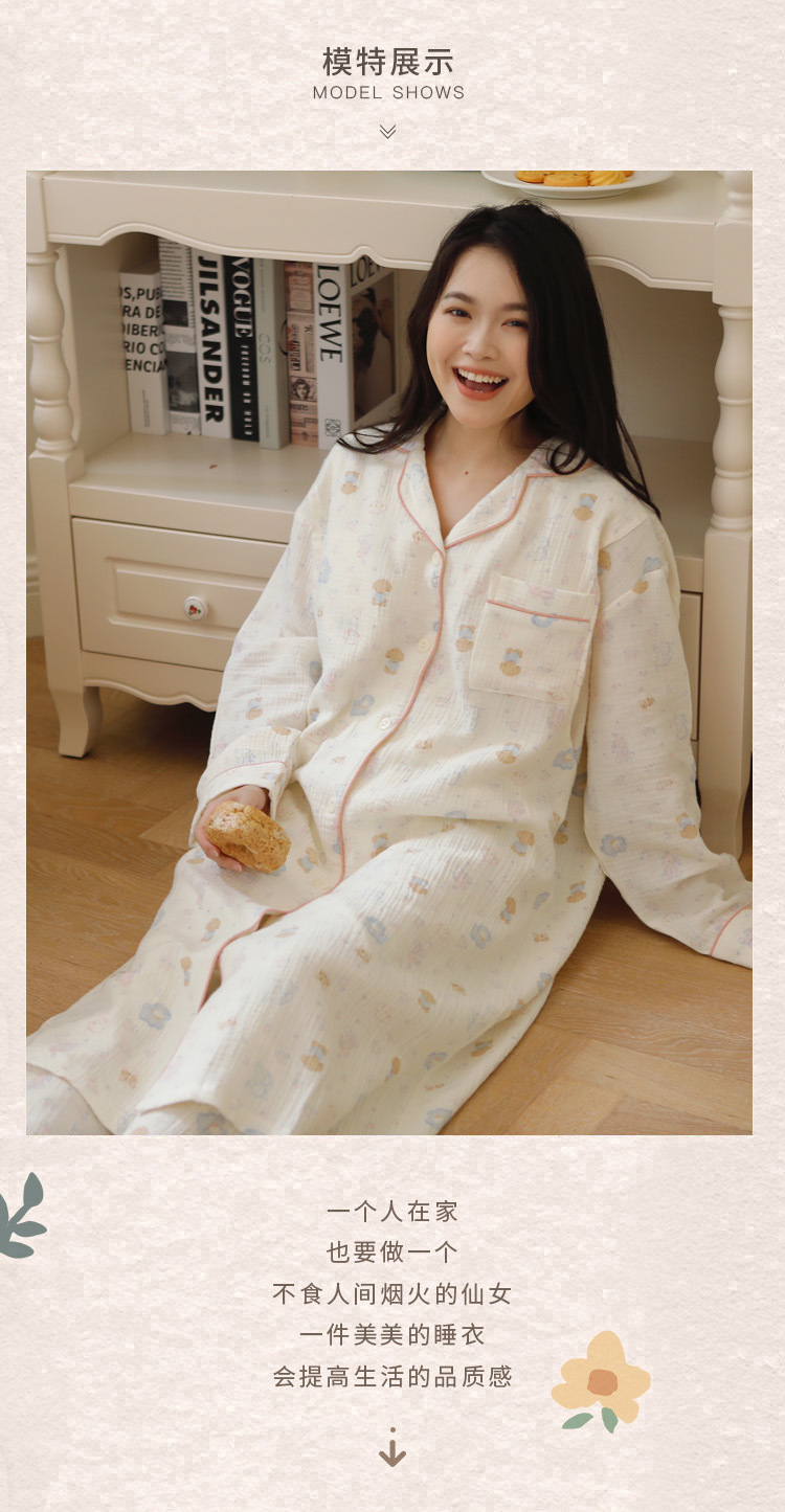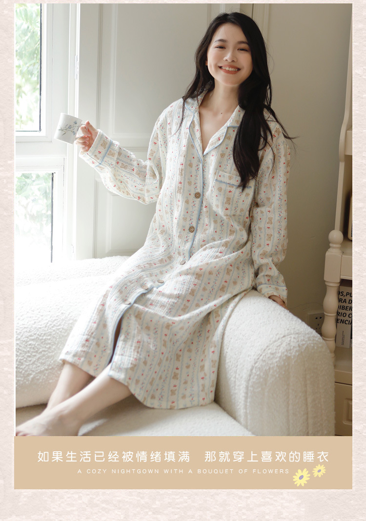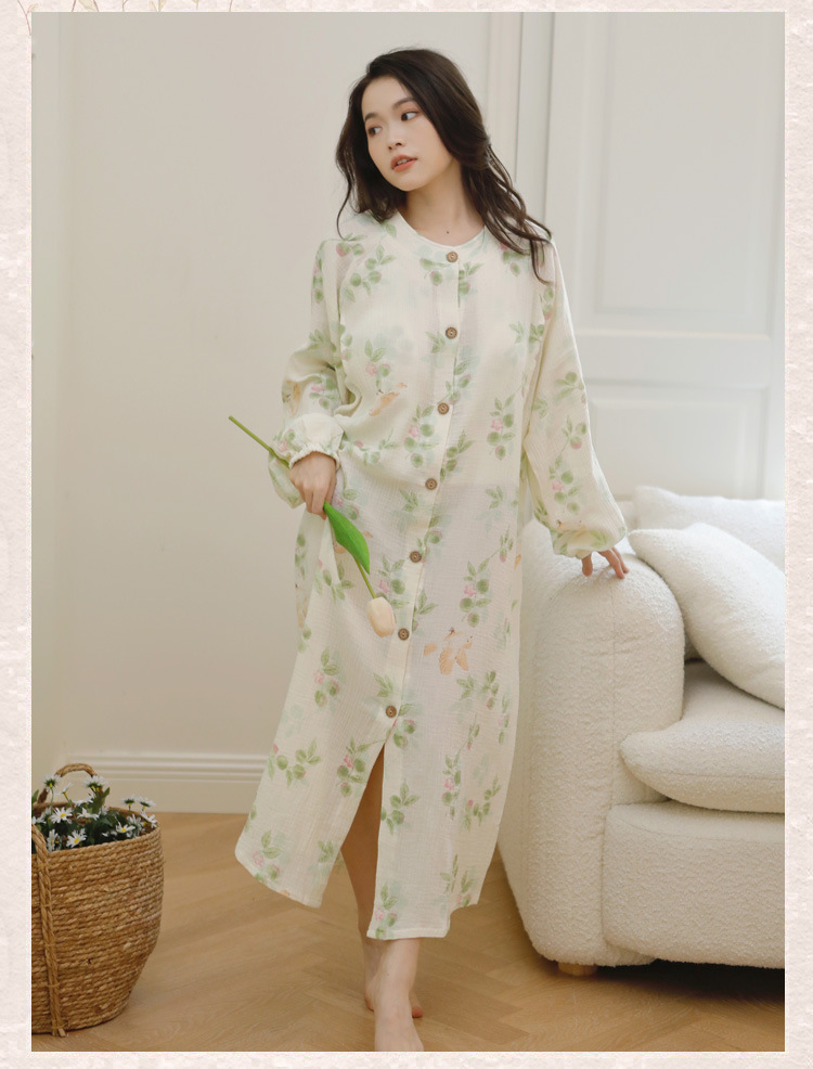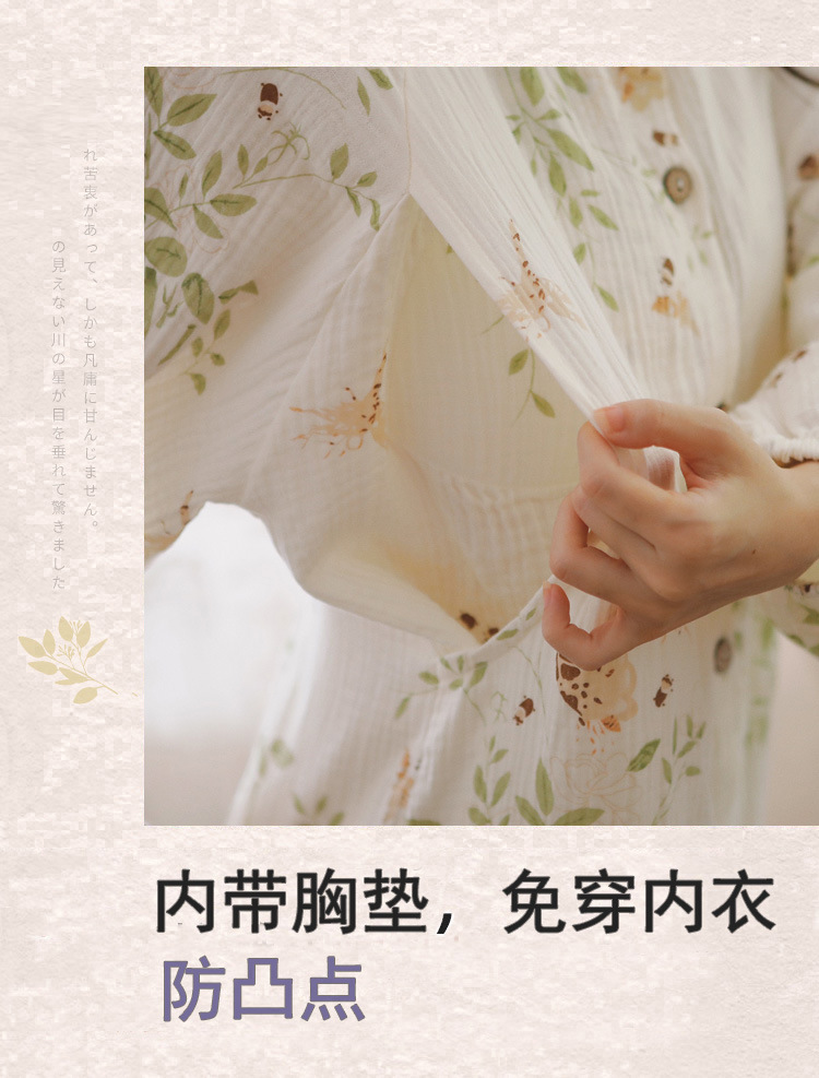 순수 코튼 거즈 문 의류 가슴 패드를 가리키며 스커트 봄과 가을 간호 나이트 드레스 임산부 파자마 여름 순면 땀 흡수