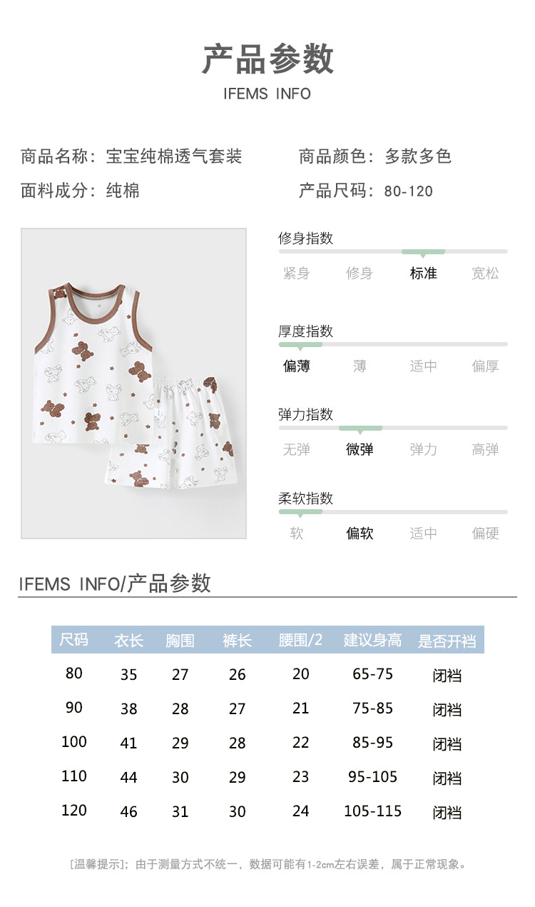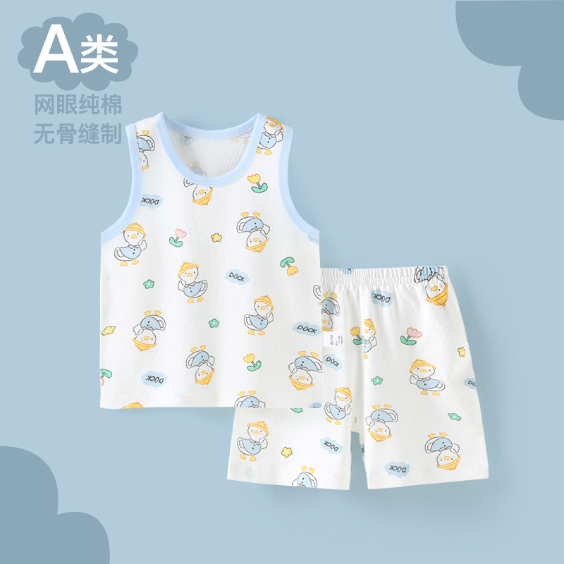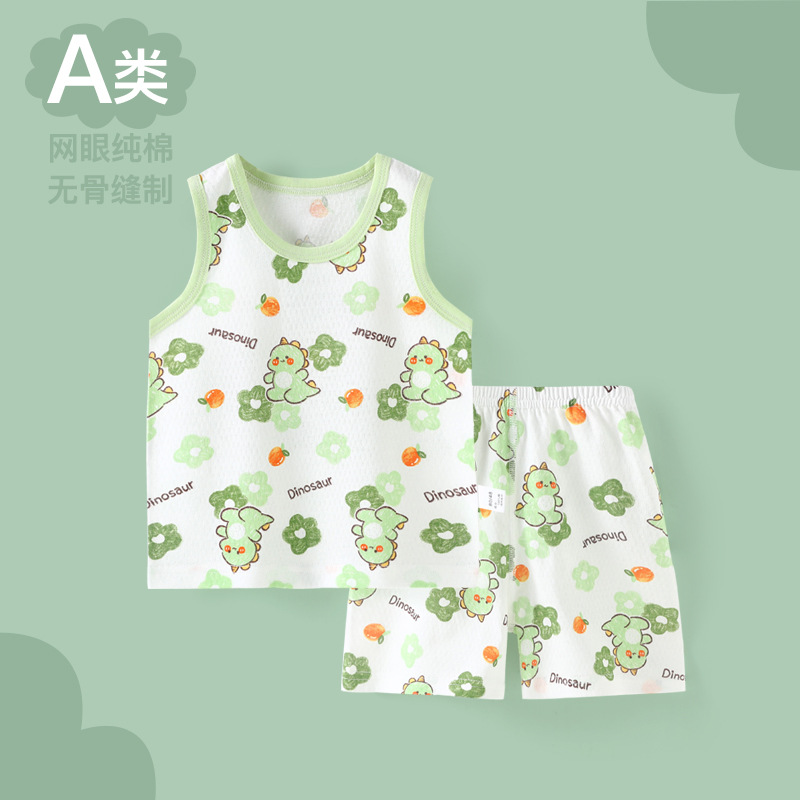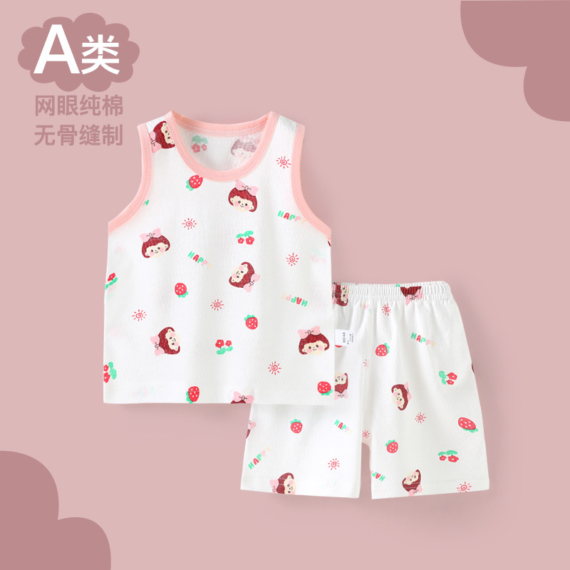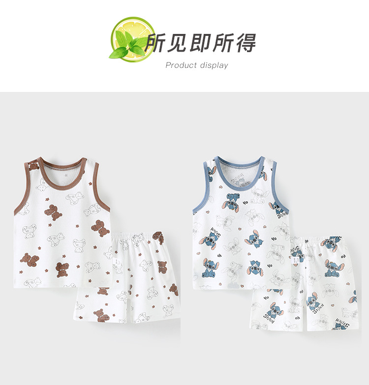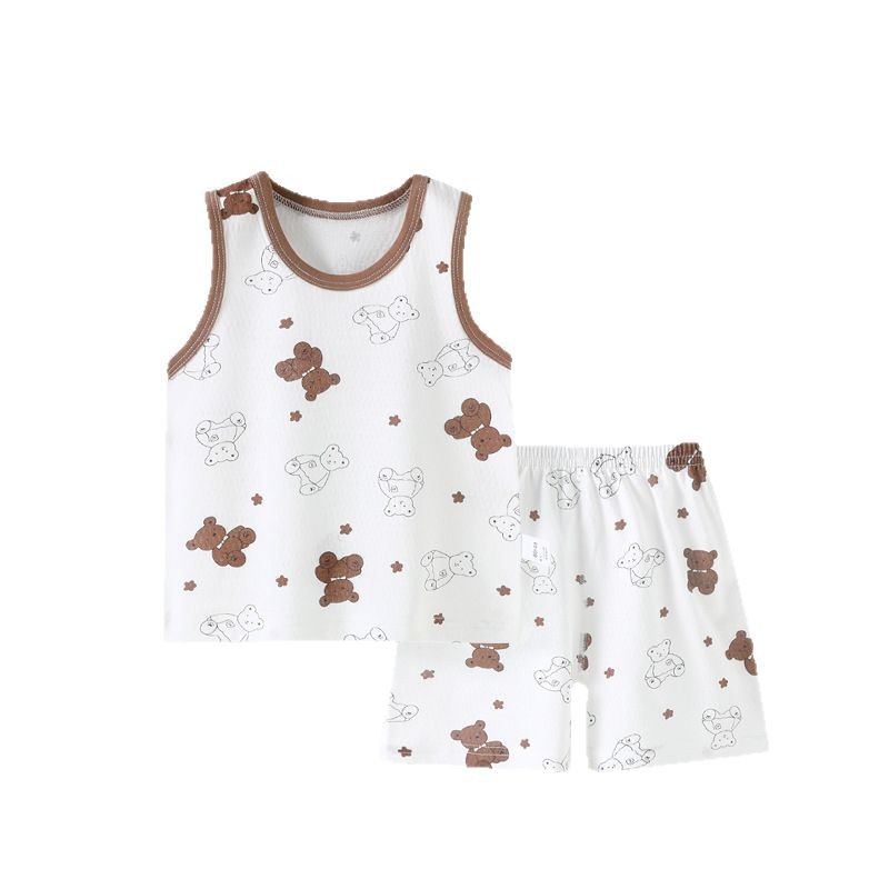 아기 잠옷 여름 남자와 아기를위한 얇은 속옷 세트 순면 뼈없는 어린이 조끼 반바지 여자를위한 옷을 쪼개다