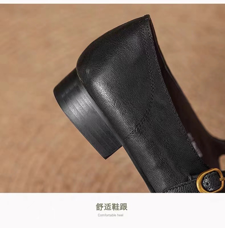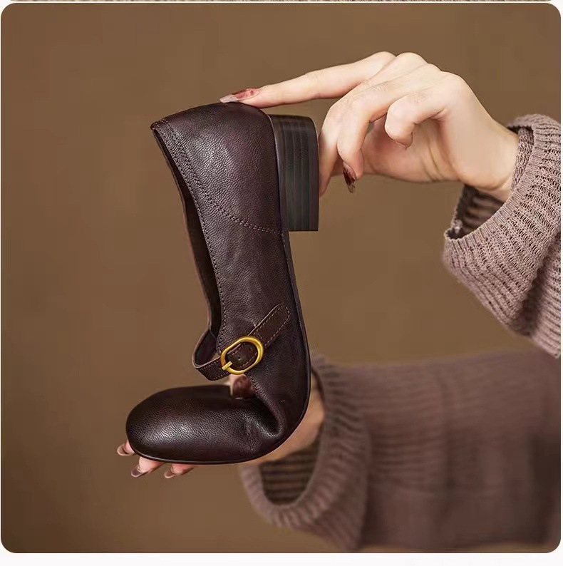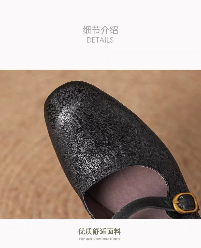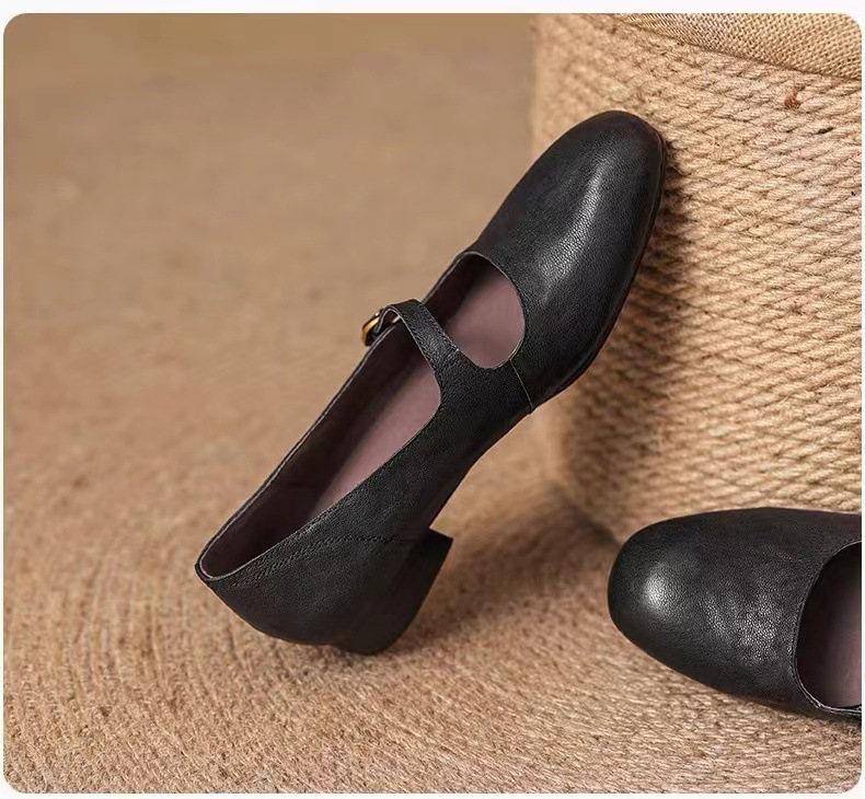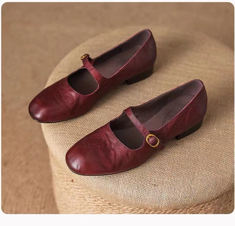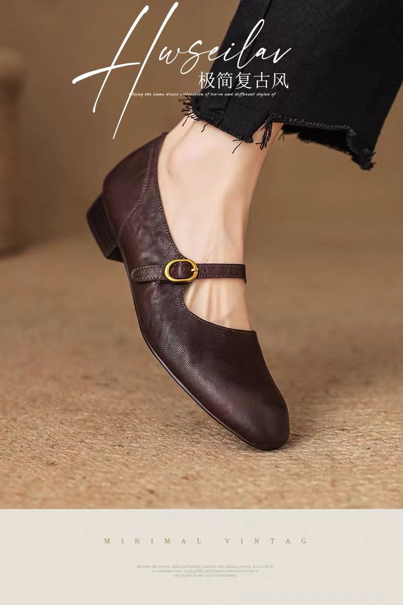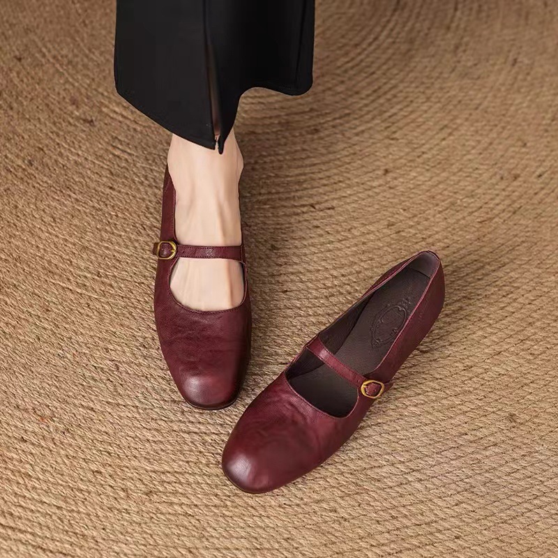 양가죽 버전 ~ 얕은 입 정품 가죽 올매치 플랫 메리 제인 신발 여성용 복고풍 간단한 저발 신발