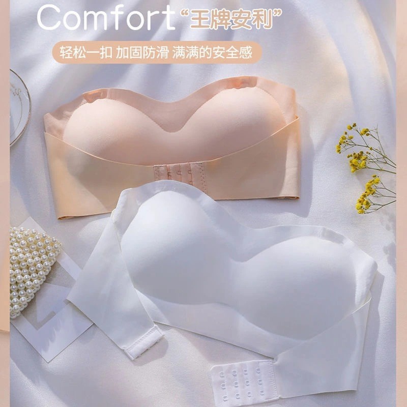 스트랩리스 플러스 사이즈 프론트 버클 스트랩리스 속옷 여성의 미끄럼 방지 푸시 업 작은 브래지어 안티 처짐 보이지 않는 백 브라 여름