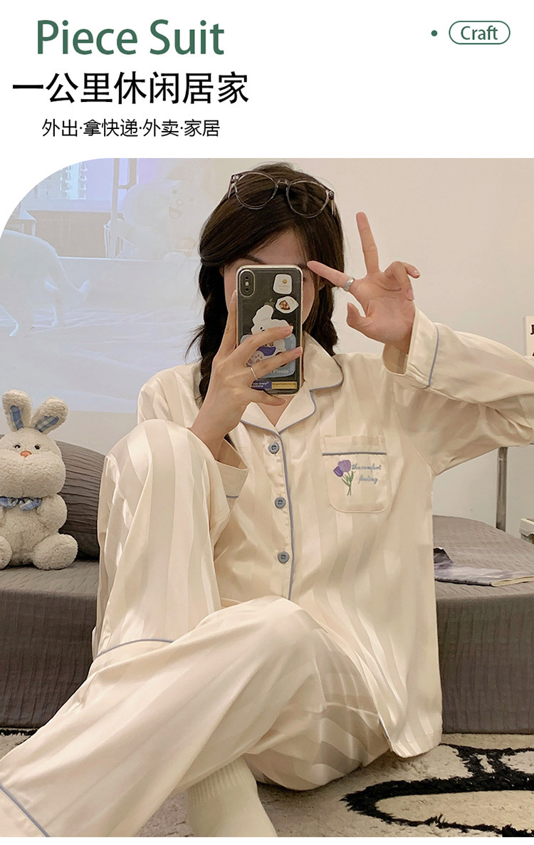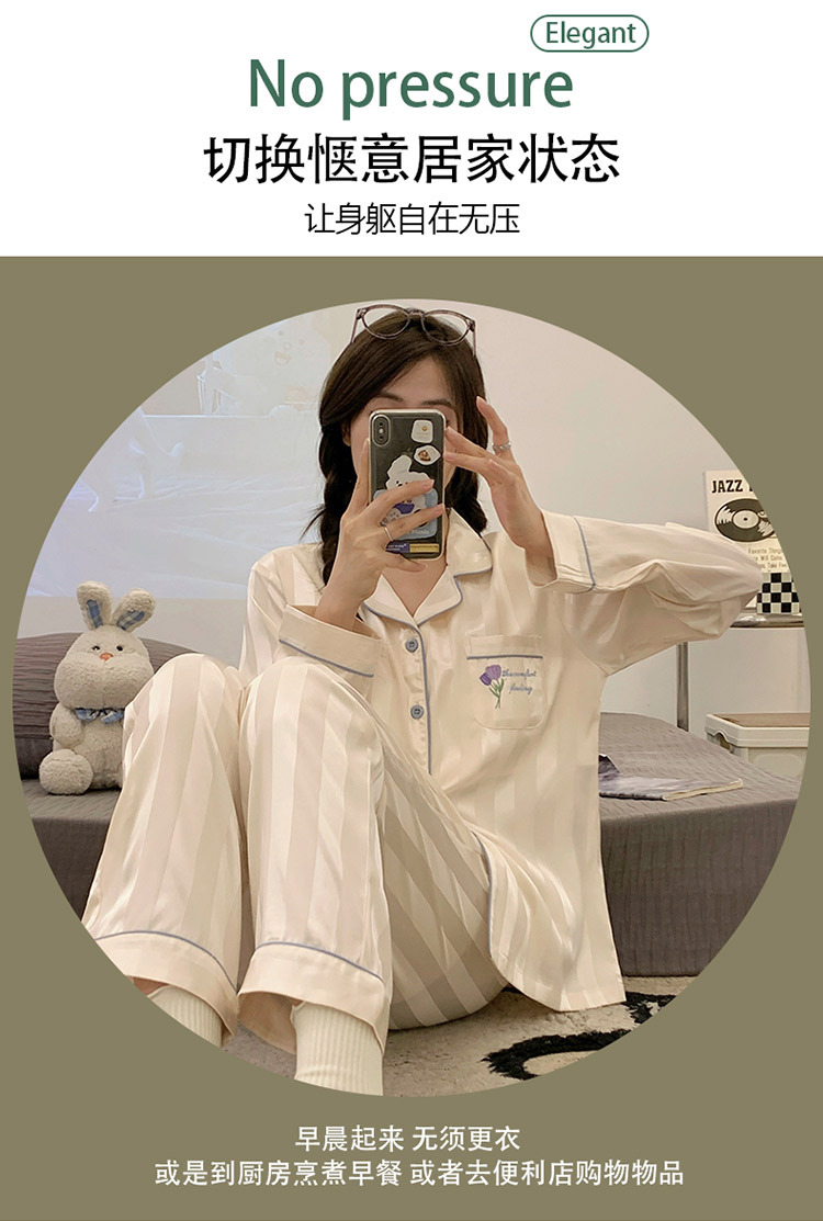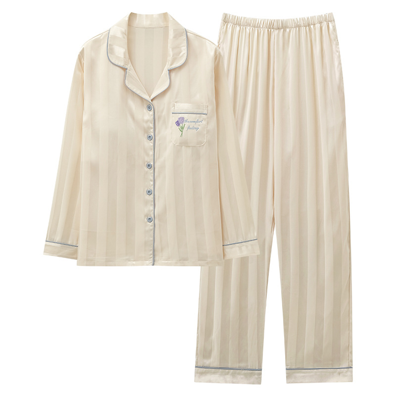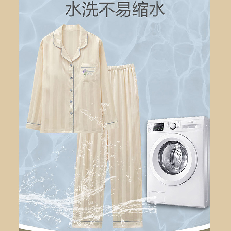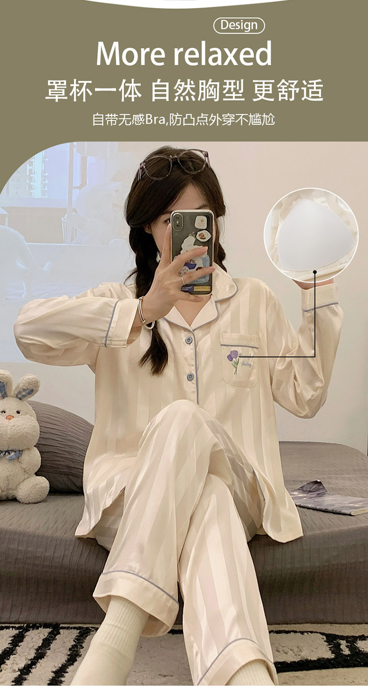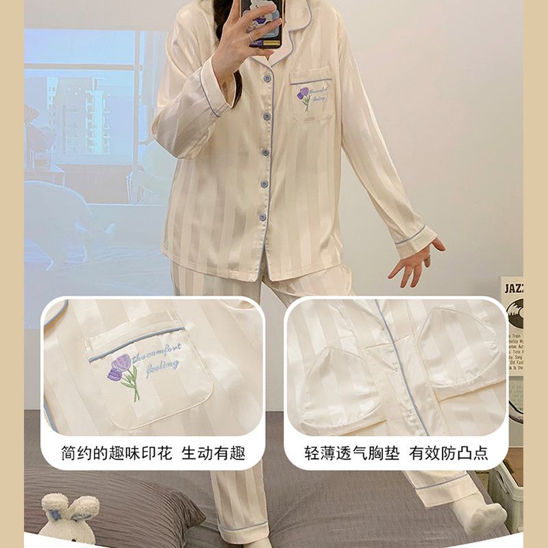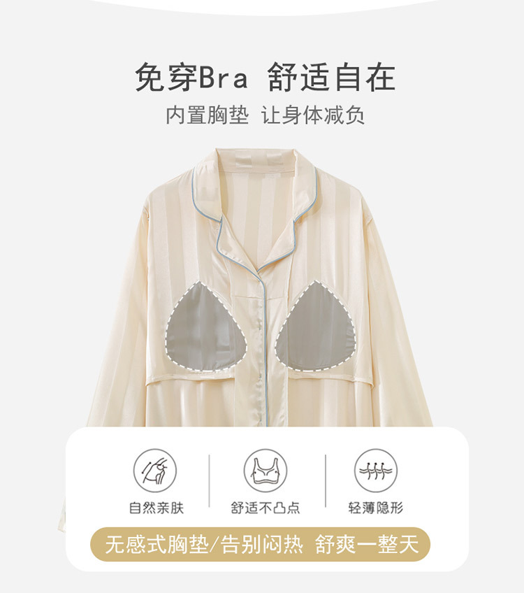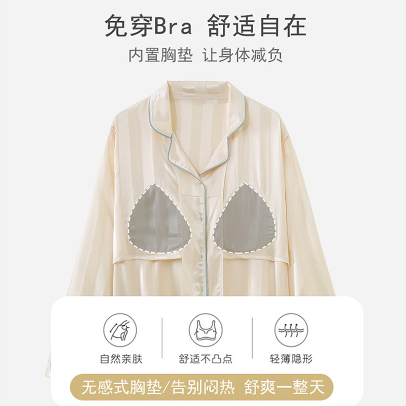 얼음과 눈 실크 파자마 여성의 봄과 가을 긴 소매 플러스 사이즈 2025 바깥 쪽 실크 입고 가슴 패드 홈 의류 세트