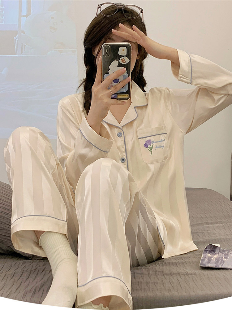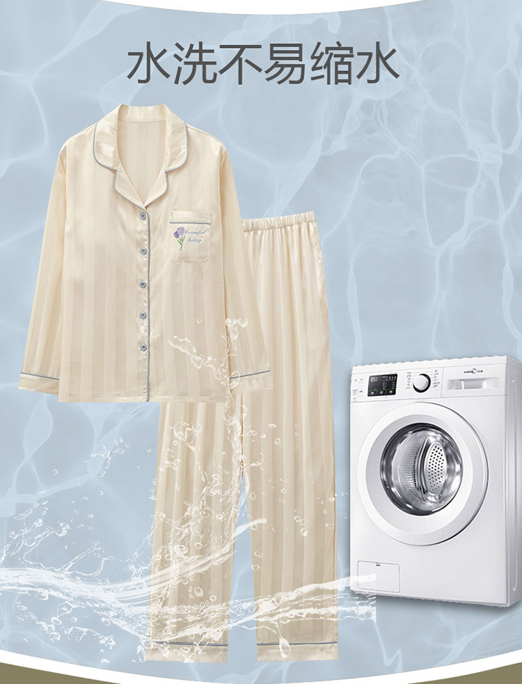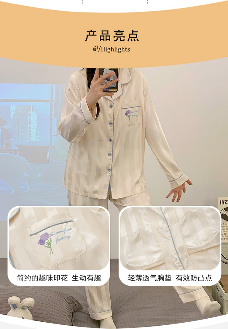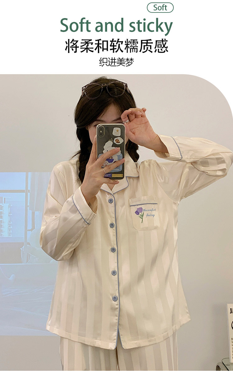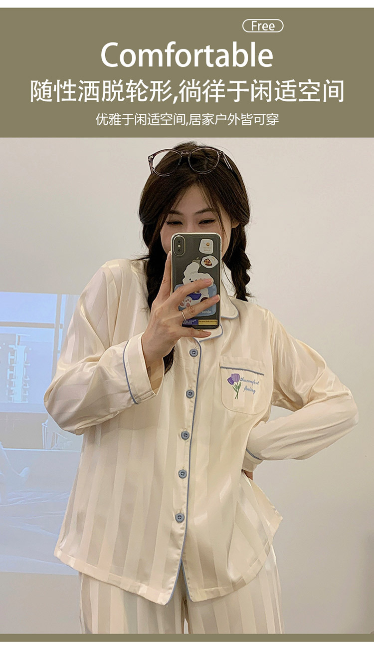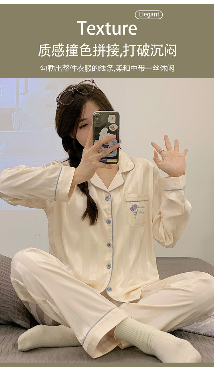얼음과 눈 실크 파자마 여성의 봄과 가을 긴 소매 플러스 사이즈 2025 바깥 쪽 실크 입고 가슴 패드 홈 의류 세트