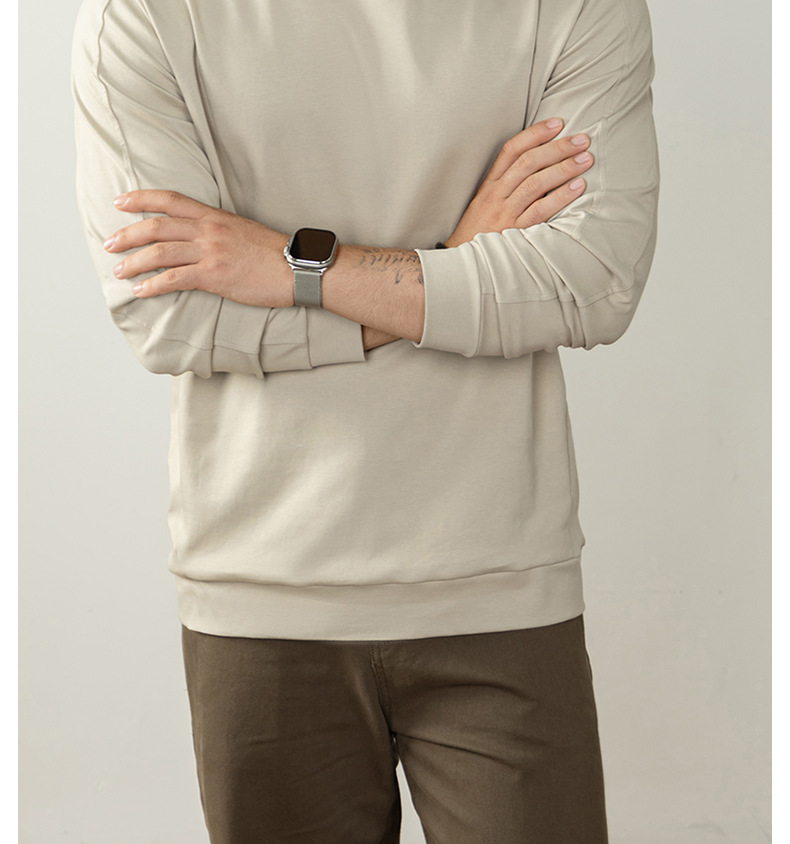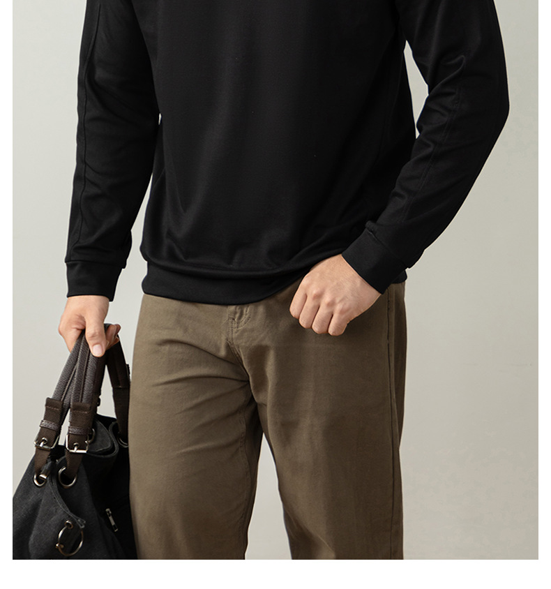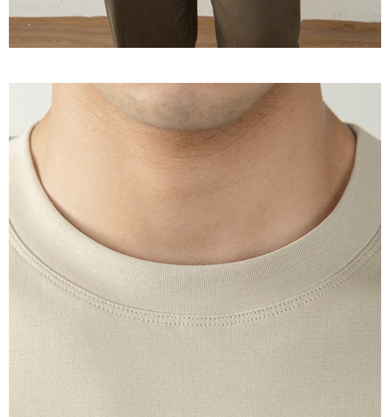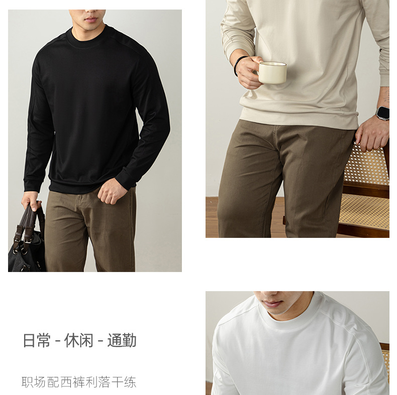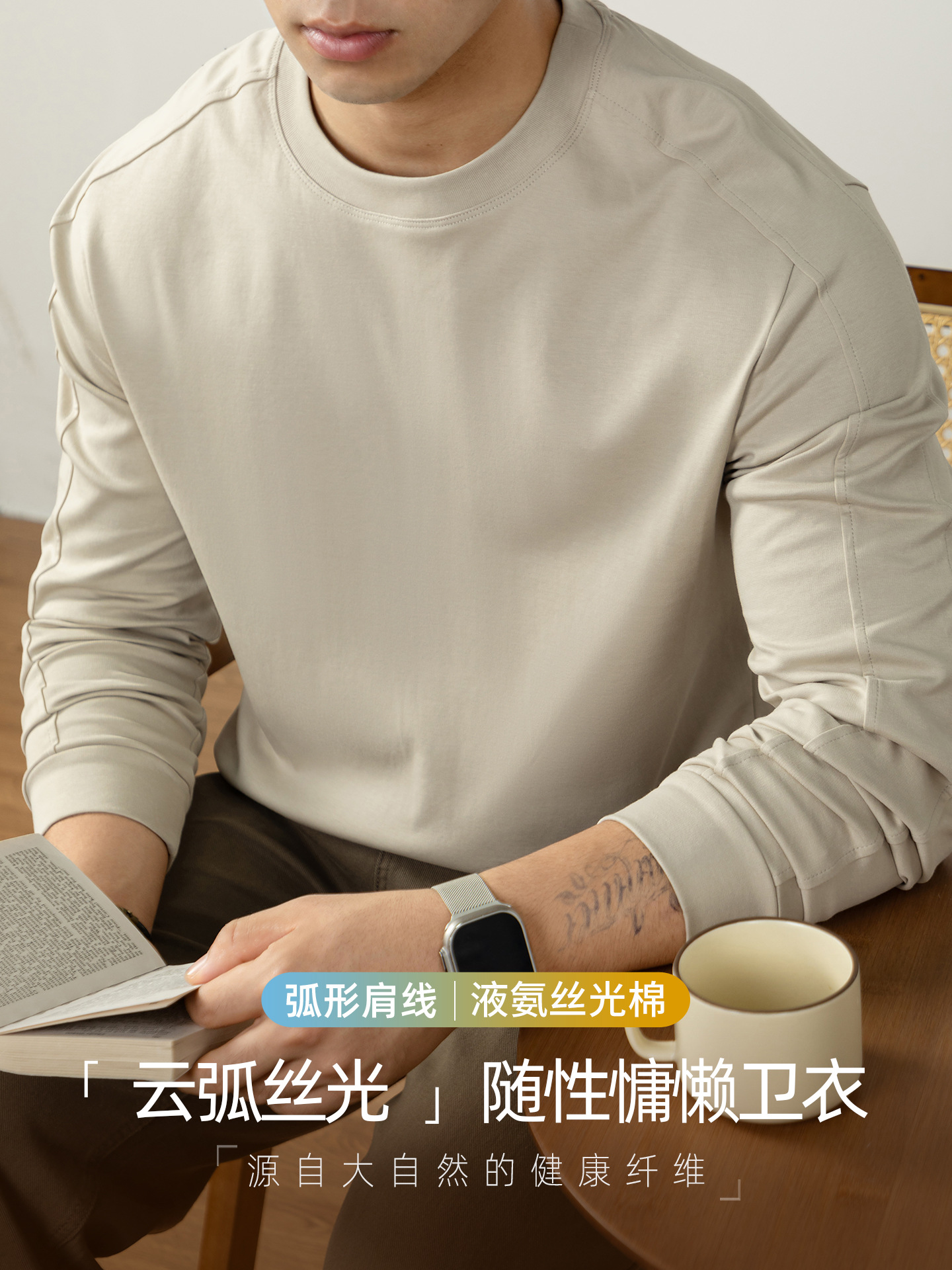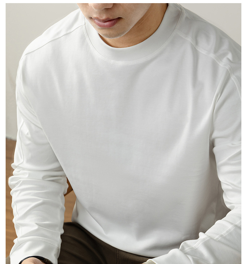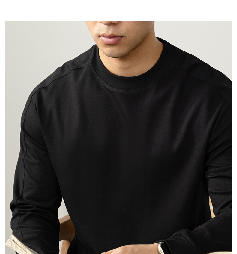 피부 친화적이고 항균 효과가 있는! 270G 액체 암모니아 처리된 면 긴팔 스웨트셔츠 남성용 가을 겨울 라운드넥 어깨선 배색 고급스러운 느낌