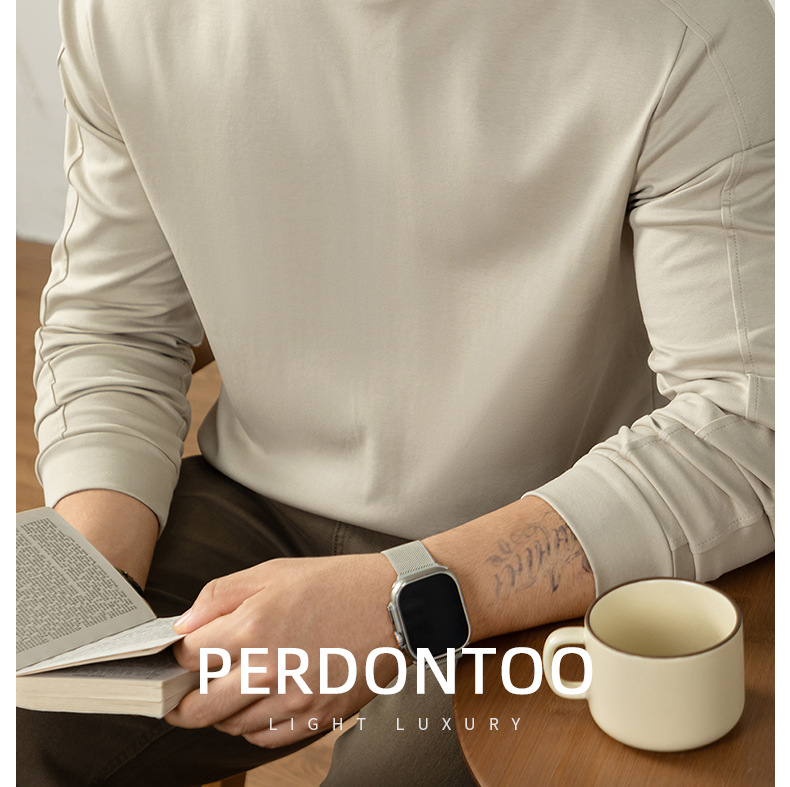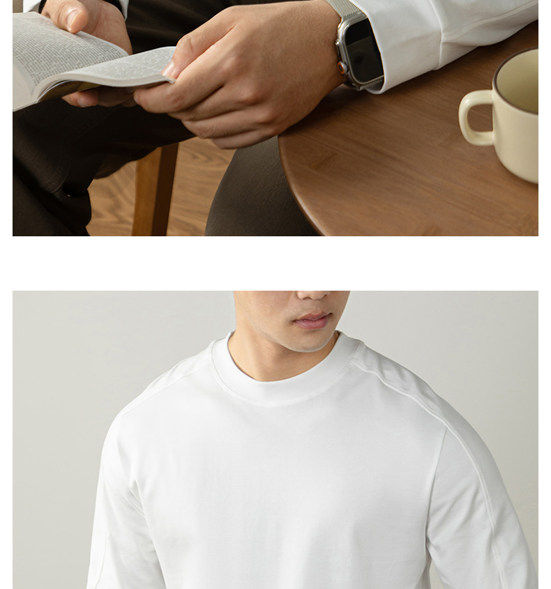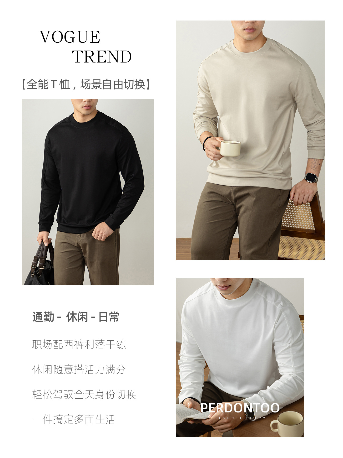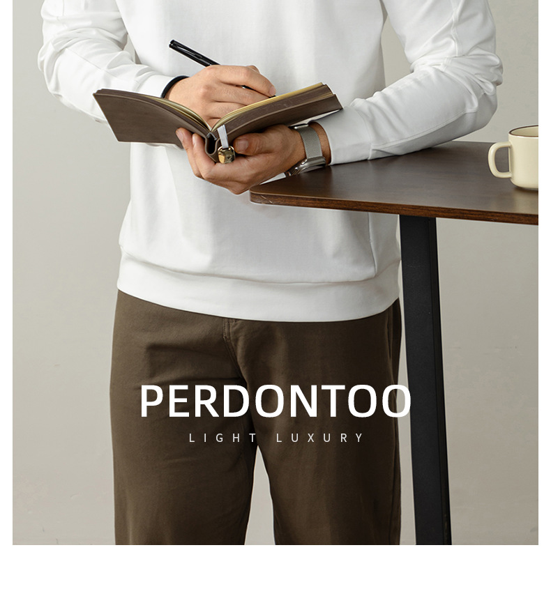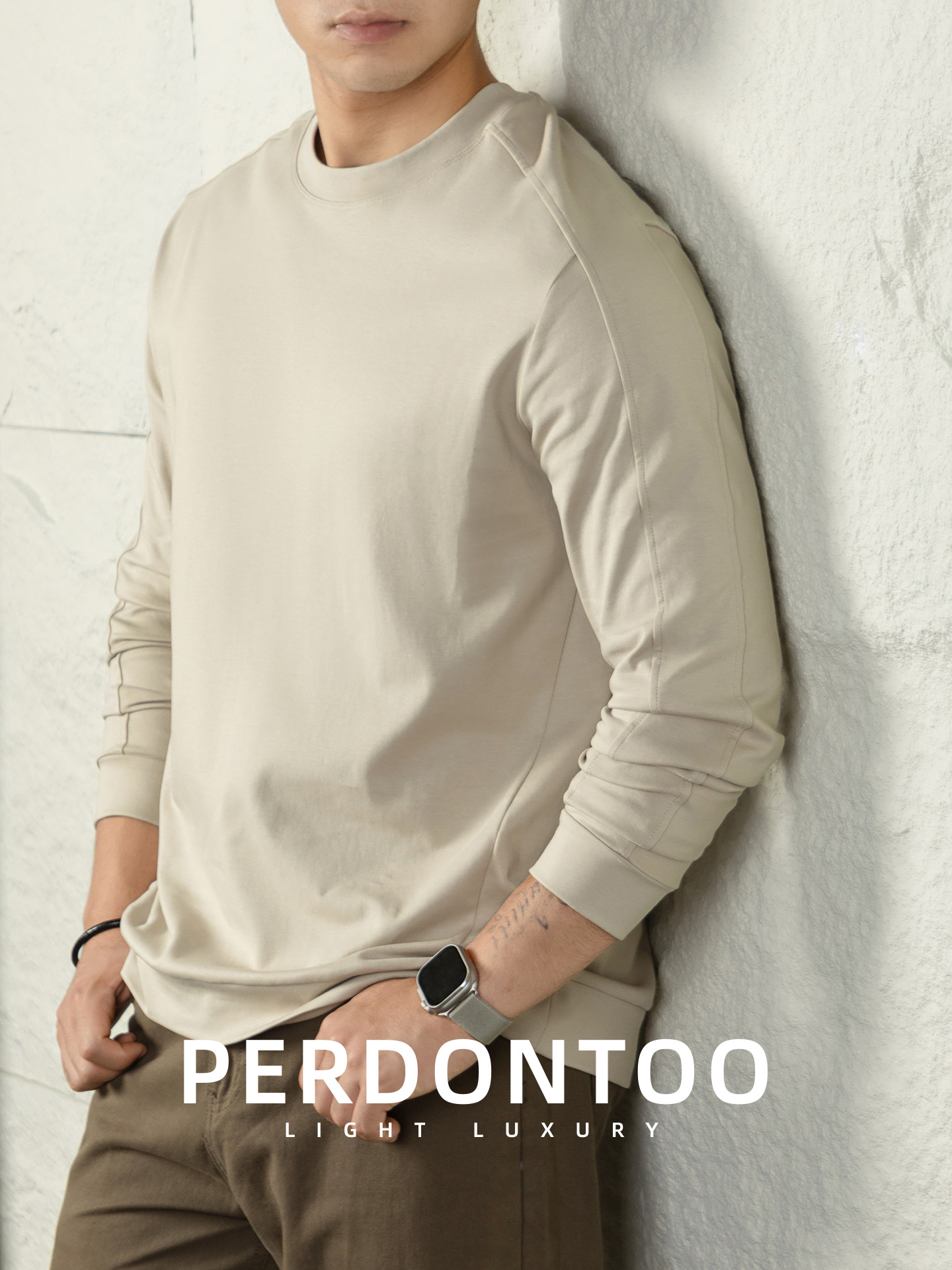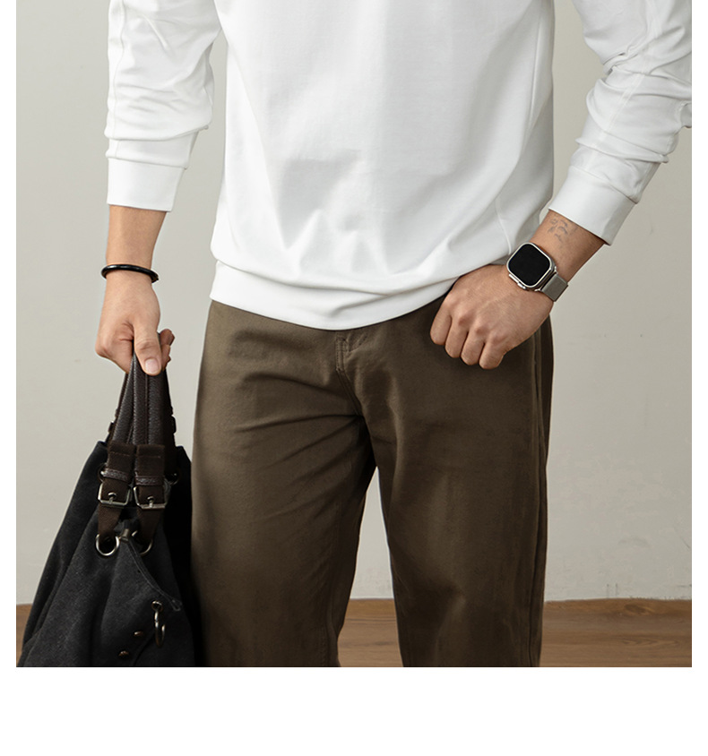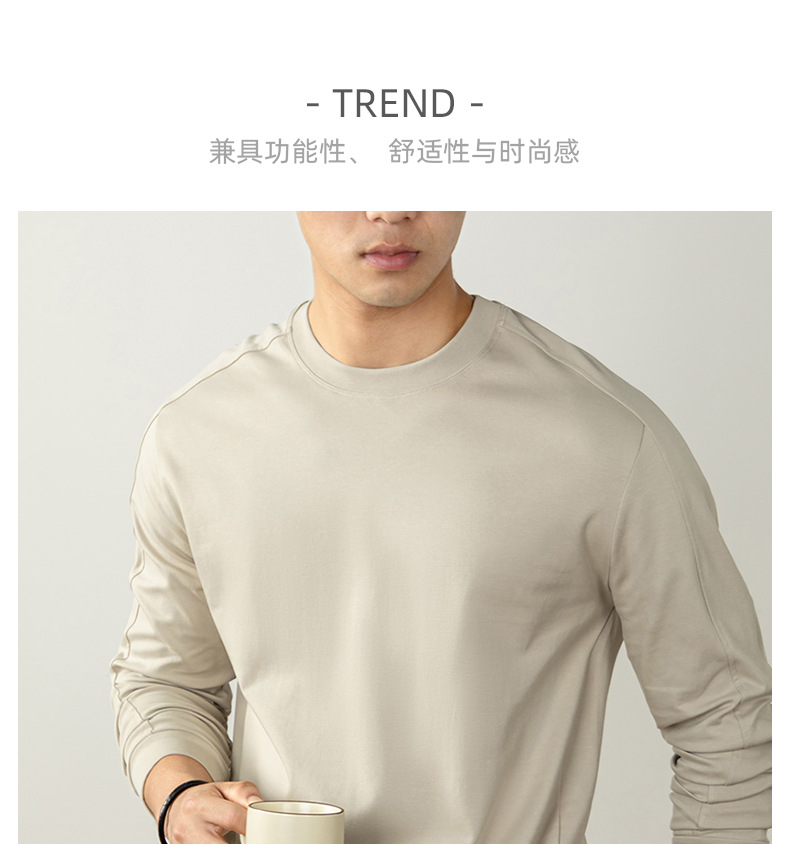 피부 친화적이고 항균 효과가 있는! 270G 액체 암모니아 처리된 면 긴팔 스웨트셔츠 남성용 가을 겨울 라운드넥 어깨선 배색 고급스러운 느낌