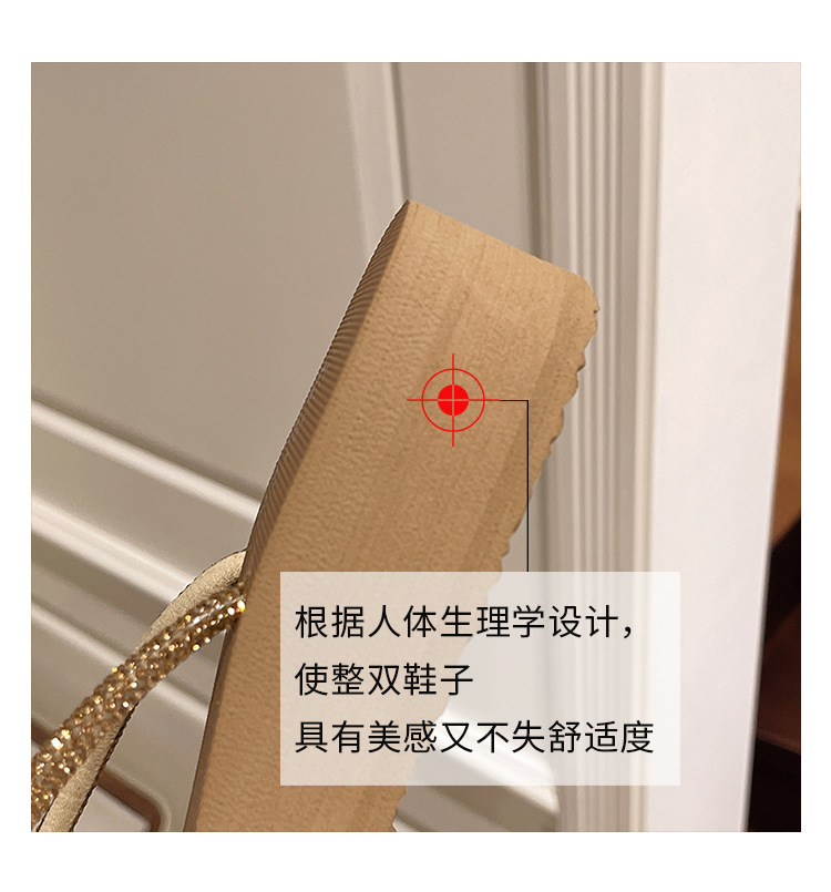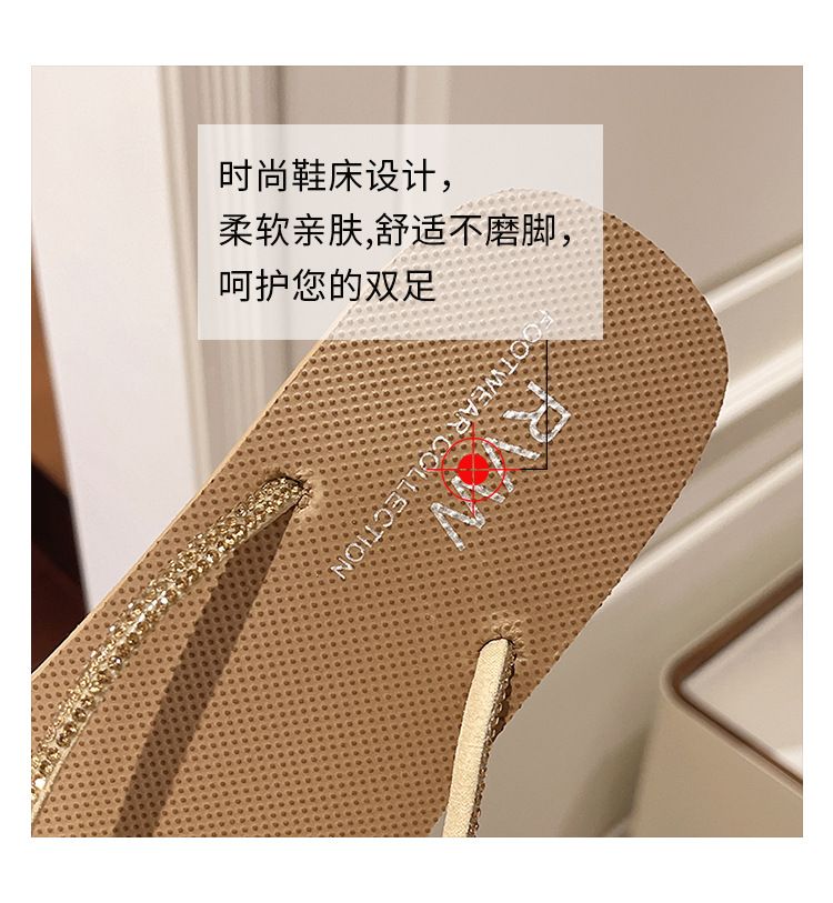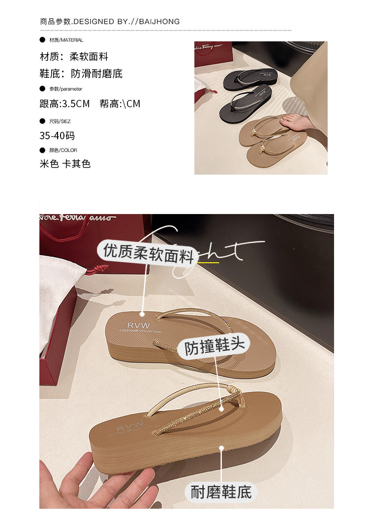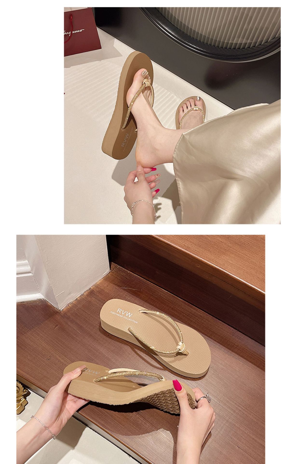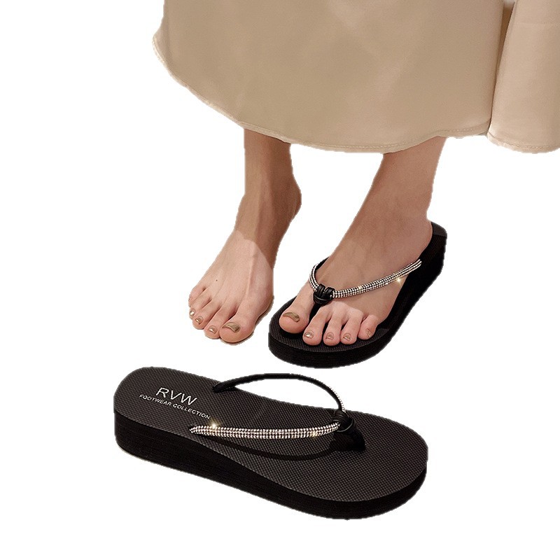 2025 새로운 비치 슈즈 슬리퍼 여성 여름 패션 의상 해변 두꺼운 하단 웨지 클립 샌들 라인스톤 플립 플롭