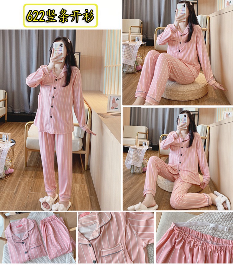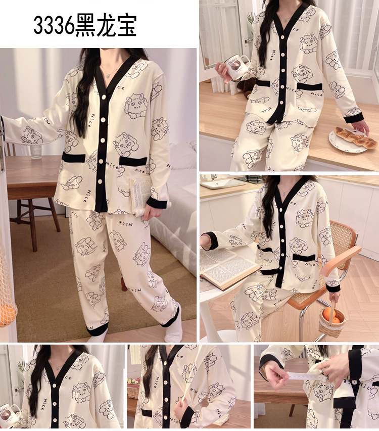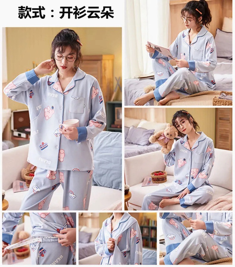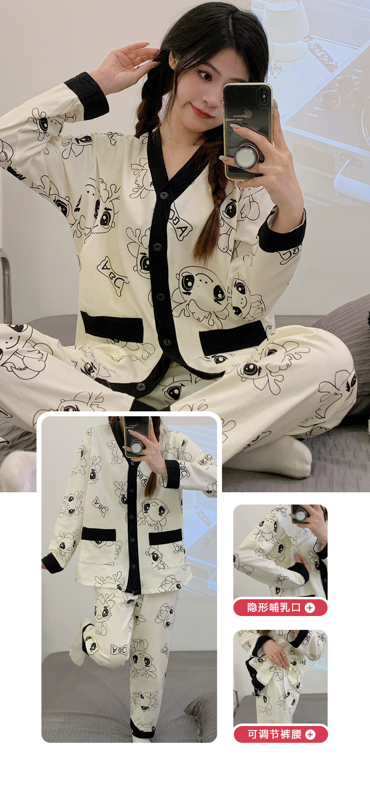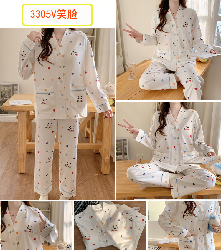 긴 소매 루나 세트 봄과 가을 수유 봄과 여름 임산부를위한 얇은 잠옷 산후 모성 수유 봄과 가을과 겨울