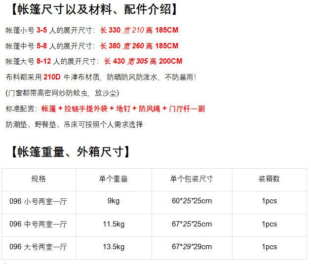 공장 도매 텐트 야외 2 실 1 홀 4 명 8 명 10 명 캠핑 포장 방수 캠핑 휴대용