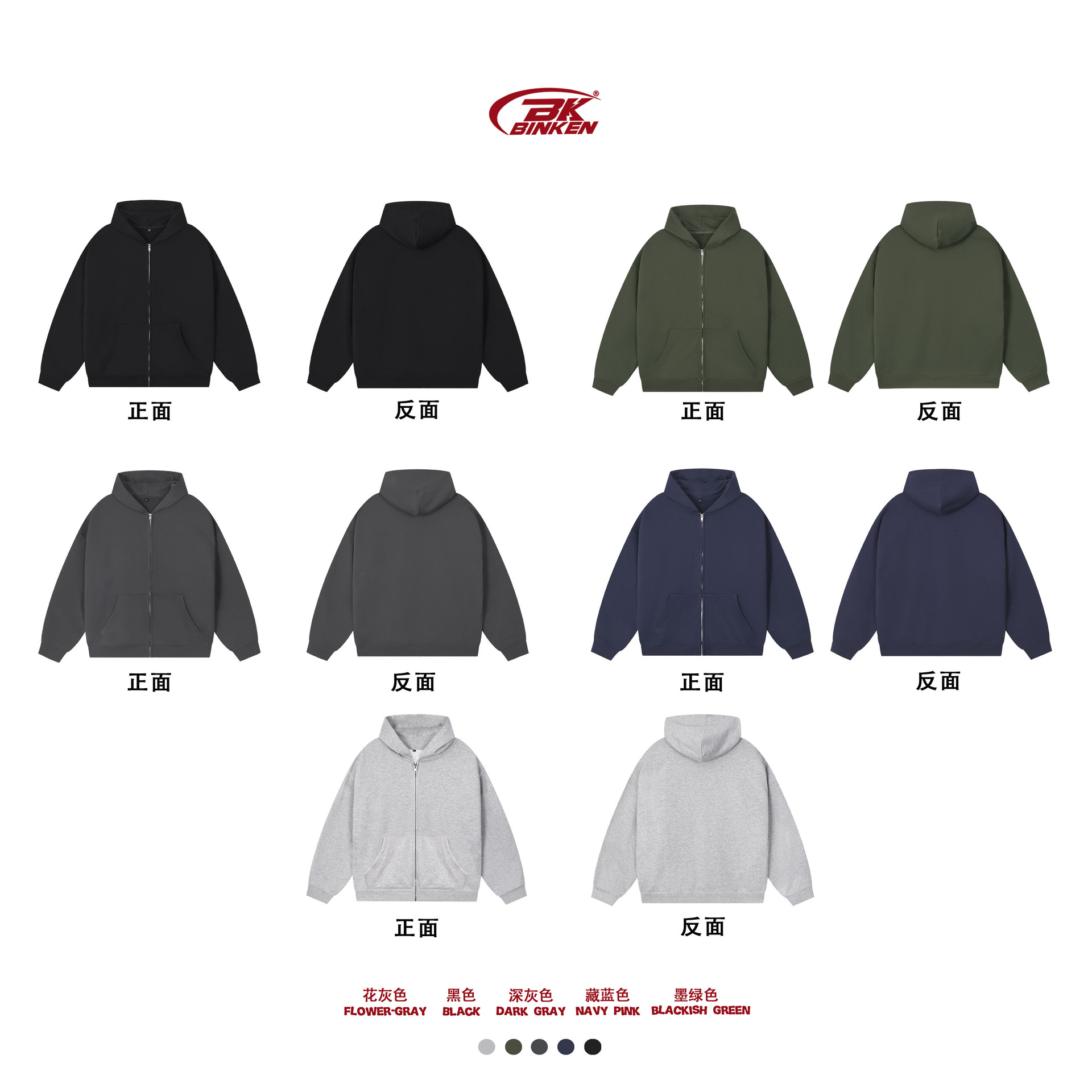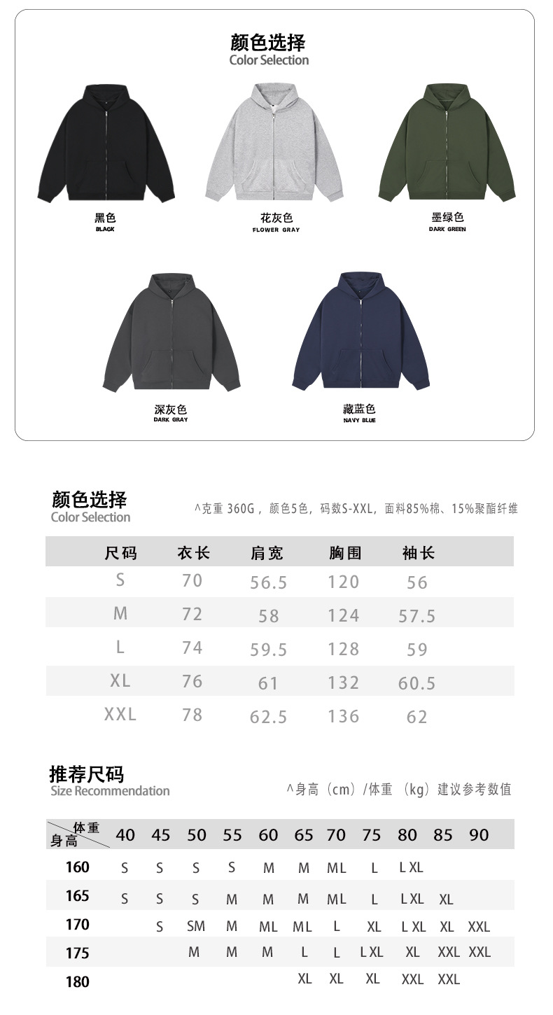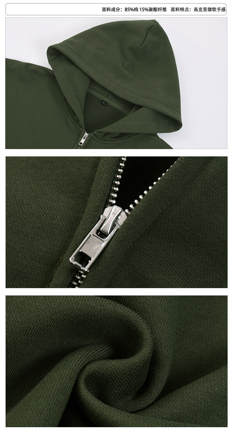 BK | 솔리드 컬러 모직 남성용 360g 카디건 자켓 아메리칸 스타일 지퍼 후드티 캐주얼 트렌디 브랜드 남성 후드티