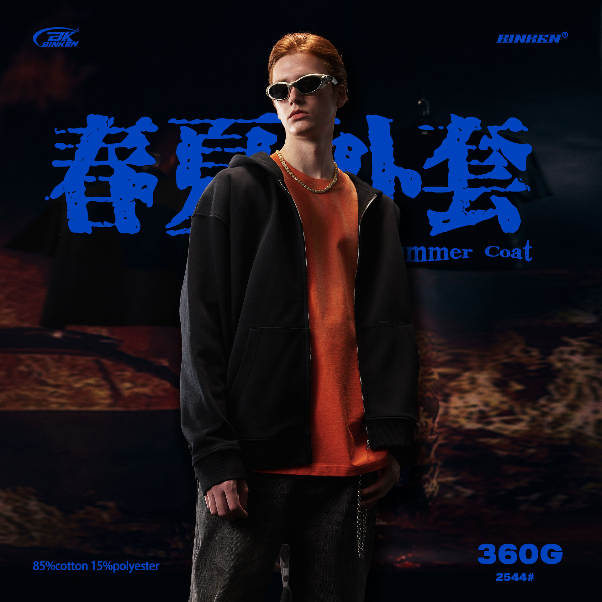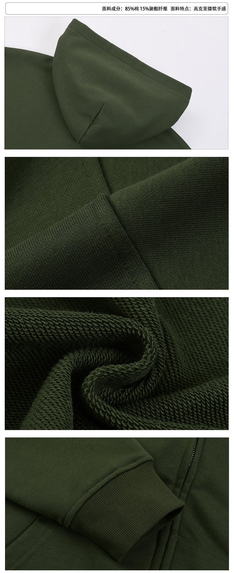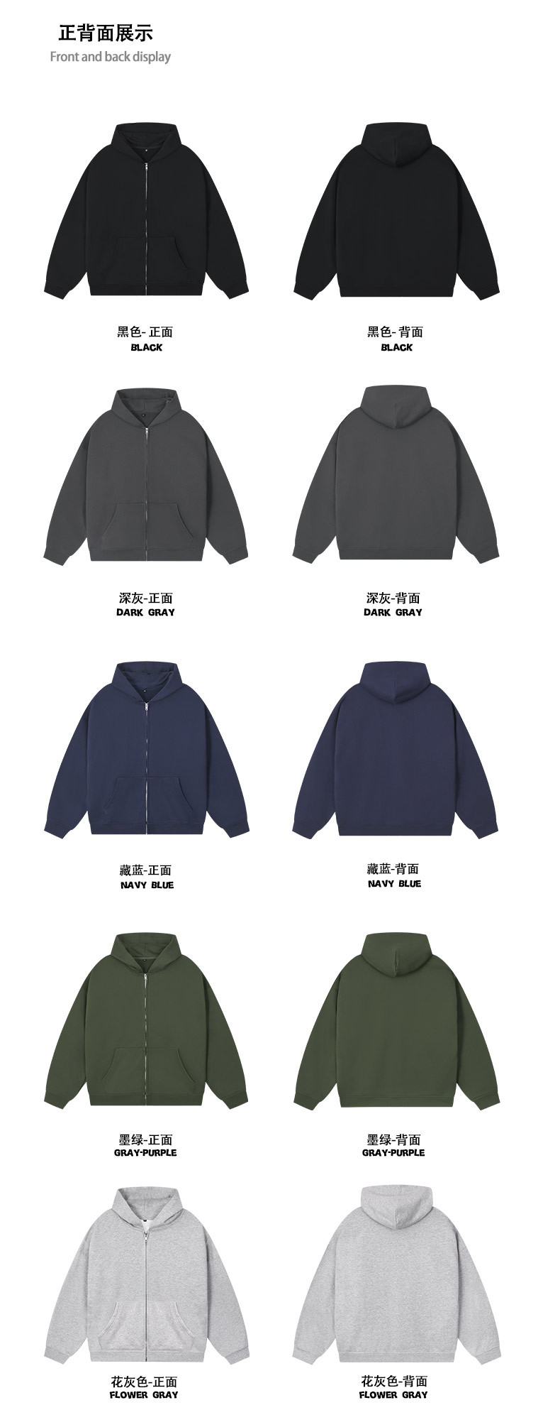 BK | 솔리드 컬러 모직 남성용 360g 카디건 자켓 아메리칸 스타일 지퍼 후드티 캐주얼 트렌디 브랜드 남성 후드티