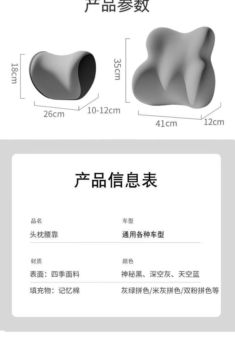 국경 도매 메모리 폼 자동차 헤드 레스트 증가 허리 세트 차 느린 리바운드 차 허리 쿠션 헤드 레스트