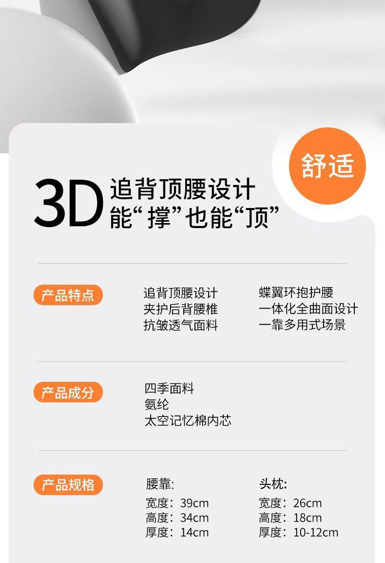 스페이스 그레이_Shuxiang 머리받침 및 허리받침 세트