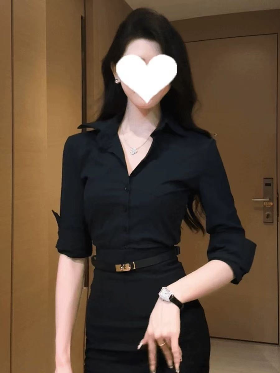2026 봄 신상 고급스러운 얇은 폴로 칼라 긴팔 셔츠 탑 슬림핏 허리라인을 강조하는 여성용 셔츠